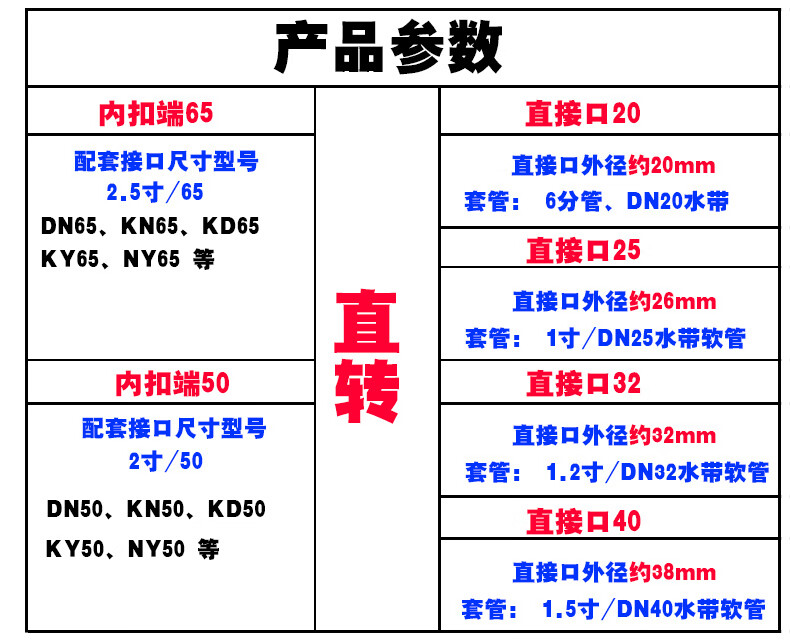 65/50 fire hydrant joint conversion 40/32/25/20 nozzle 2.5/2 inch to 1.5/1.2 inch/6 distributor interface 65 to 20/6 minute conversion head * 1