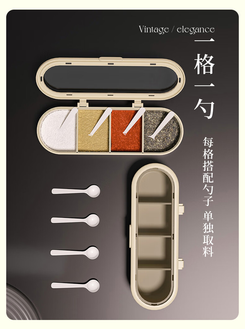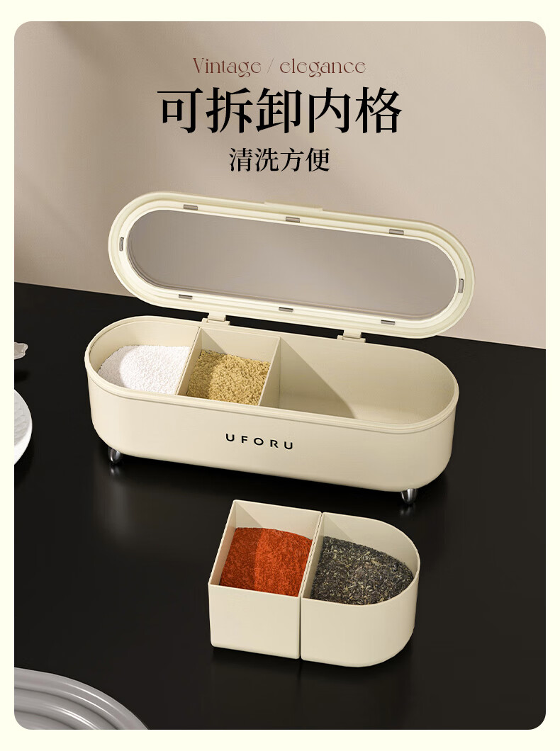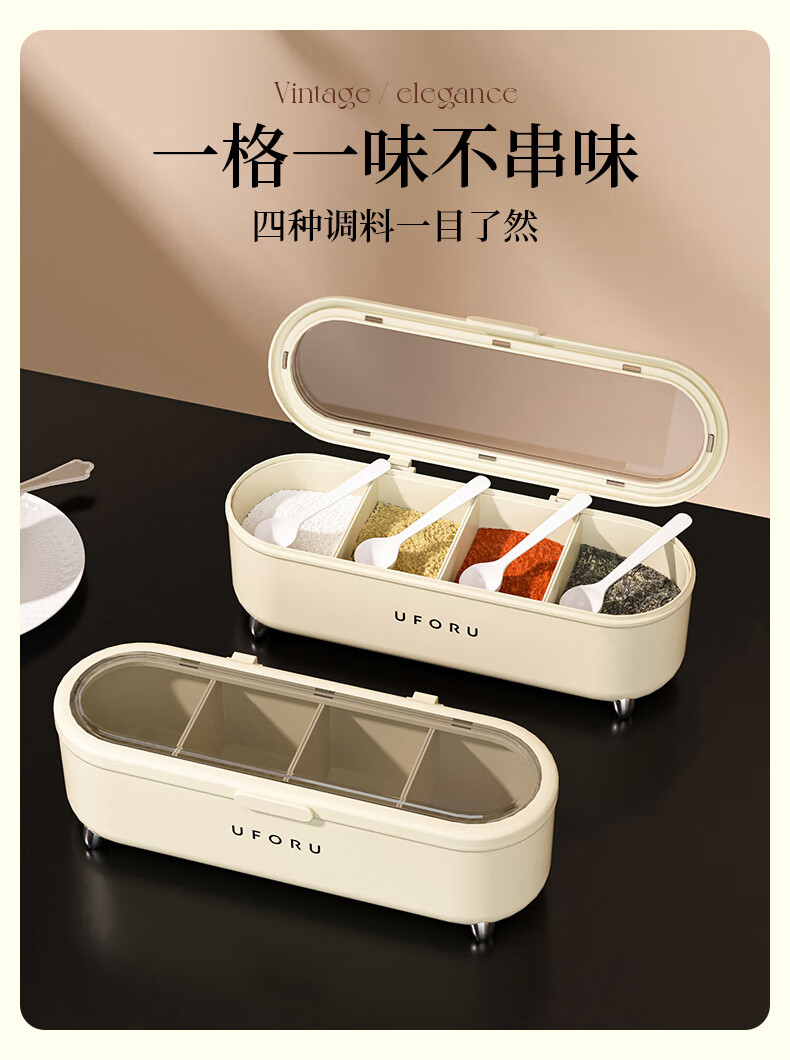 Cabinet star seasoning box kitchen household seasoning bottle and jar combination set seasoning bottle salt shaker MSG seasoning storage box cream white with spoon - grid optional