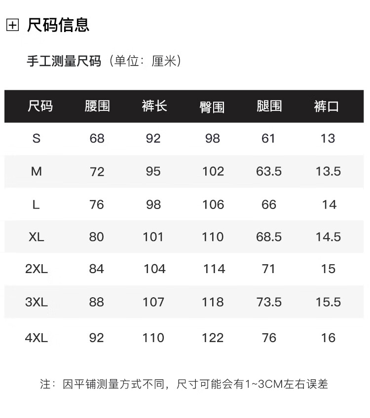 Outseam (cm) 99 cm 101.5 cm 104 cm 106.5 cm 109 cm