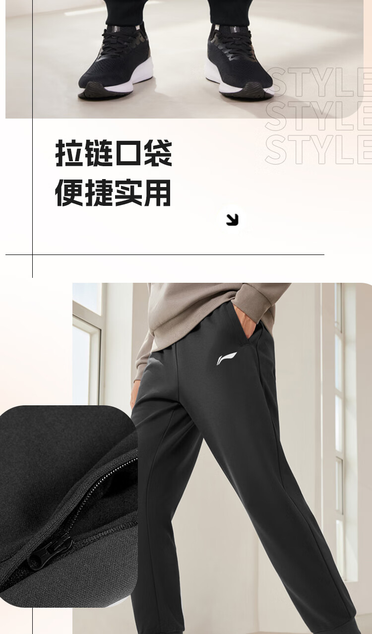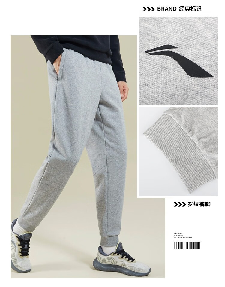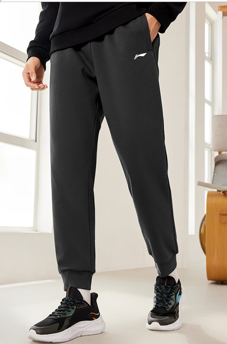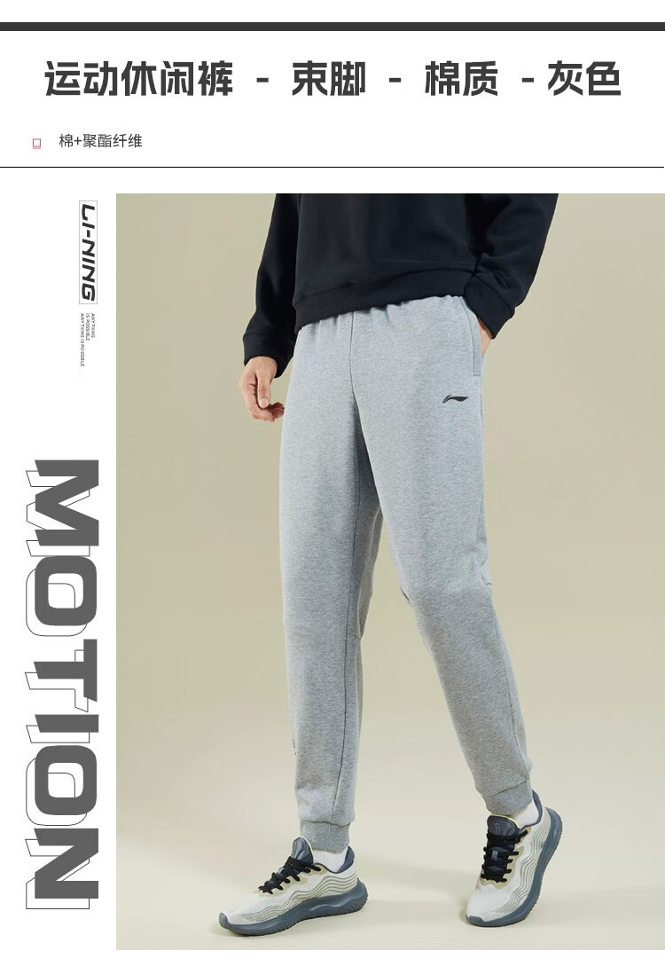 Li Ning (LI-NING) sports pants men's sweatpants spring and autumn casual pants comfortable loose quick-drying breathable running pants leggings sweatpants gray-cotton/zipper pocket 2XL 185