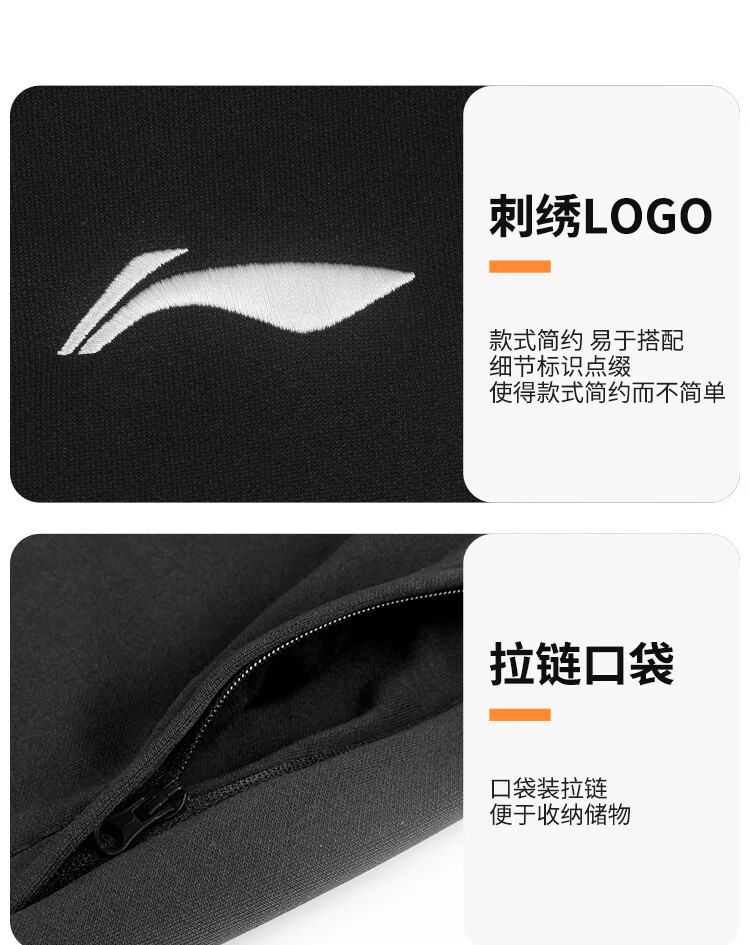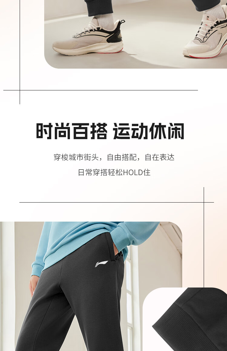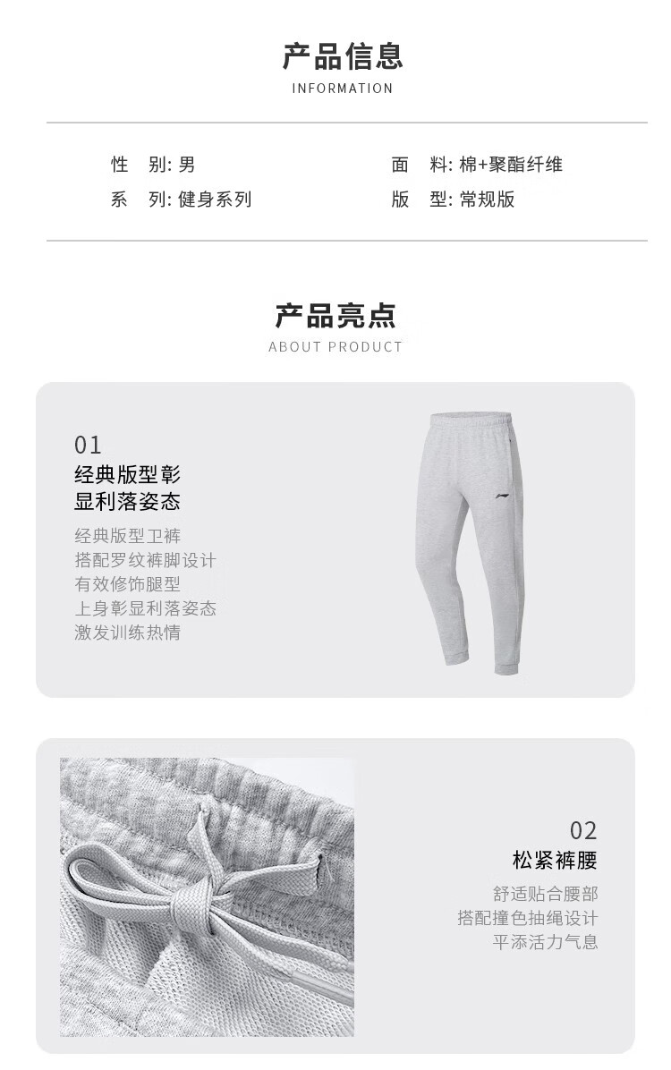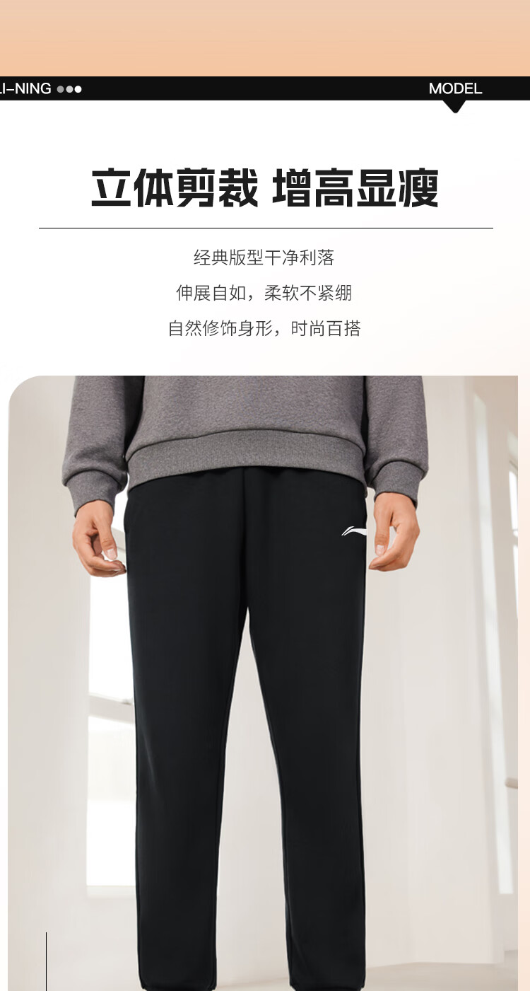 Li Ning (LI-NING) sports pants men's sweatpants spring and autumn casual pants comfortable loose quick-drying breathable running pants leggings sweatpants gray-cotton/zipper pocket 2XL 185