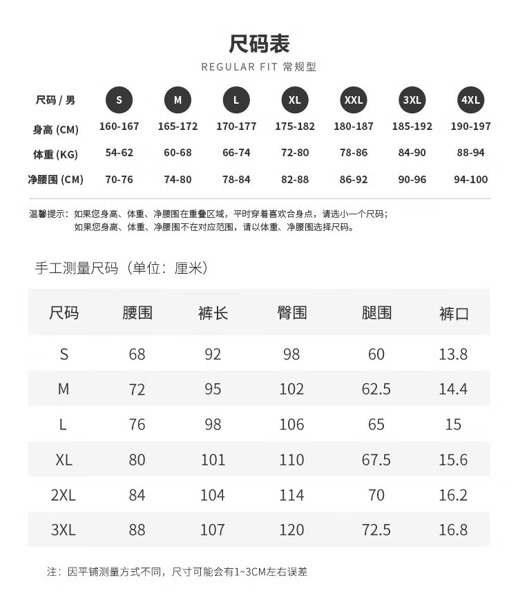 China (cm) 165 / 88-90 170 / 96-98 175 / 108-110 180 / 118-122 185 / 126-130