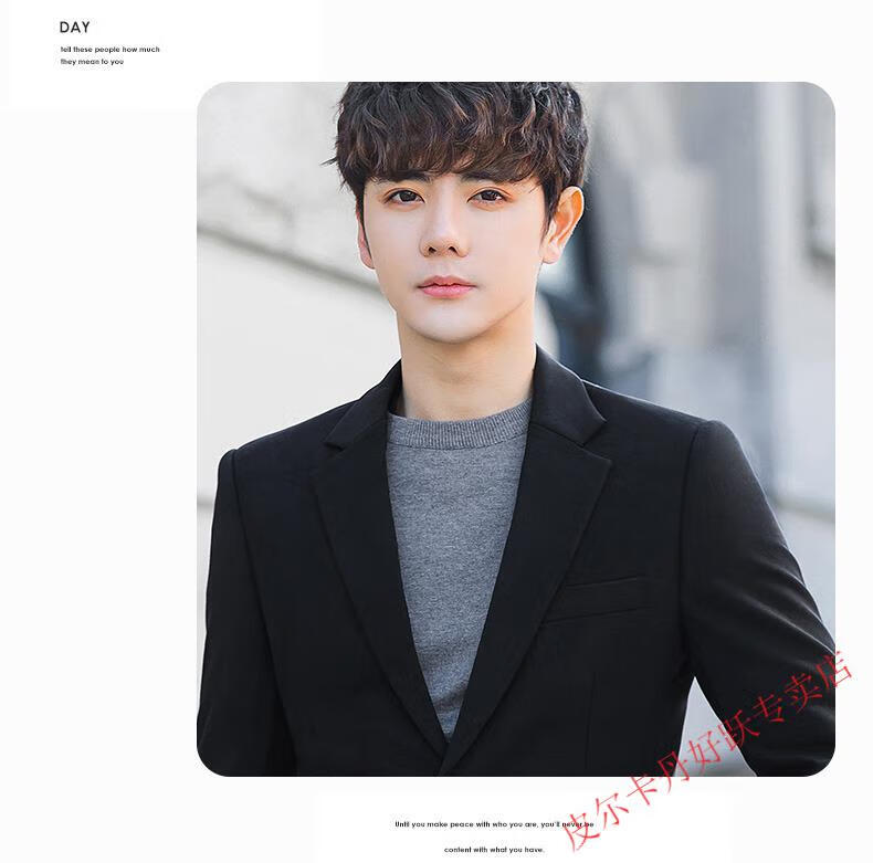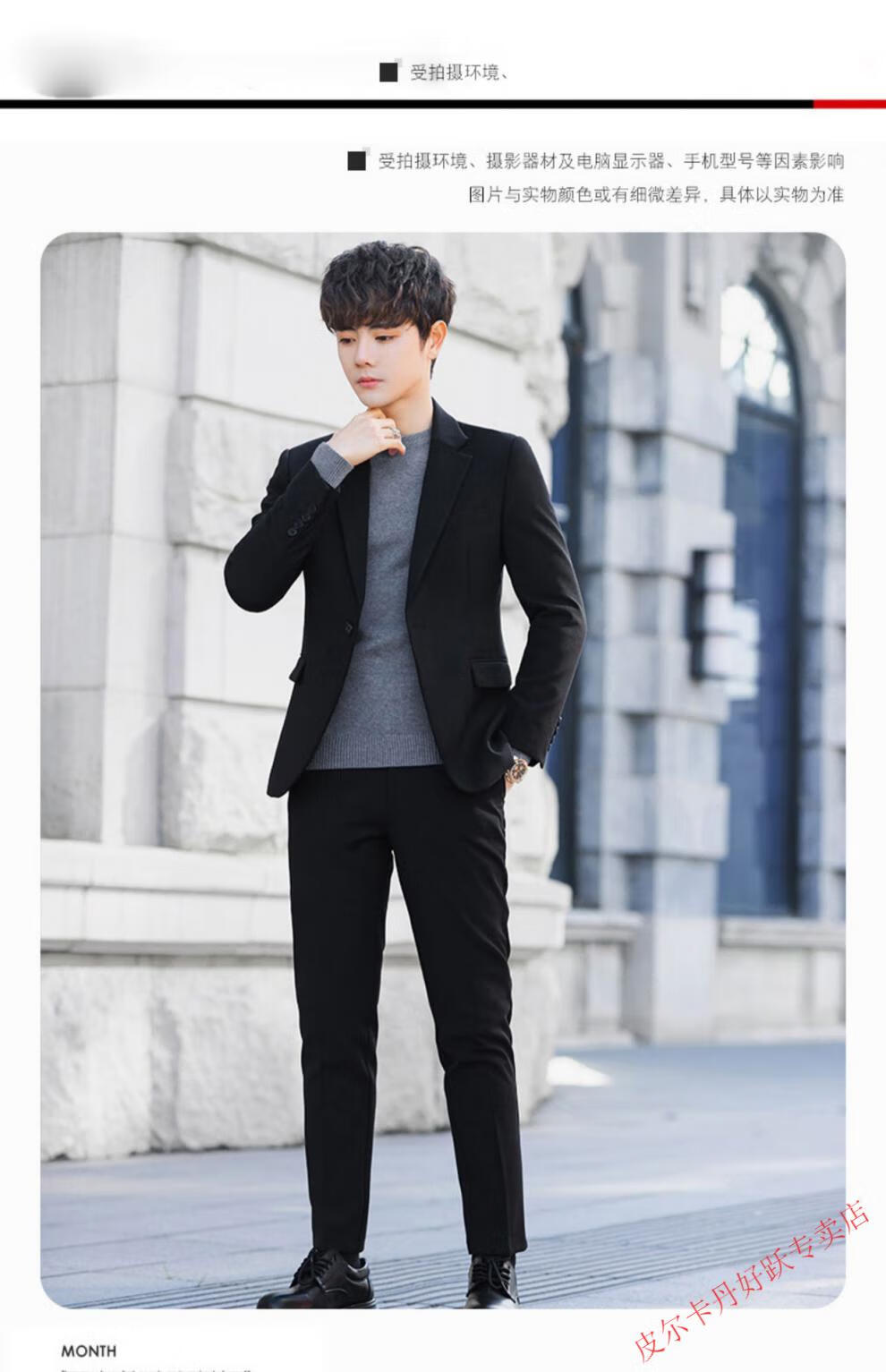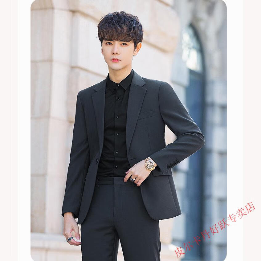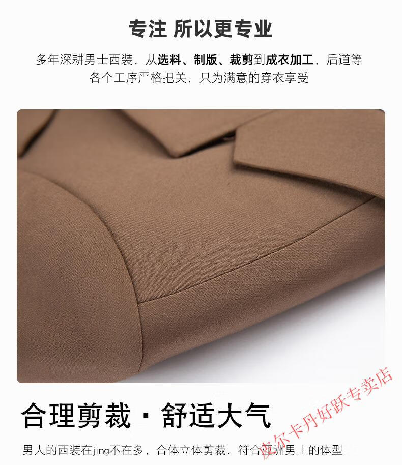 Pierre Cardin men's brown suit spring and autumn slim handsome casual small suit jacket men's Korean style trendy wedding top apricot suit + pants + white shirt M