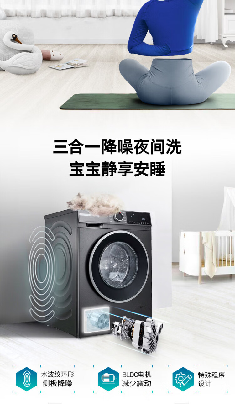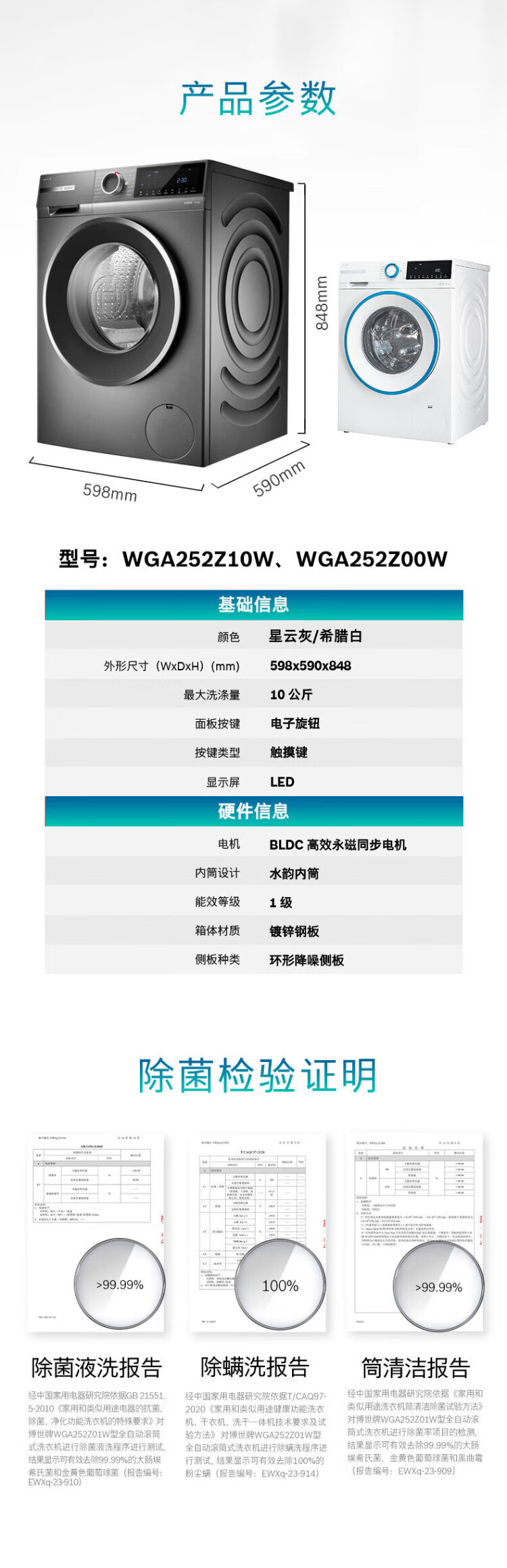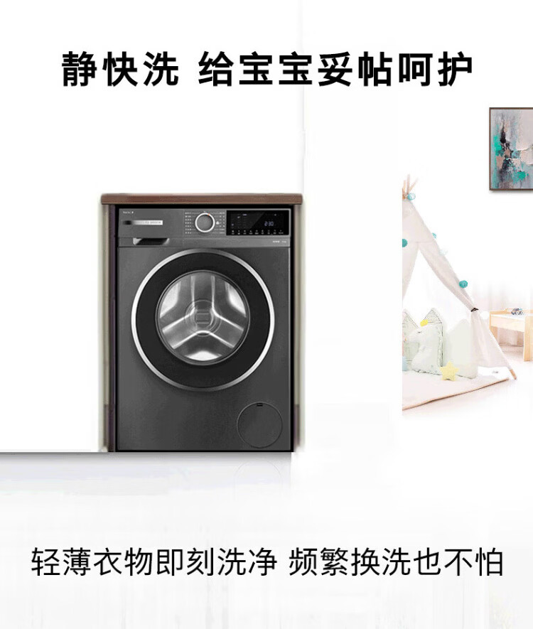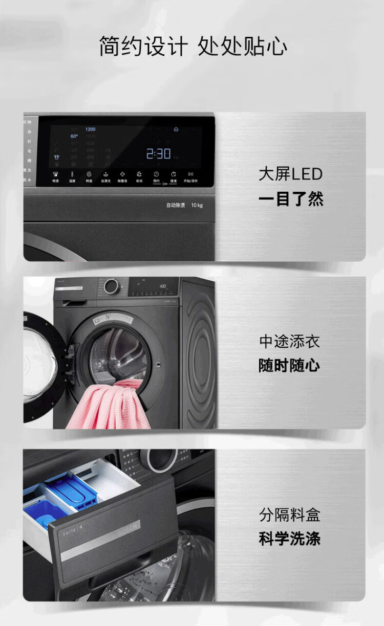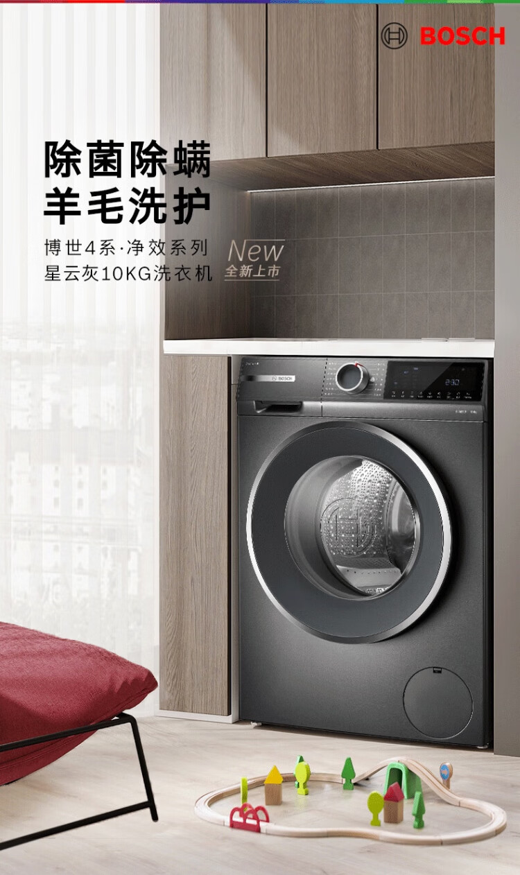 BOSCH sterilization and mite removal 10KG variable frequency drum washing machine fully automatic household large capacity wool washing and care three-in-one noise reduction night washing charge laundry Nebula Gray WGA252Z10W single wash