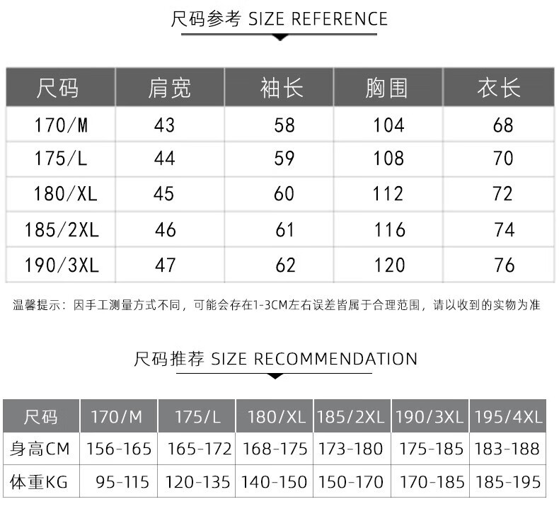 China (cm) 165 / 88-90 170 / 96-98 175 / 108-110 180 / 118-122 185 / 126-130