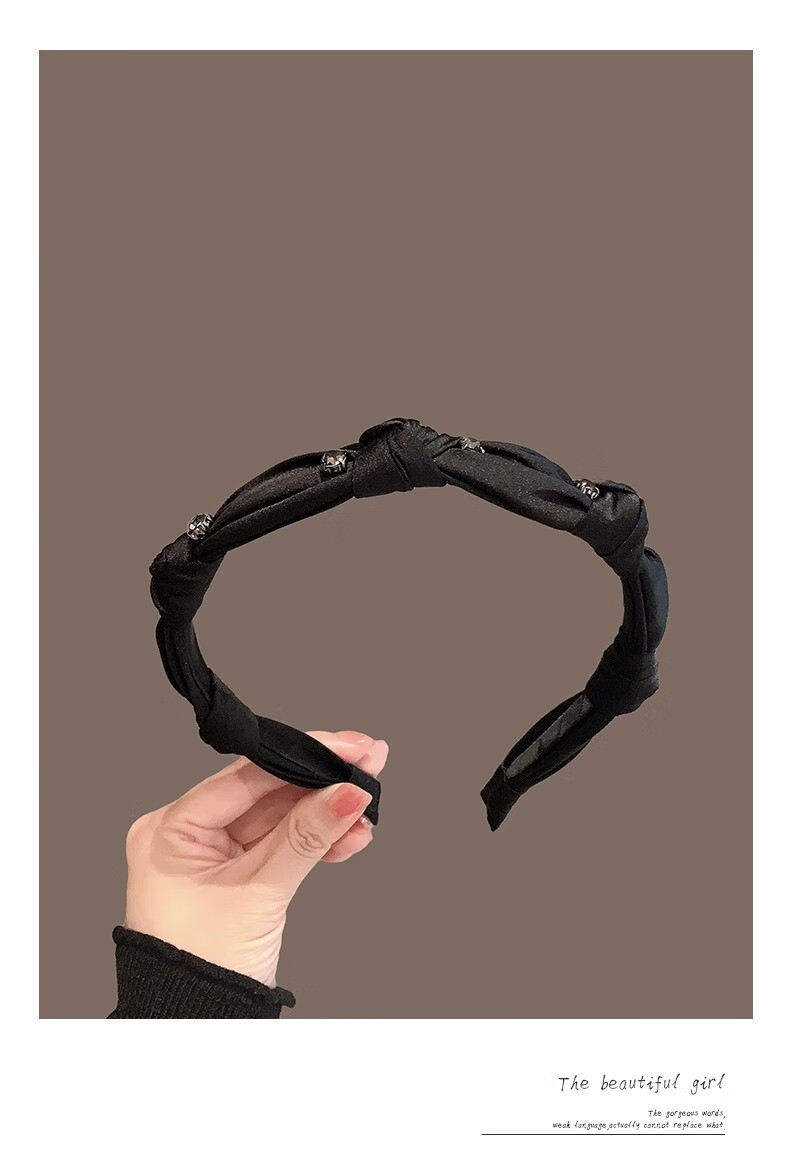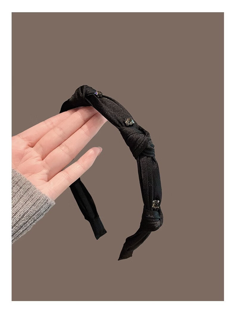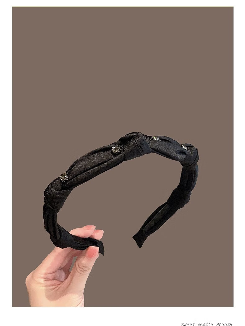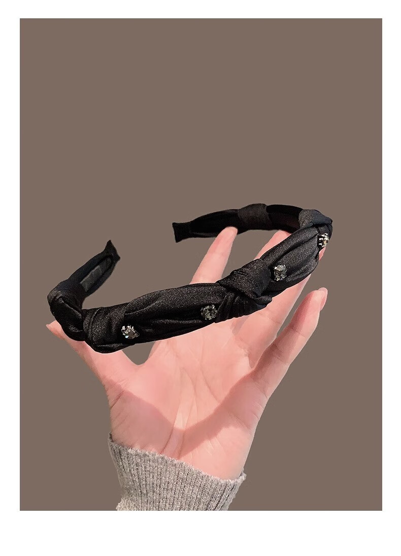 Idel's high-end silk rhinestone knotted headband, retro French style headband, versatile hairpin for women when going out, 2025 new rhinestone headband, black F2143
