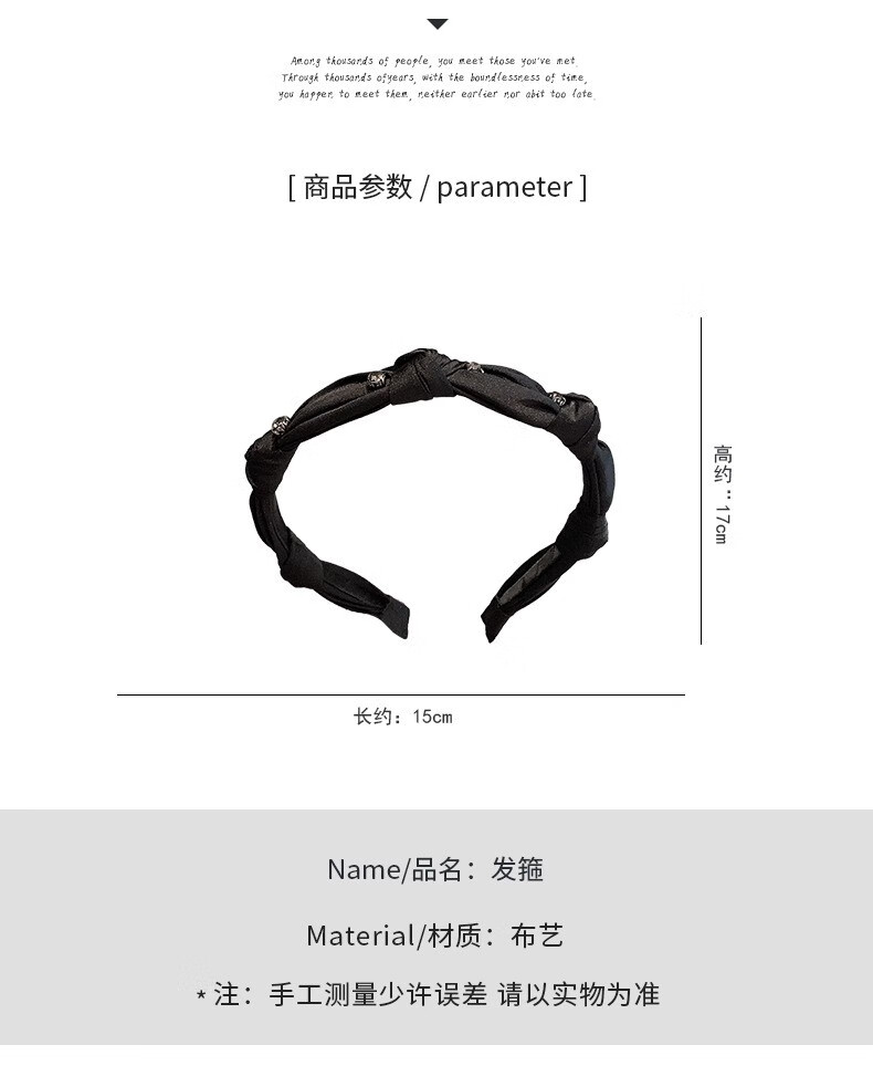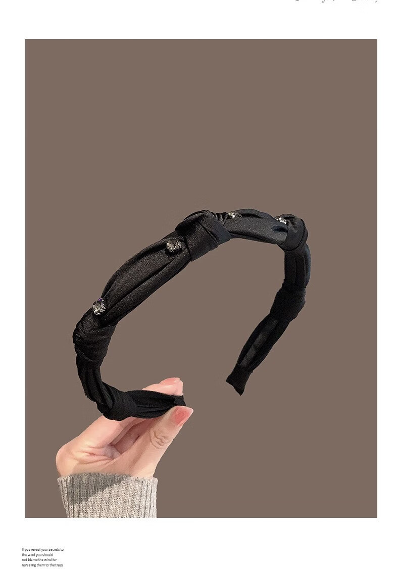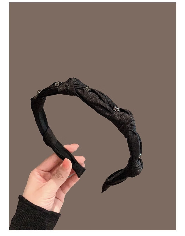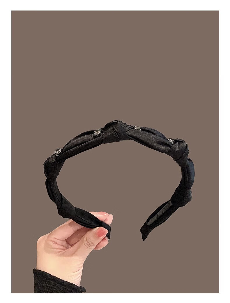 Idel's high-end silk rhinestone knotted headband, retro French style headband, versatile hairpin for women when going out, 2025 new rhinestone headband, black F2143