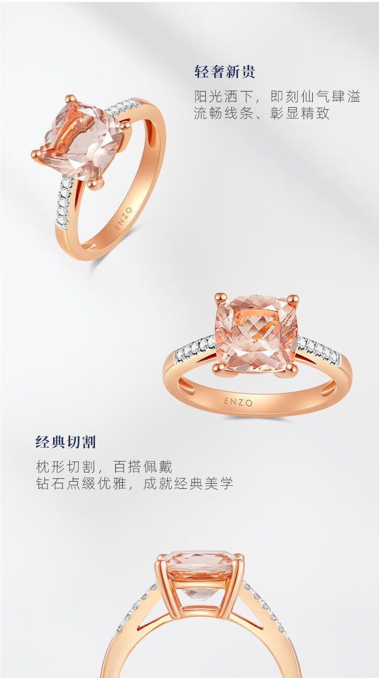 Chow Tai Fook ENZO Classic Colorful Series 18K Gold Morganite Diamond Ring for Women EZV498 Birthday Gift No. 15