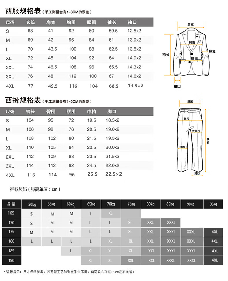 China (cm) 160-165/84-86 165-170 / 88-90 167-172 / 92-96 168-173 / 98-102 170-176 / 106-110