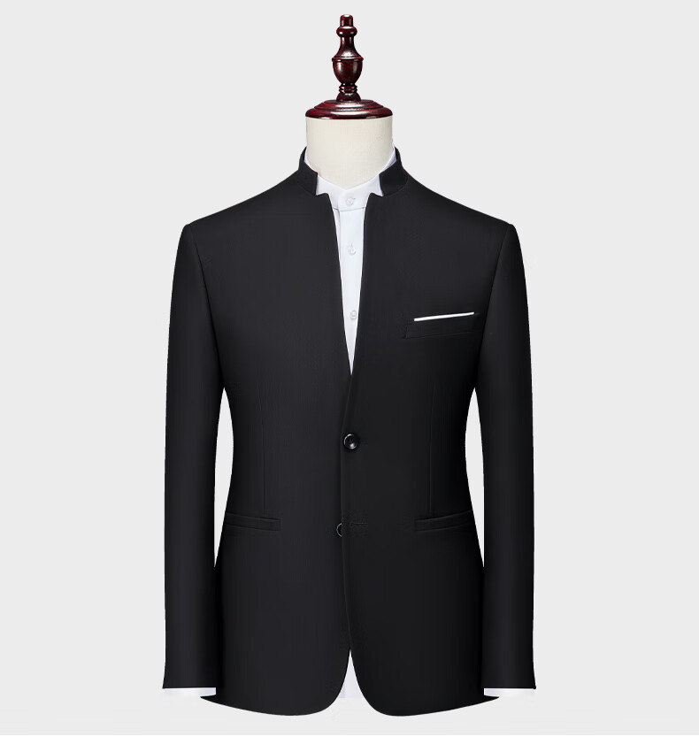 Pierre Cardin Chinese tunic suit for middle-aged men, Chinese stand-up collar suit, men's wedding dress, casual suit jacket, men's spring knitted black-single 3XL