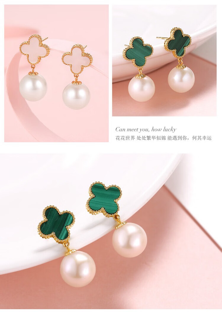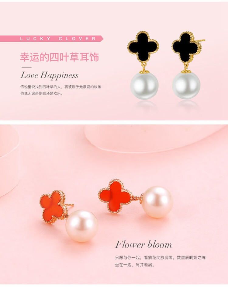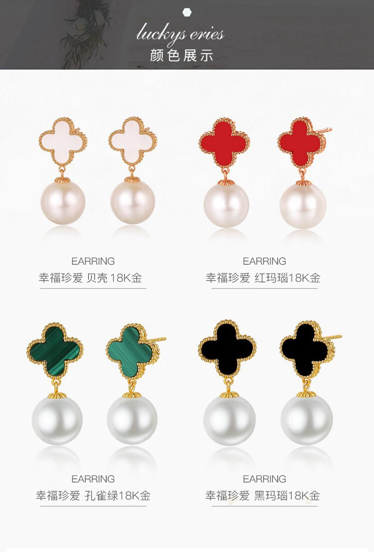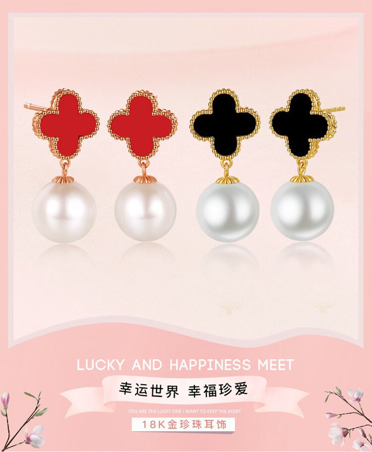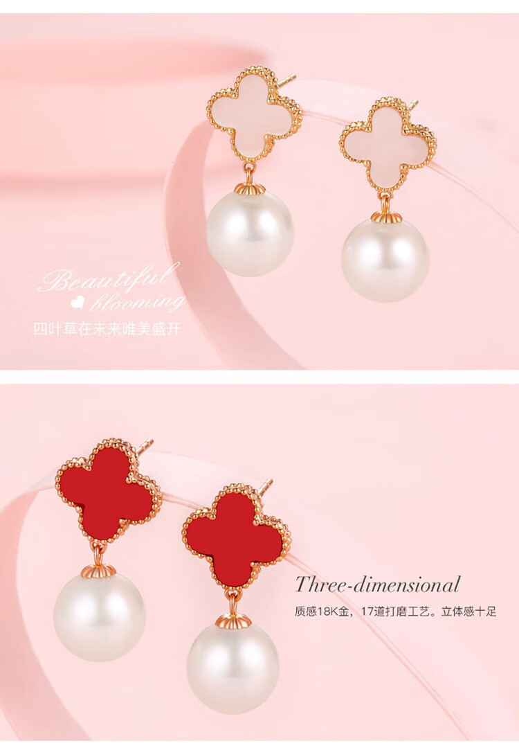 Damuni 18k gold four-leaf clover pearl earrings AU750 freshwater pearl earrings light luxury earrings for Valentine's Day gift red agate 18K yellow gold
