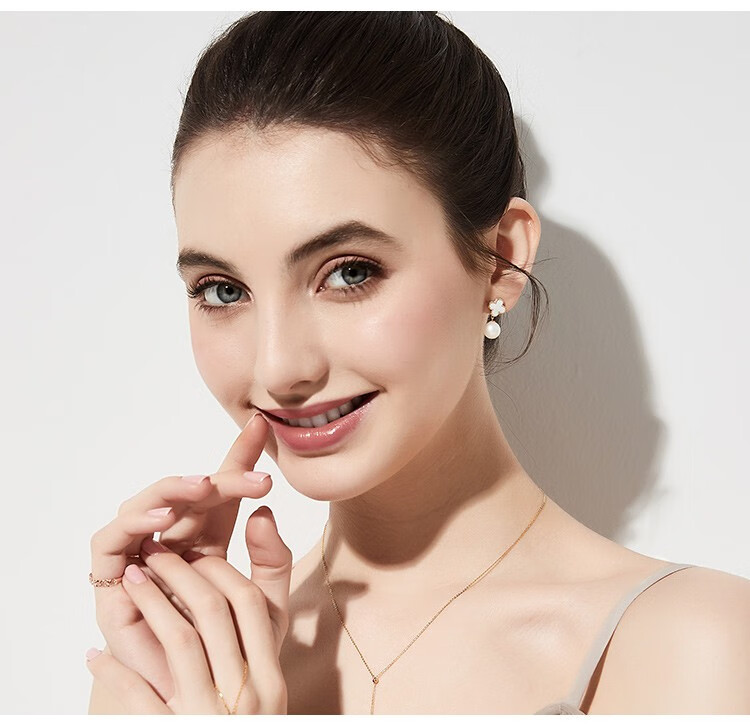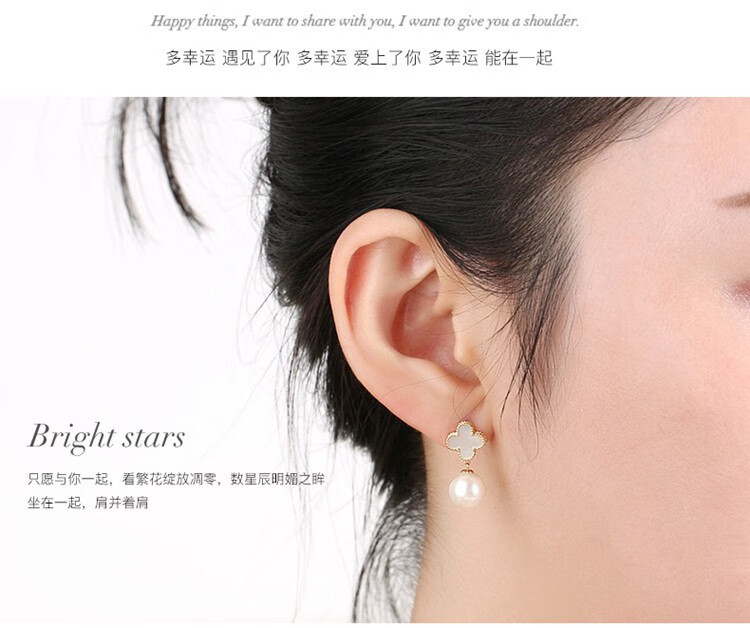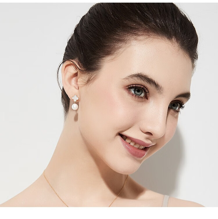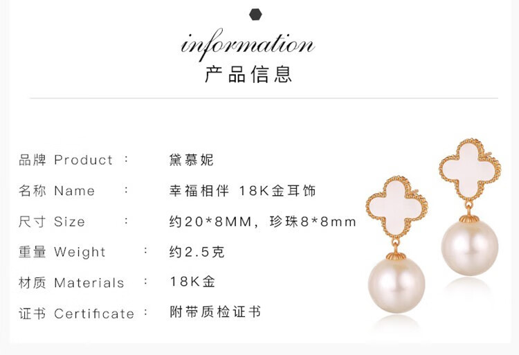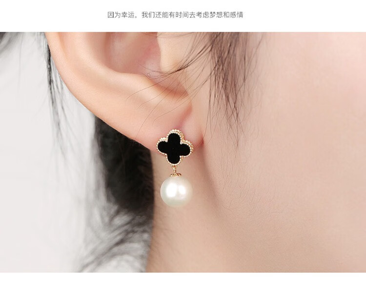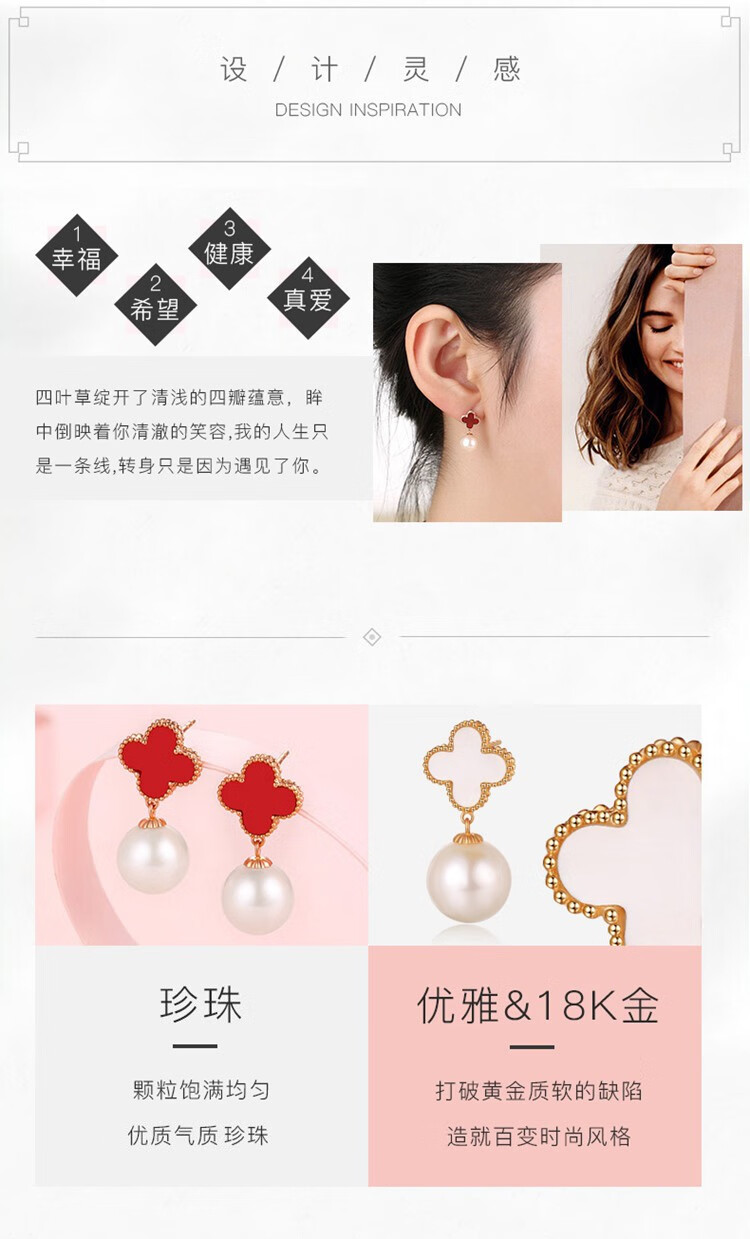 Damuni 18k gold four-leaf clover pearl earrings AU750 freshwater pearl earrings light luxury earrings for Valentine's Day gift red agate 18K yellow gold