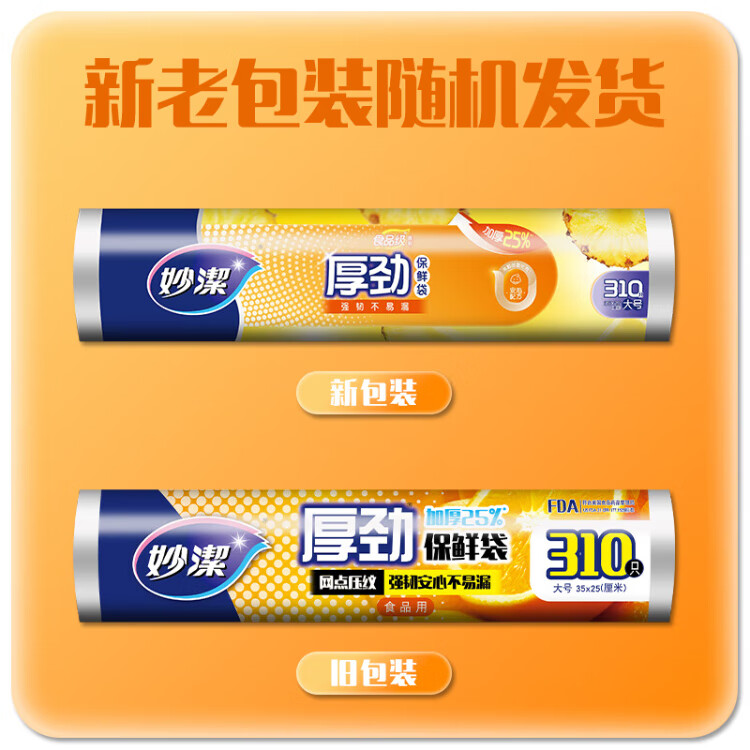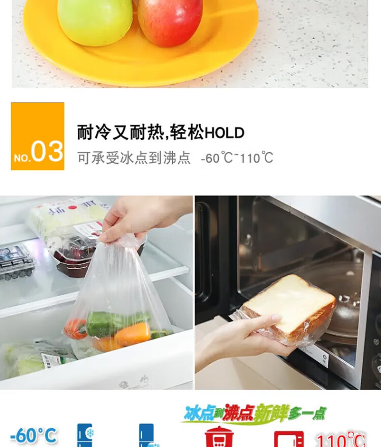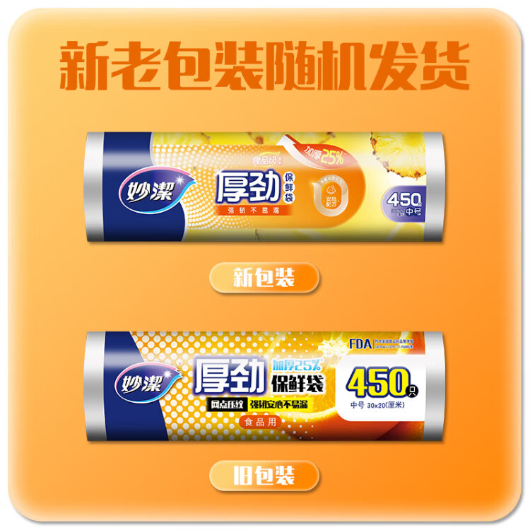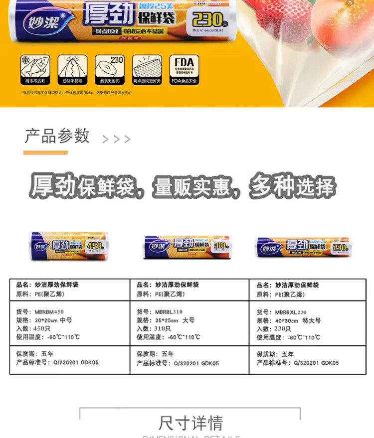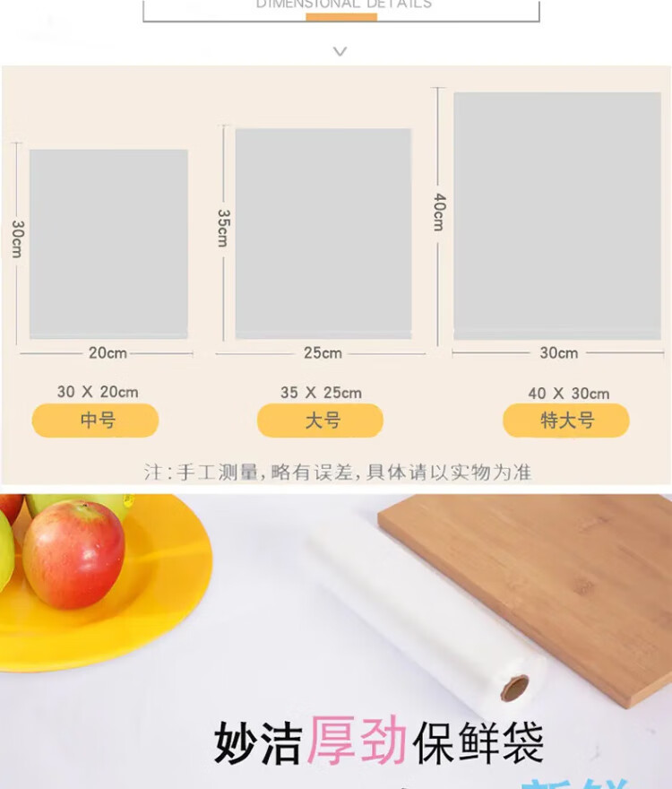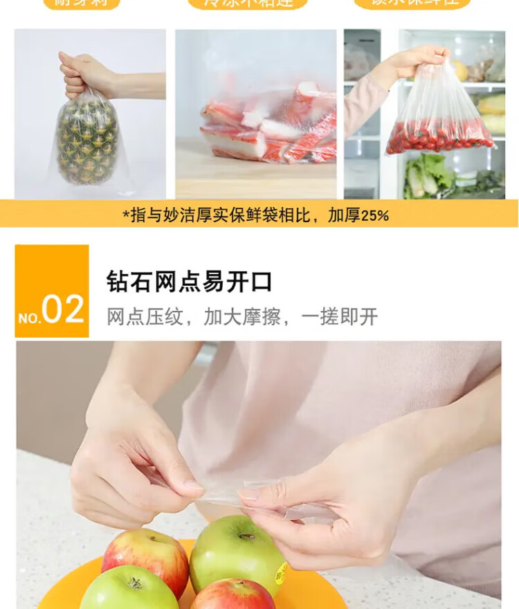 Miaojie Houjin household break-point fresh-keeping bag food bag hand tear bag thickened extra large economical extra large 40*30cm, a total of 230 pieces