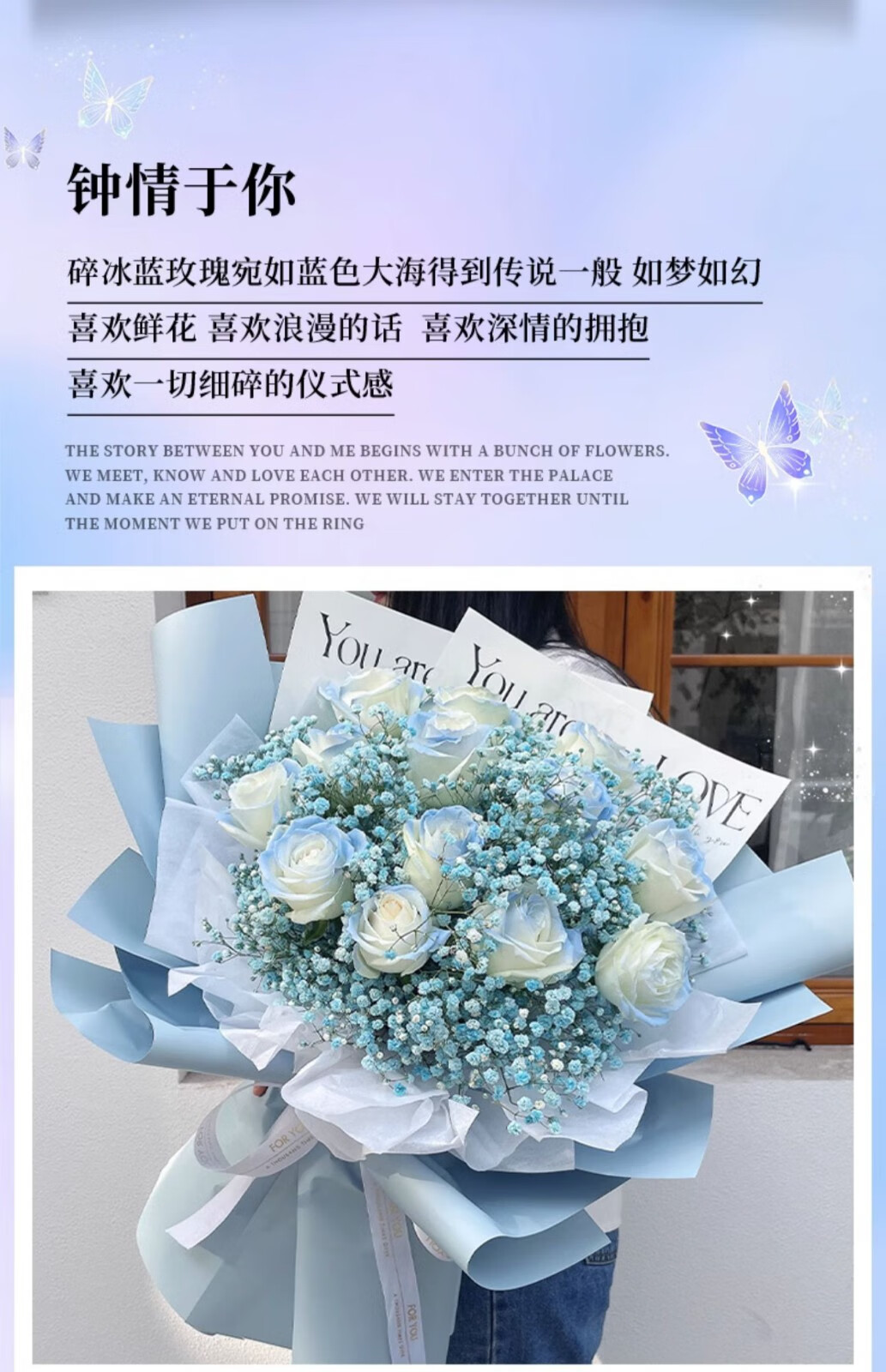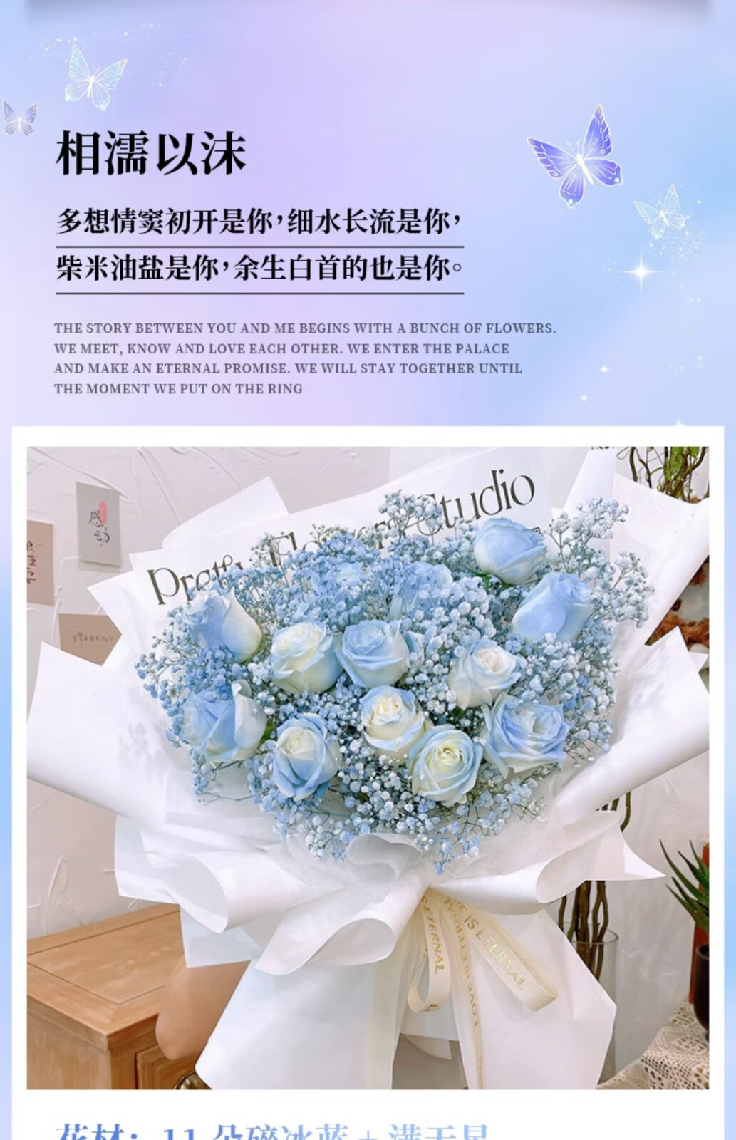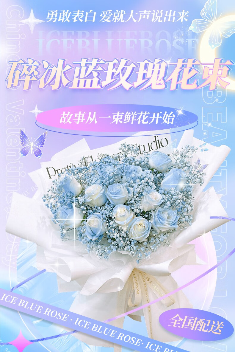 Wells nationwide flower delivery within the city, gypsophila roses, crushed ice blue bouquets, birthday flowers, hourly delivery gifts, love with you, 11 crushed ice blue roses, mixed and matched, today's delivery | next day delivery | contact customer service at other times
