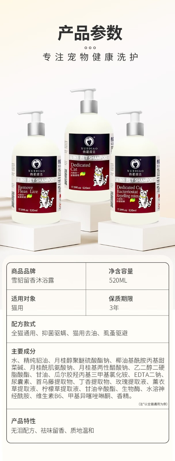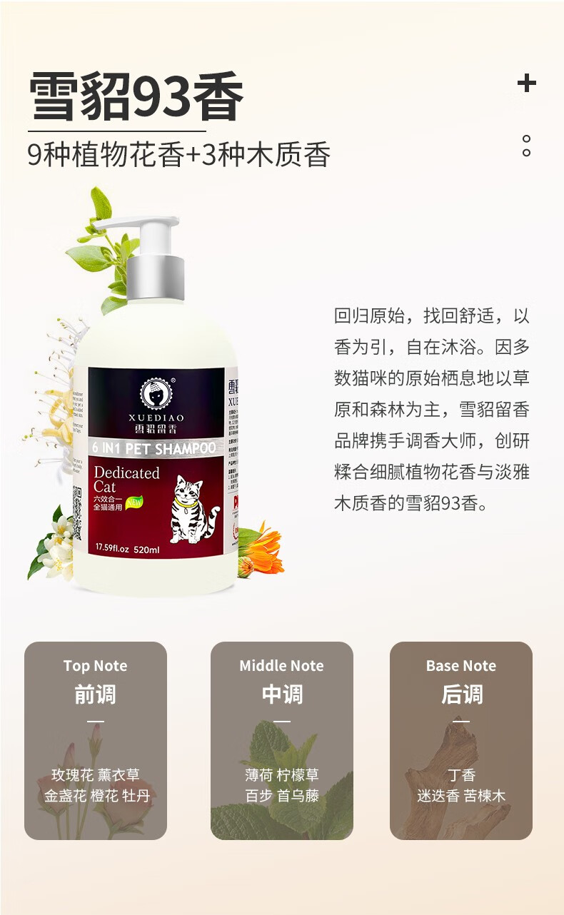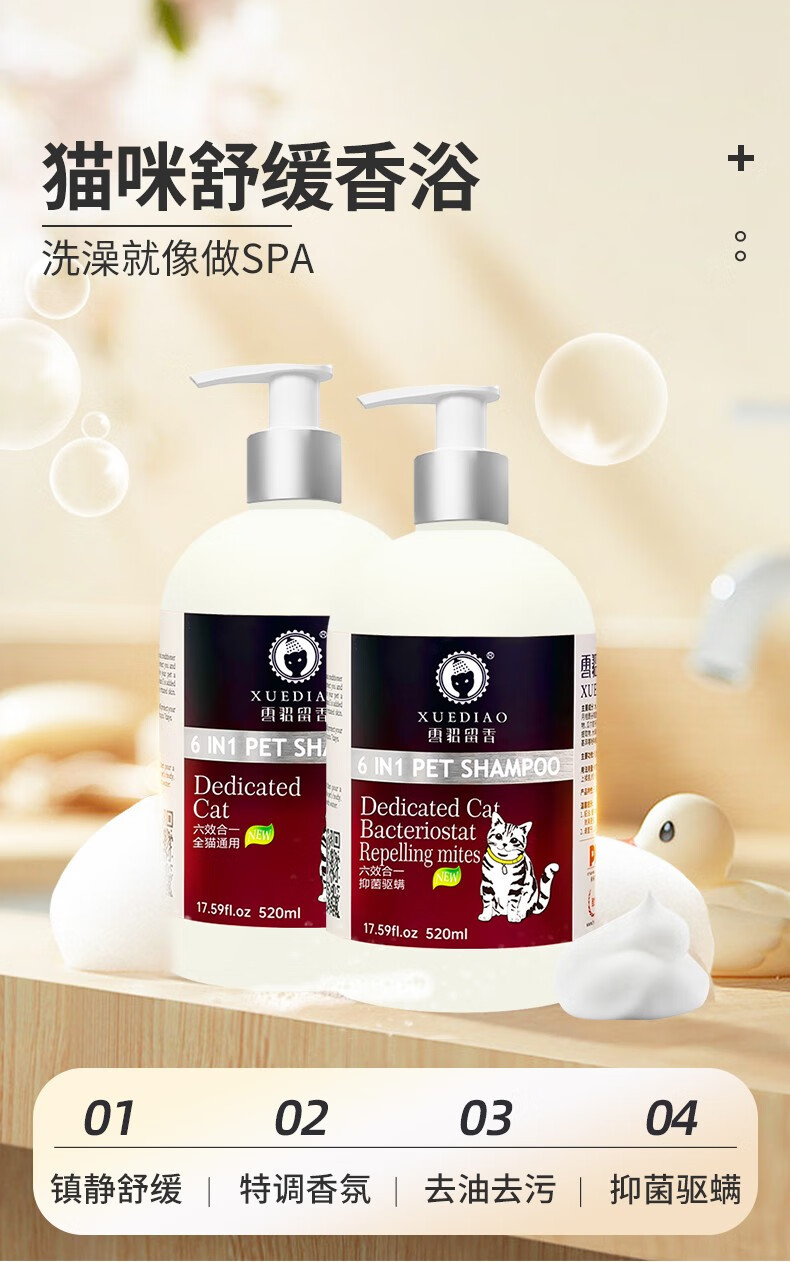 Ferret Fragrance Cat Shower Gel Six-in-One Cleansing and Decontamination Bath Liquid Shampoo Long-lasting Fragrance Bath Liquid Antibacterial and Deodorizing Universal for All Cats 520ml