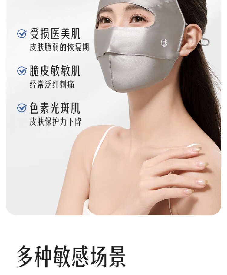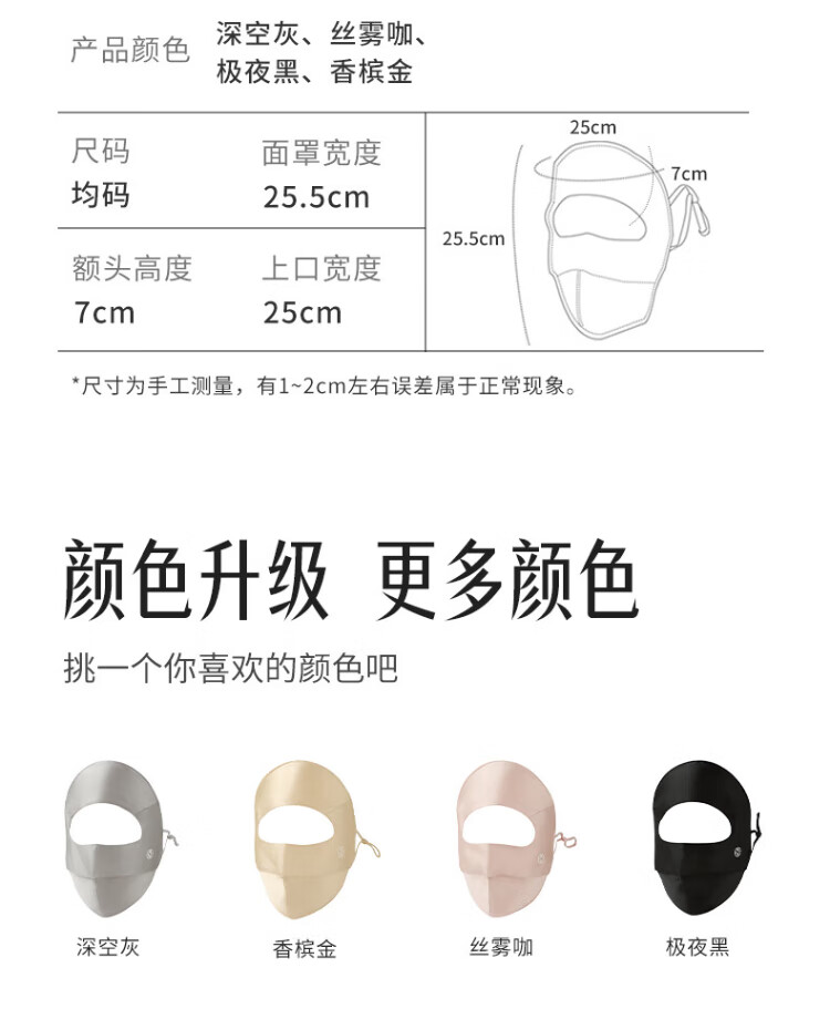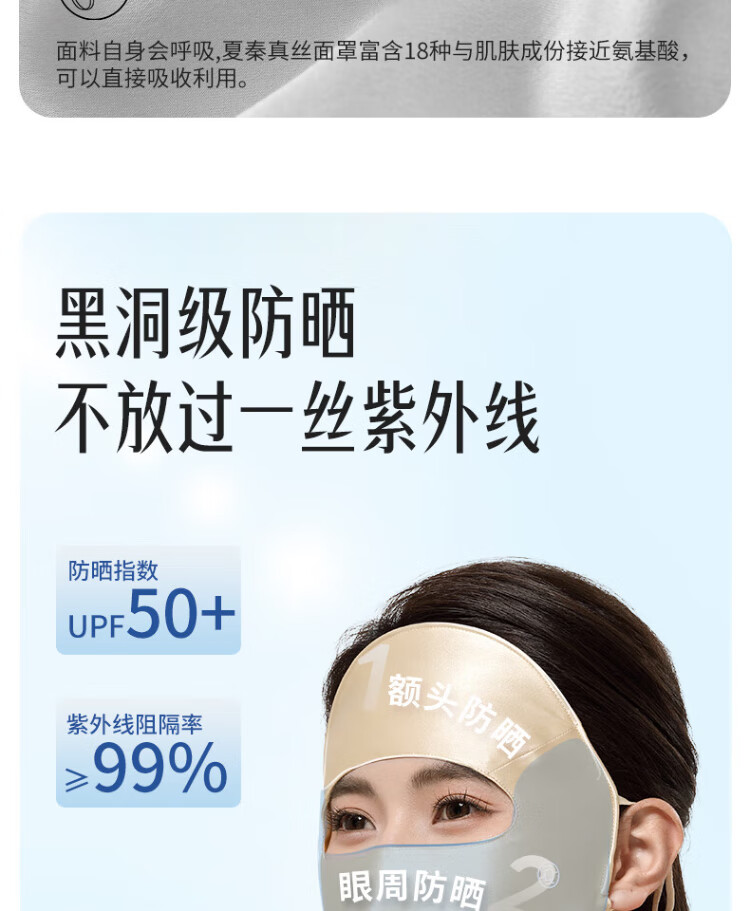Xia Qin silk sunscreen mask full face mask anti-UV mask for women spring and summer mulberry silk medical beauty face gini for women deep space gray silk 16 mmi sunscreen mask
