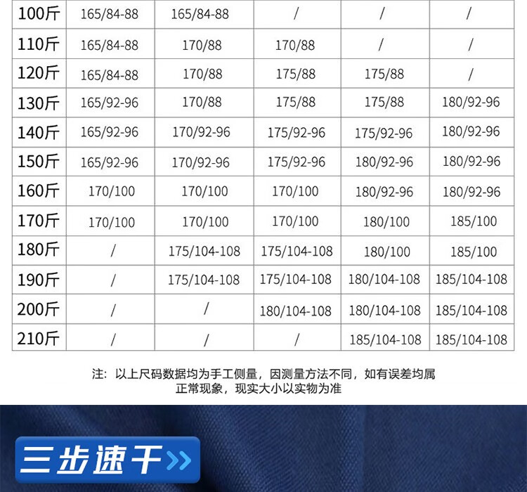 China (cm) 160-165/84-86 165-170 / 88-90 167-172 / 92-96 168-173 / 98-102 170-176 / 106-110