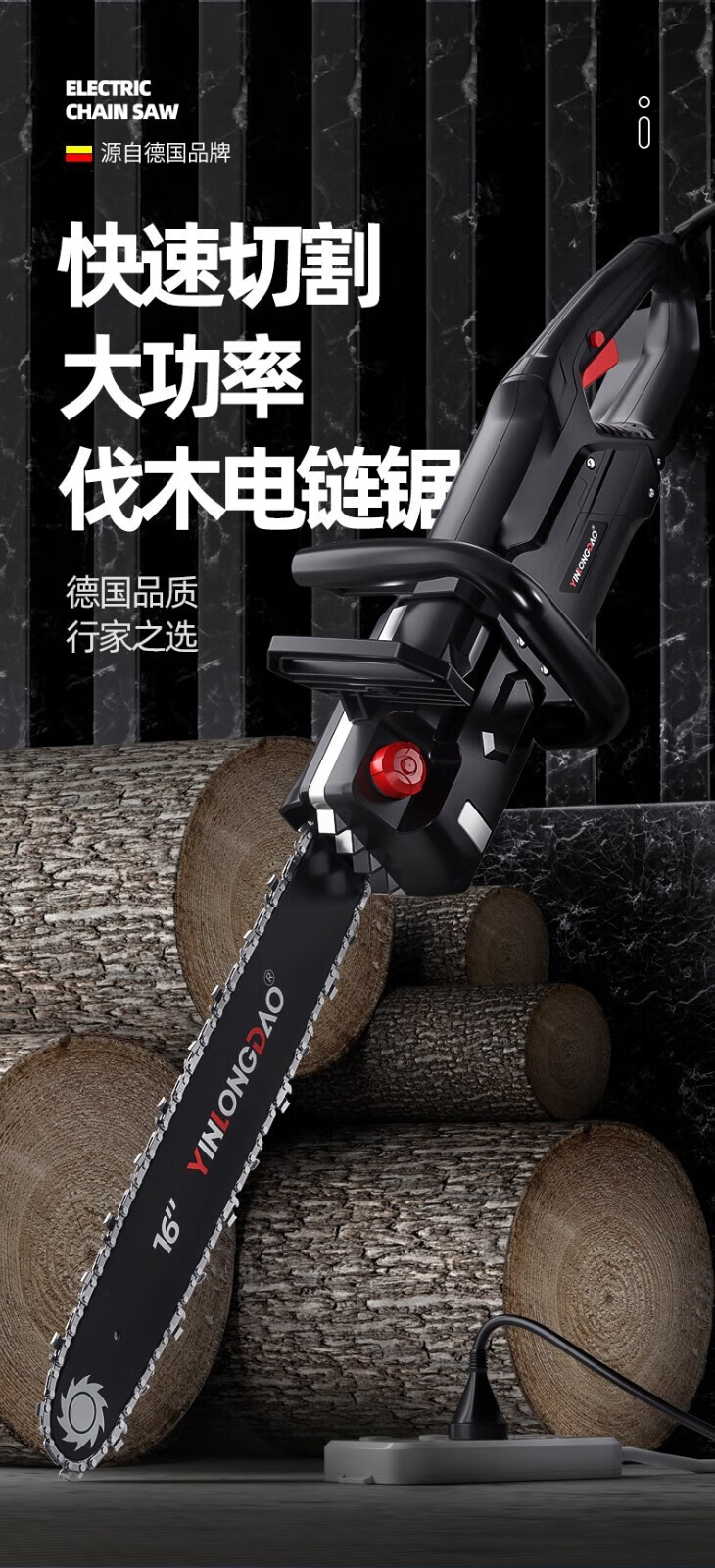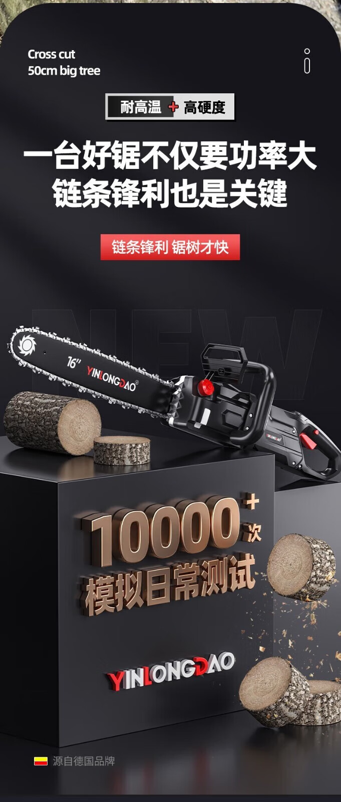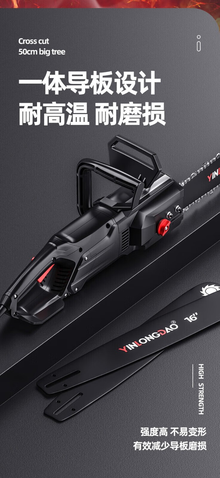 YINLONGDAO (YINLONGDAO) German Yinlongdao refueling-free household chainsaw sawing firewood small handheld logging saw plug-in 220v electric wood 16-inch practical enhanced model (1 guide plate 1 chain)