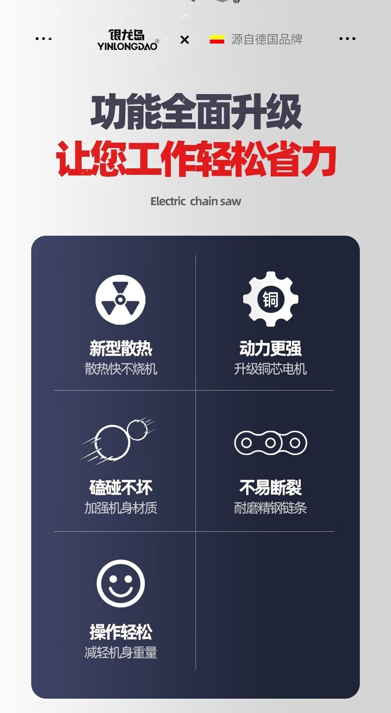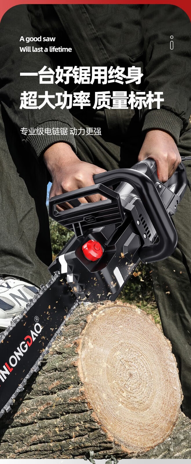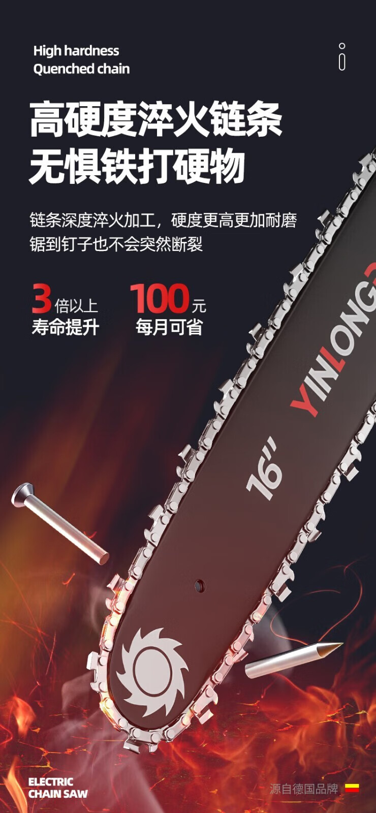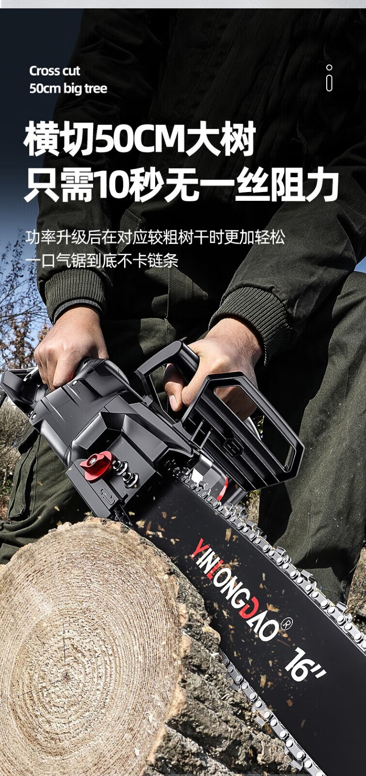YINLONGDAO (YINLONGDAO) German Yinlongdao refueling-free household chainsaw sawing firewood small handheld logging saw plug-in 220v electric wood 16-inch practical enhanced model (1 guide plate 1 chain)
