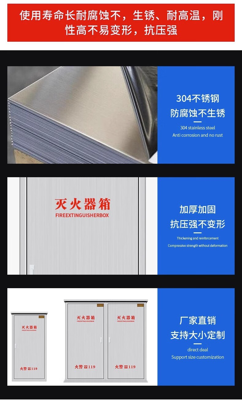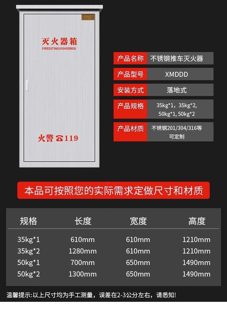 Huajie 304 thickened stainless steel 35kg trolley dry powder fire extinguisher box 50kg trolley type fire extinguisher box 2 pieces 201 stainless steel 1.0 thick 35kg 1 piece