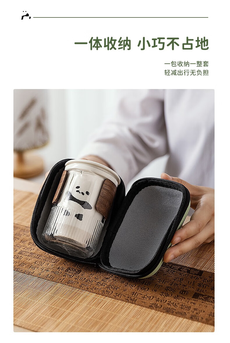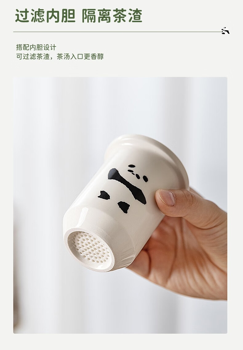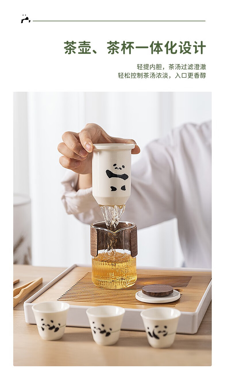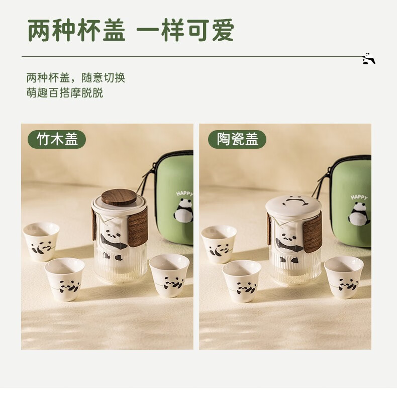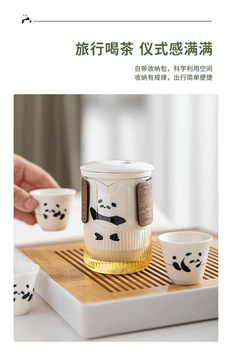 Modern Housewife Mototo Panda Travel Tea Set Portable Ceramic Kung Fu Tea Set Outdoor Quick Cup Motuo Tuo Bamboo Lid Quick Cup (one pot with three lids)