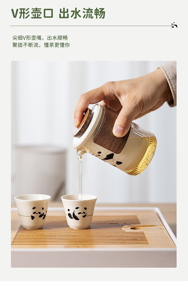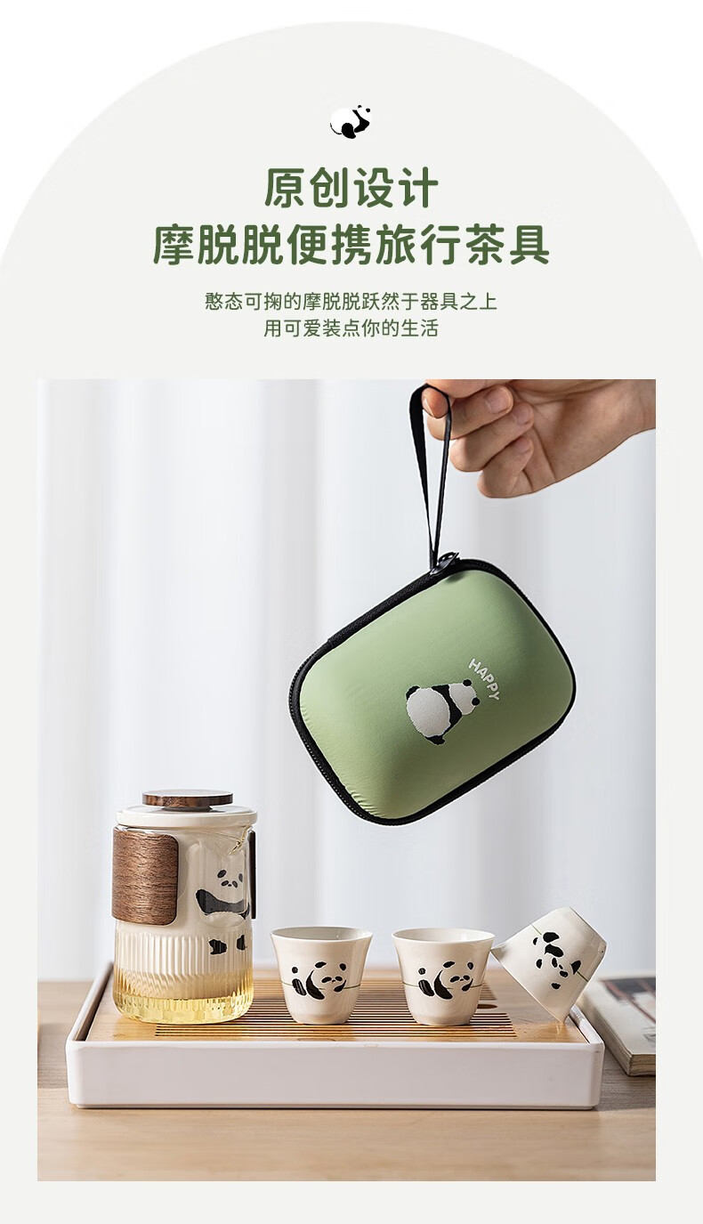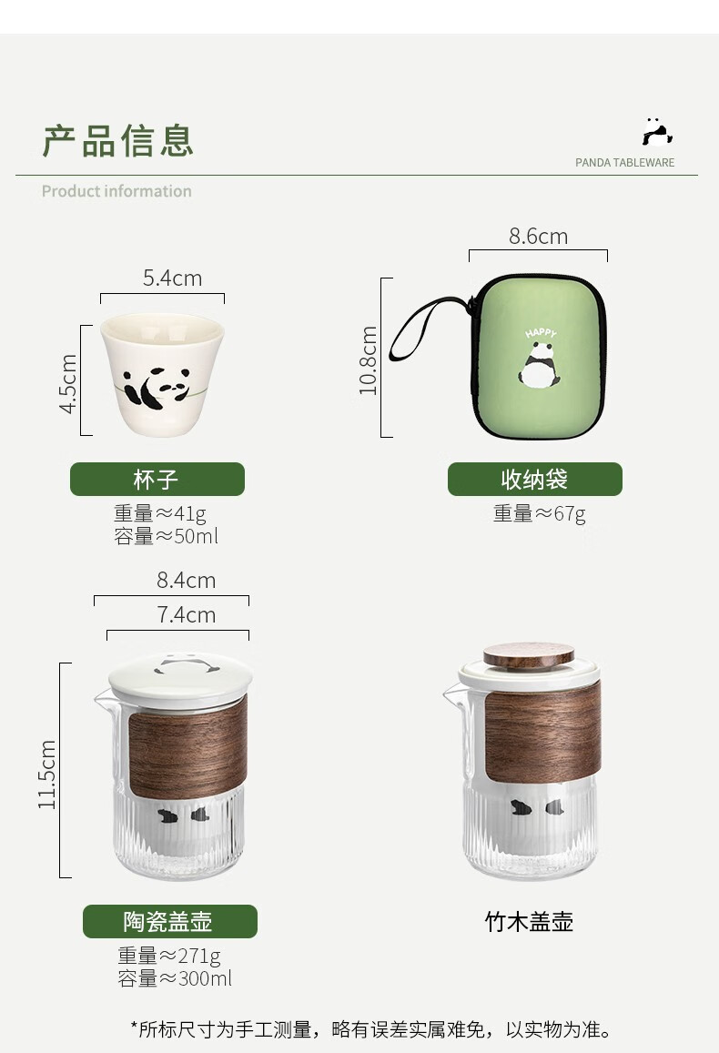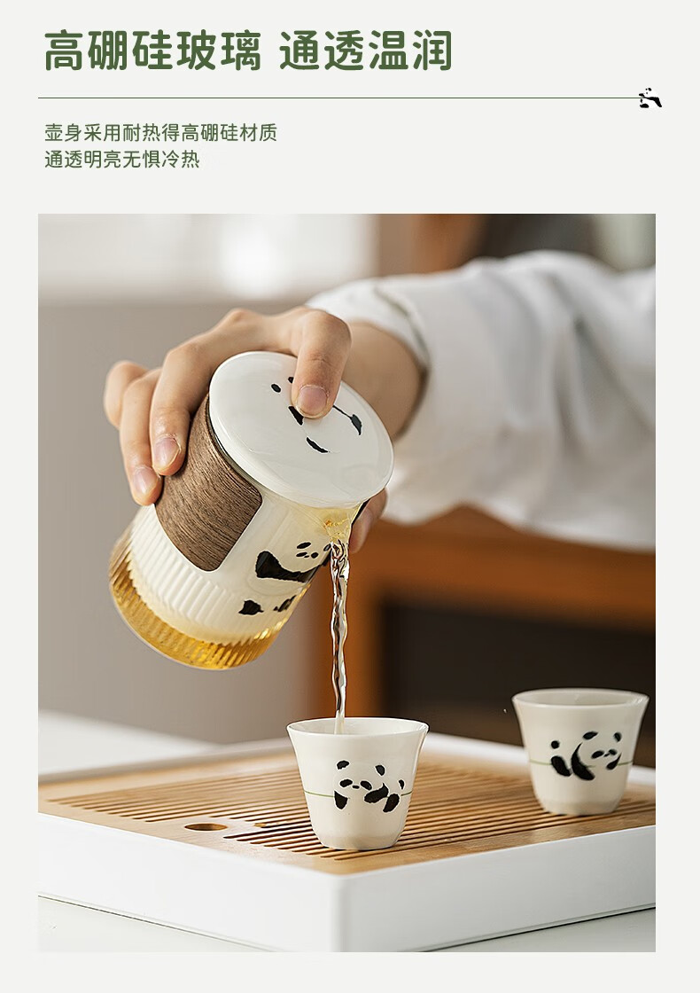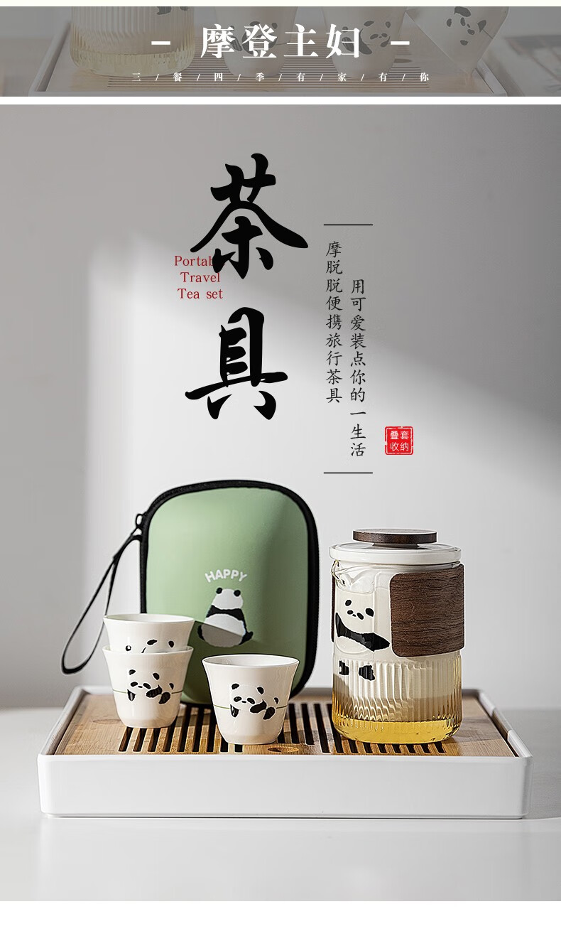 Modern Housewife Mototo Panda Travel Tea Set Portable Ceramic Kung Fu Tea Set Outdoor Quick Cup Motuo Tuo Bamboo Lid Quick Cup (one pot with three lids)