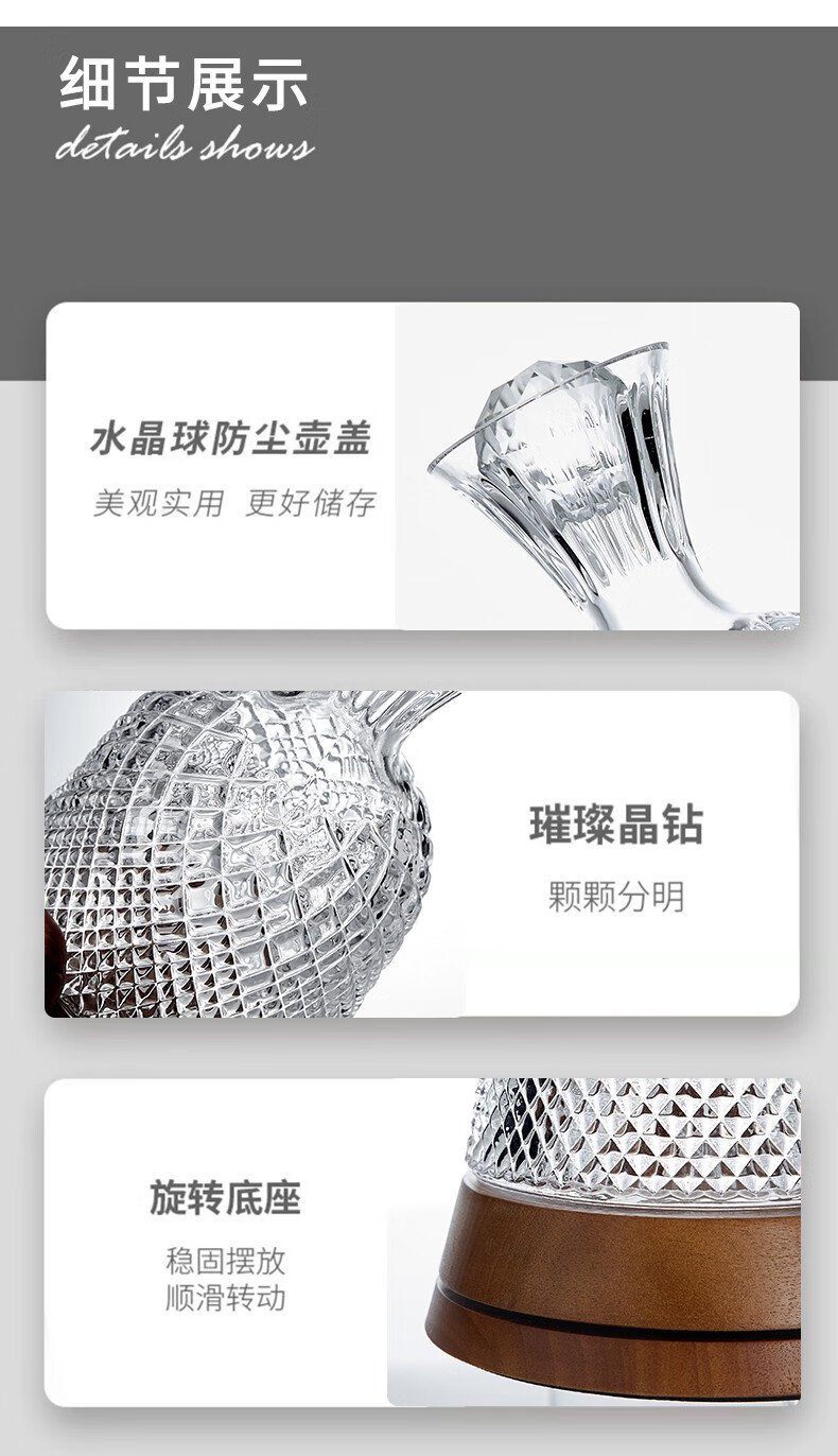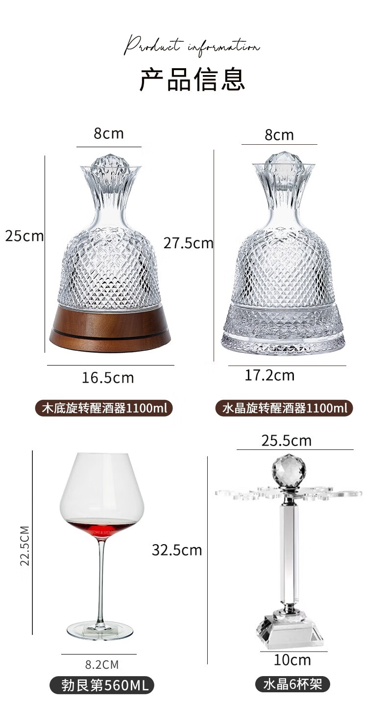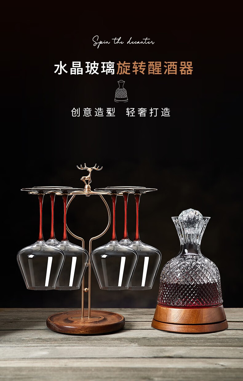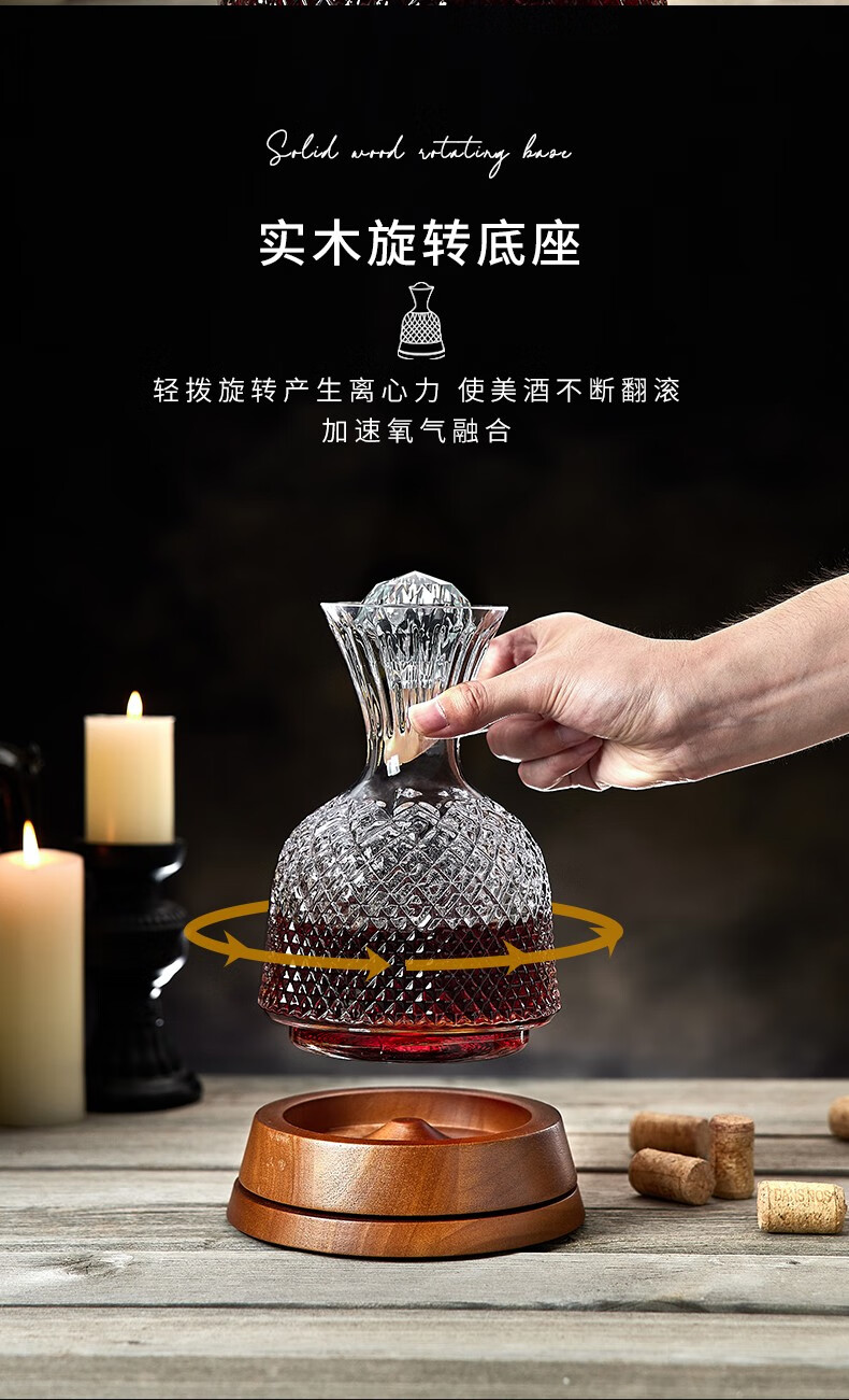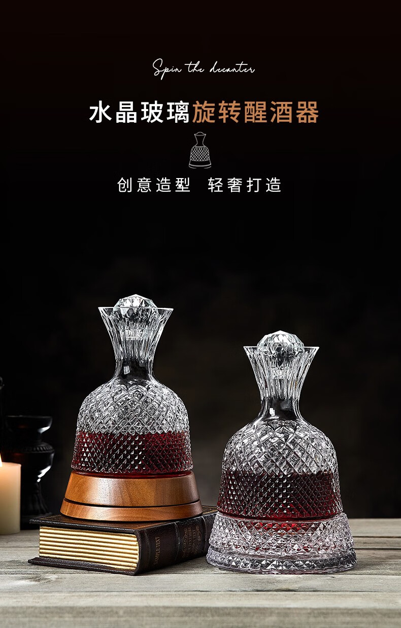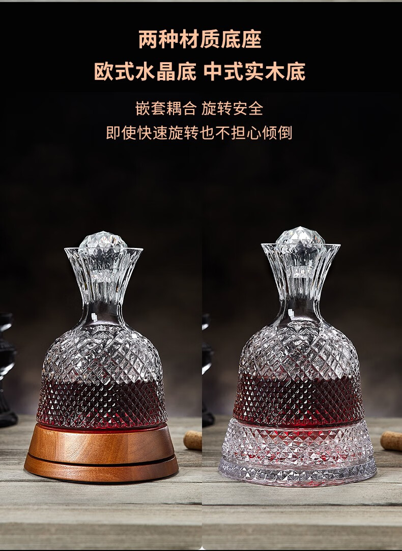 Green apple luxury high-end red wine rotating decanter quick home wine set glass wine tumbler wine jug welfare model crystal rotating decanter 1100ml