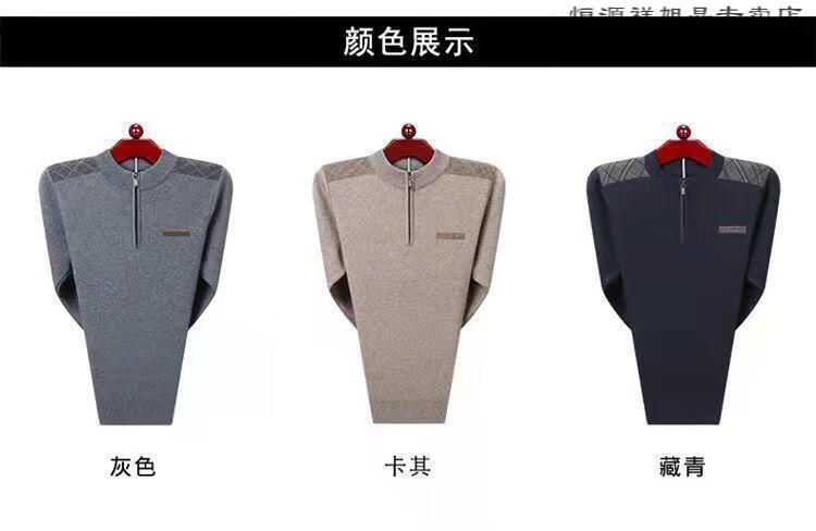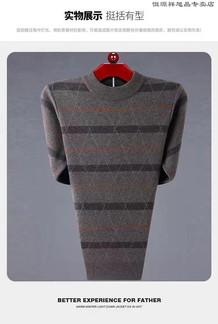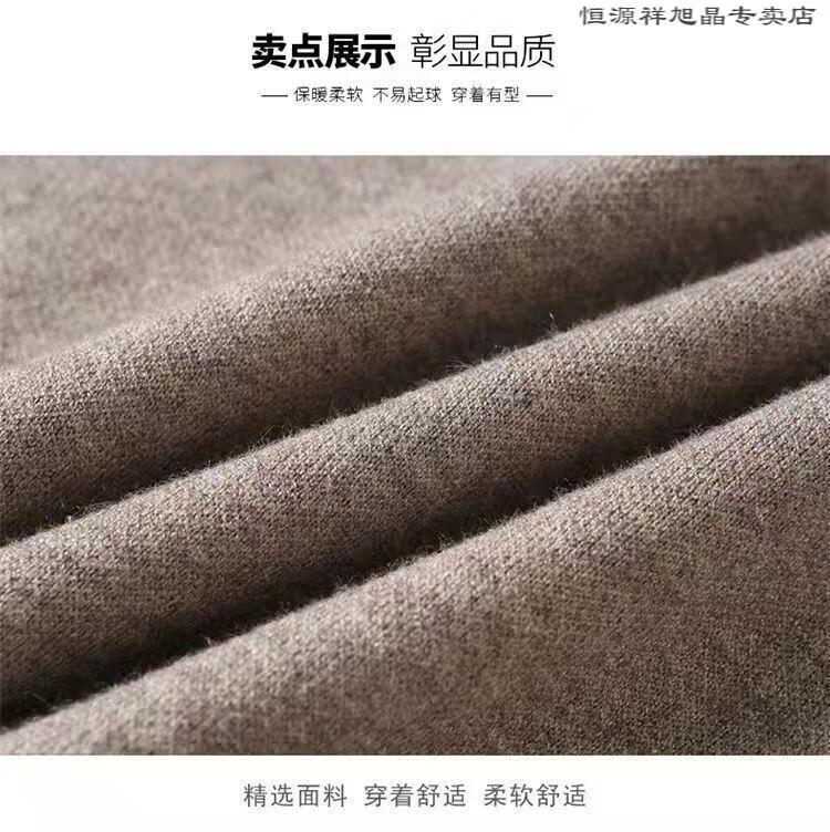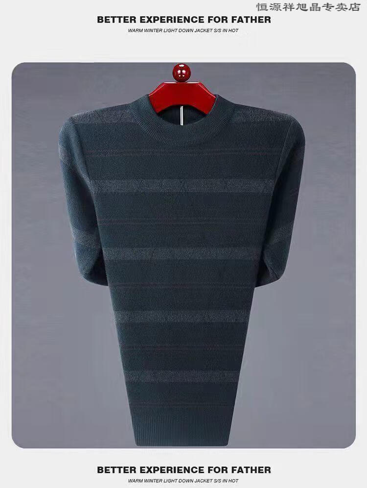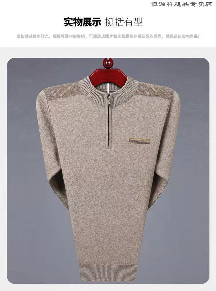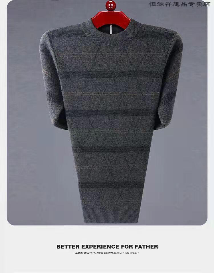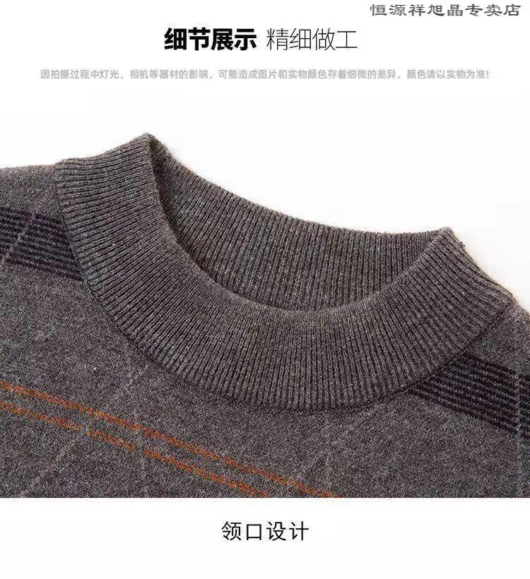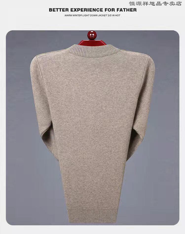 Hengyuanxiang middle-aged and elderly men's round neck thickened 100% wool sweater men's cashmere sweater goat wool high-end wool sweater dad 2812 khaki wool sweater extra thick thick section L (170) recommended 120-140 Jin Jin equals 0.5 kg