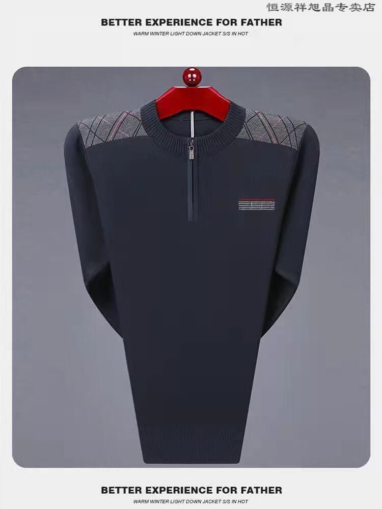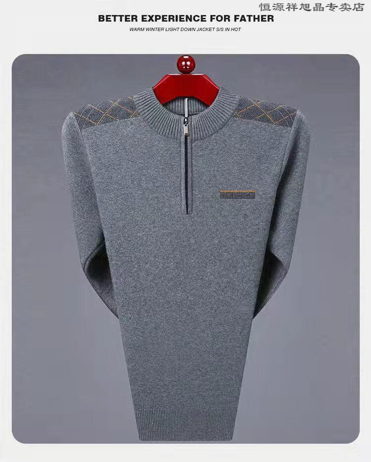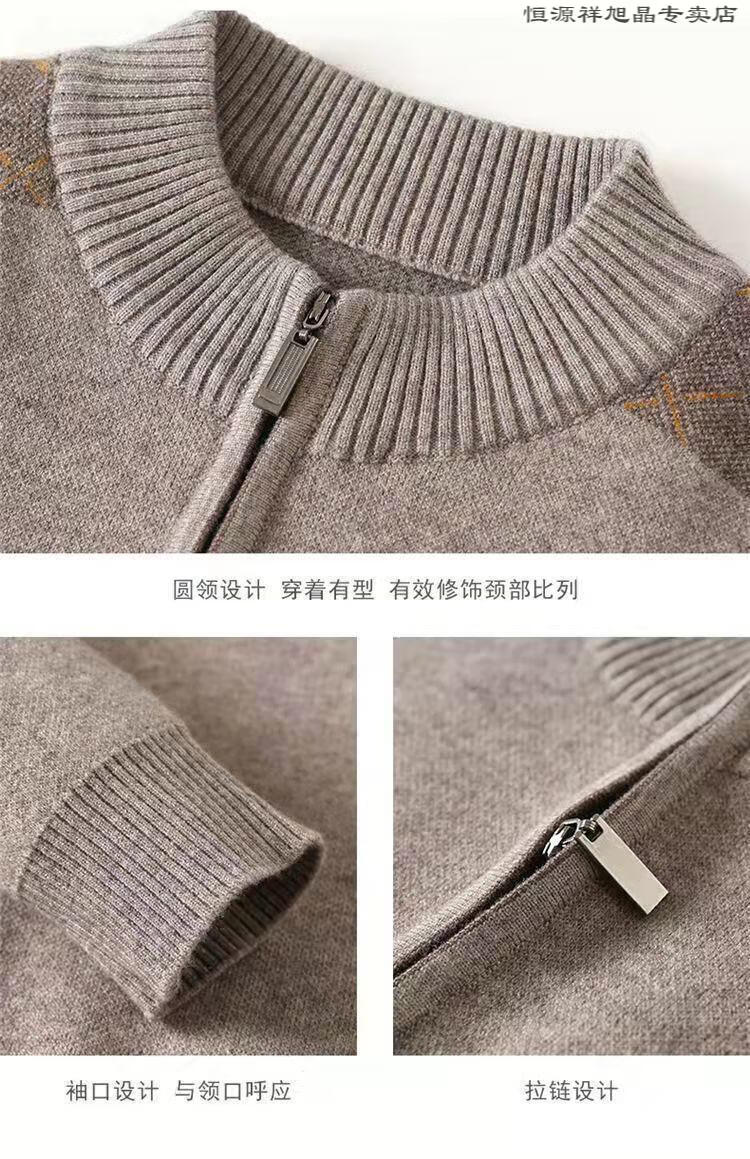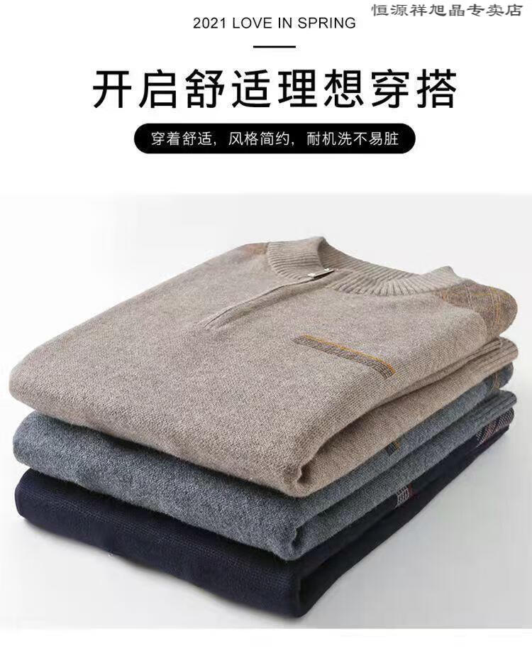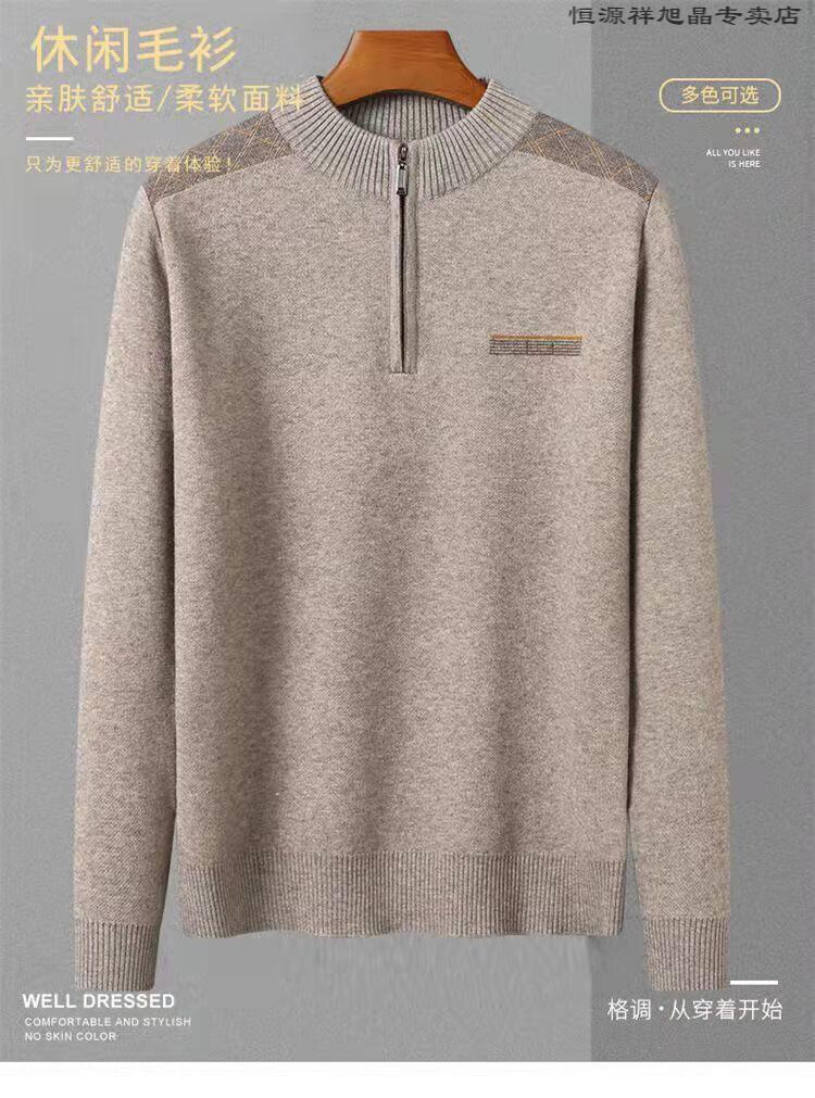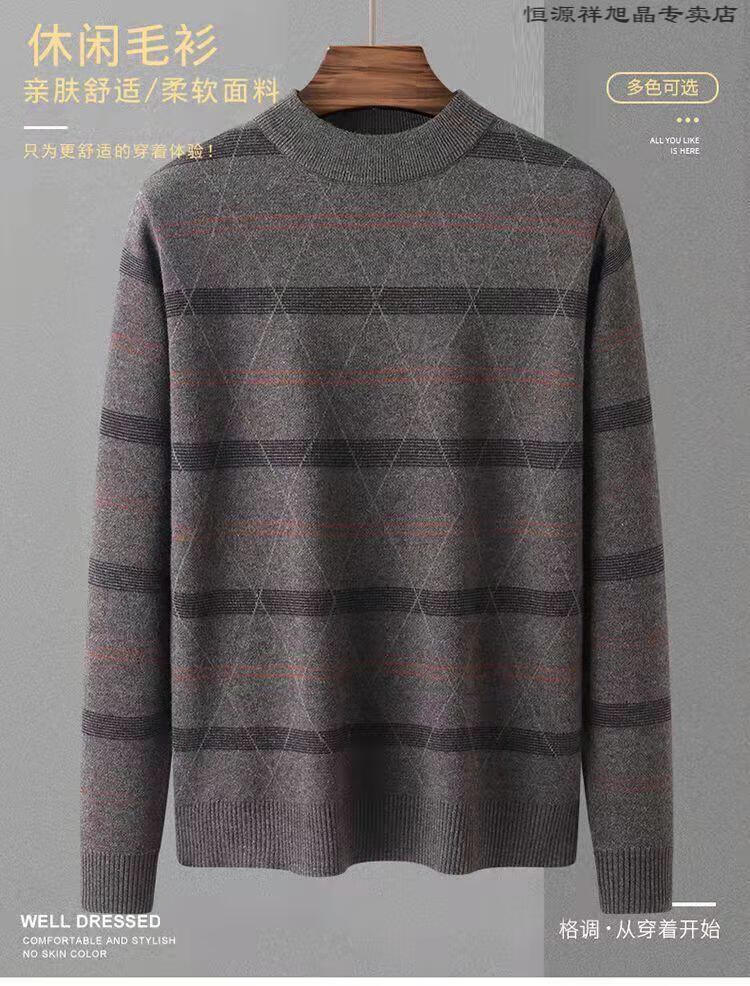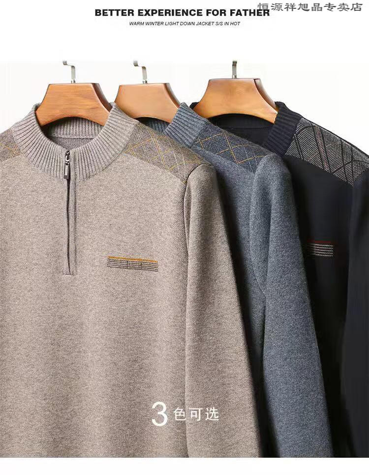 Hengyuanxiang middle-aged and elderly men's round neck thickened 100% wool sweater men's cashmere sweater goat wool high-end wool sweater dad 2812 khaki wool sweater extra thick thick section L (170) recommended 120-140 Jin Jin equals 0.5 kg