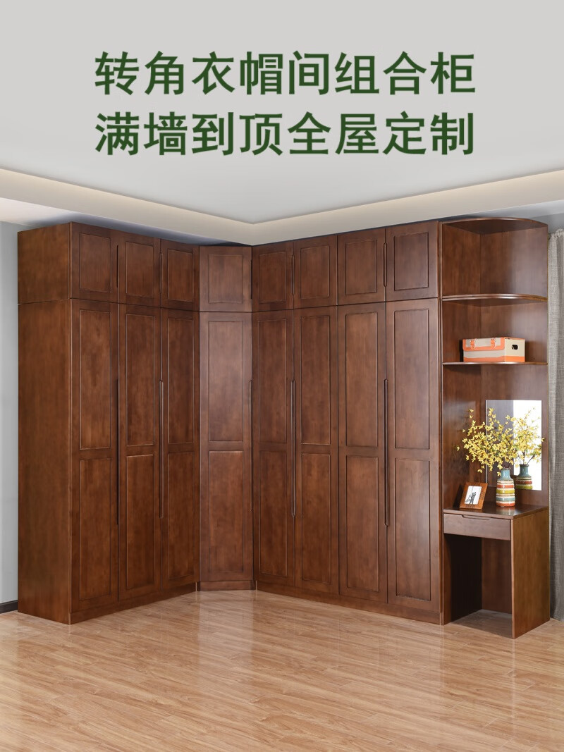 Baiyuntang whole house custom-made large wardrobe cabinets all solid wood cypress wood ash wood corner cloakroom free combination full wall to top custom deposit