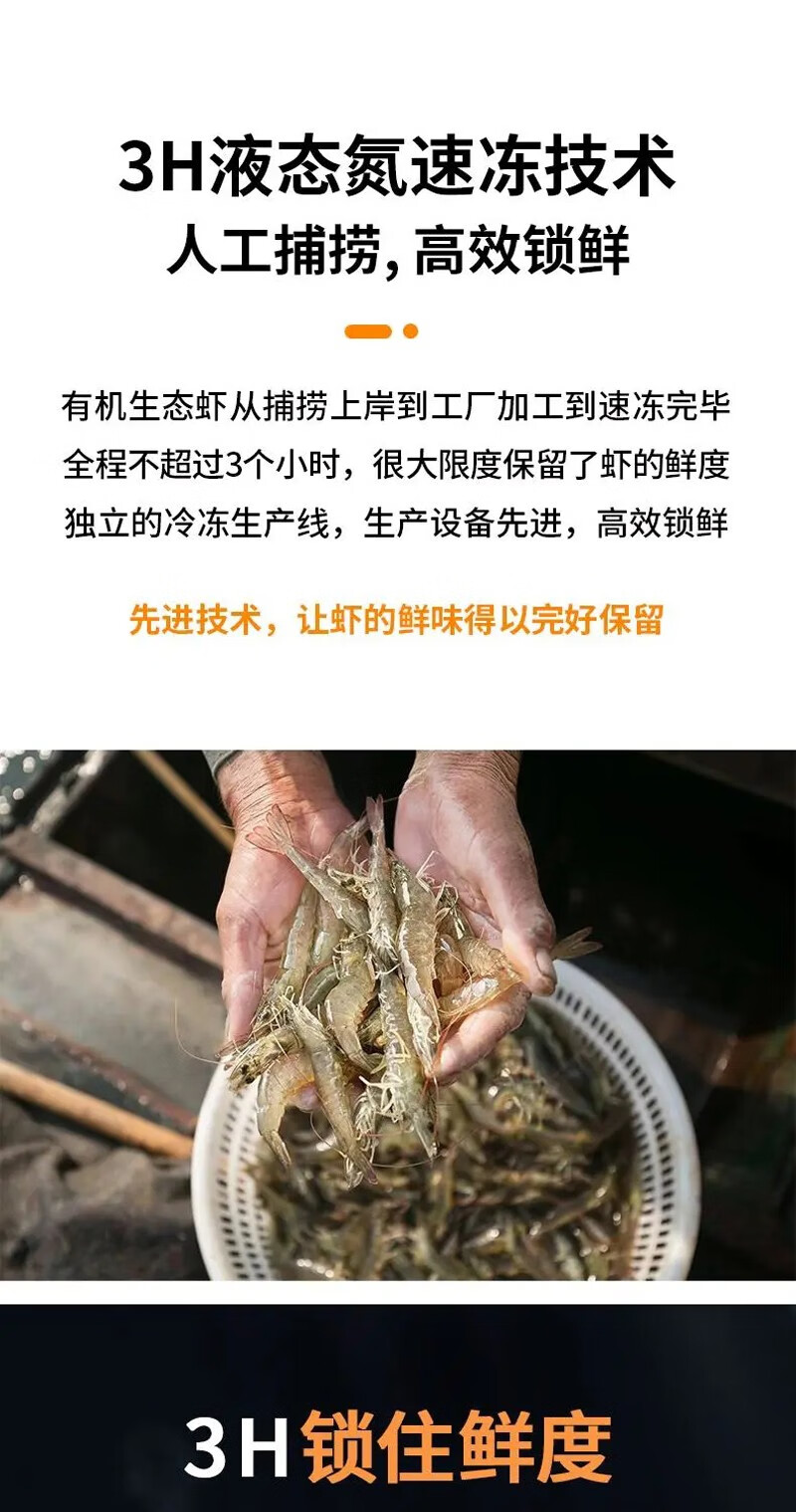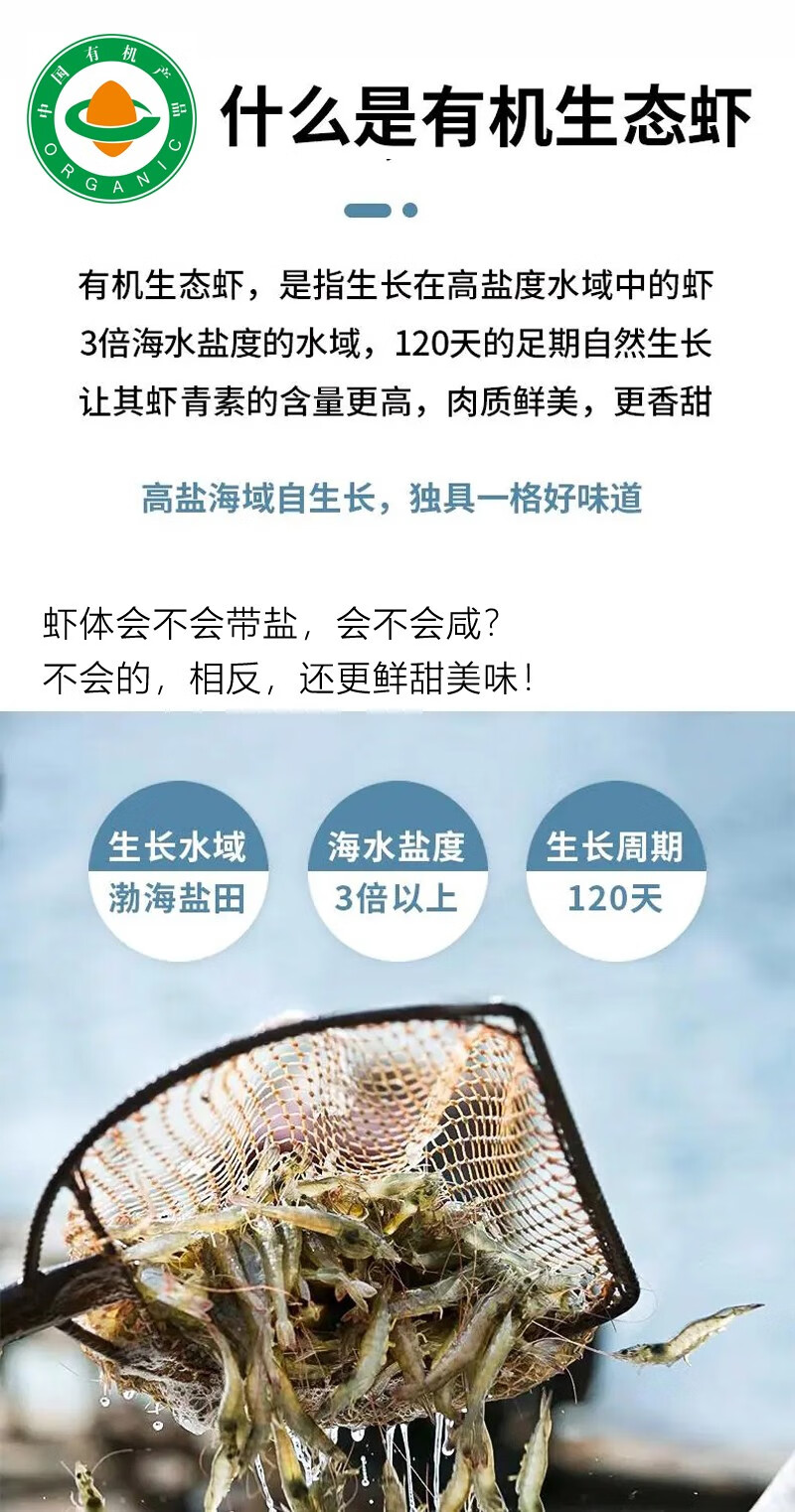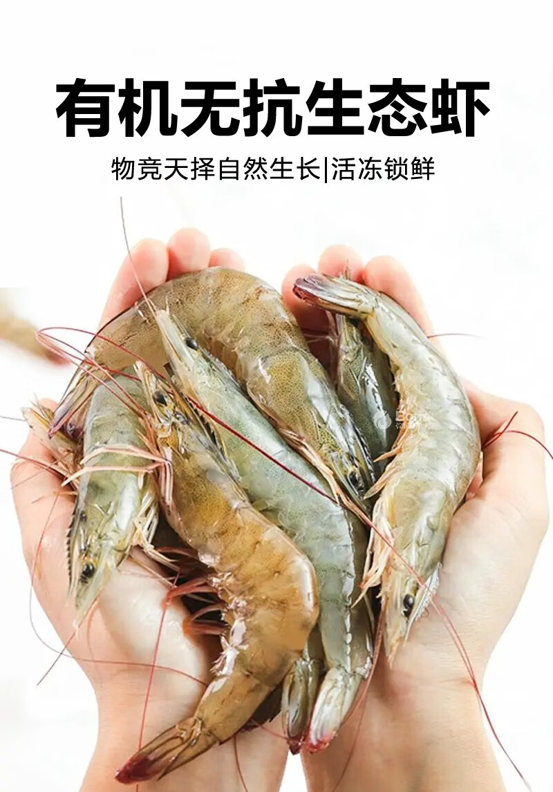 Taihuhai organic prawns, antibiotic-free salt field shrimps, fresh and frozen prawns, pregnant and baby tongbaobao, Spring Festival products, organic shrimps 1200g (net weight)
