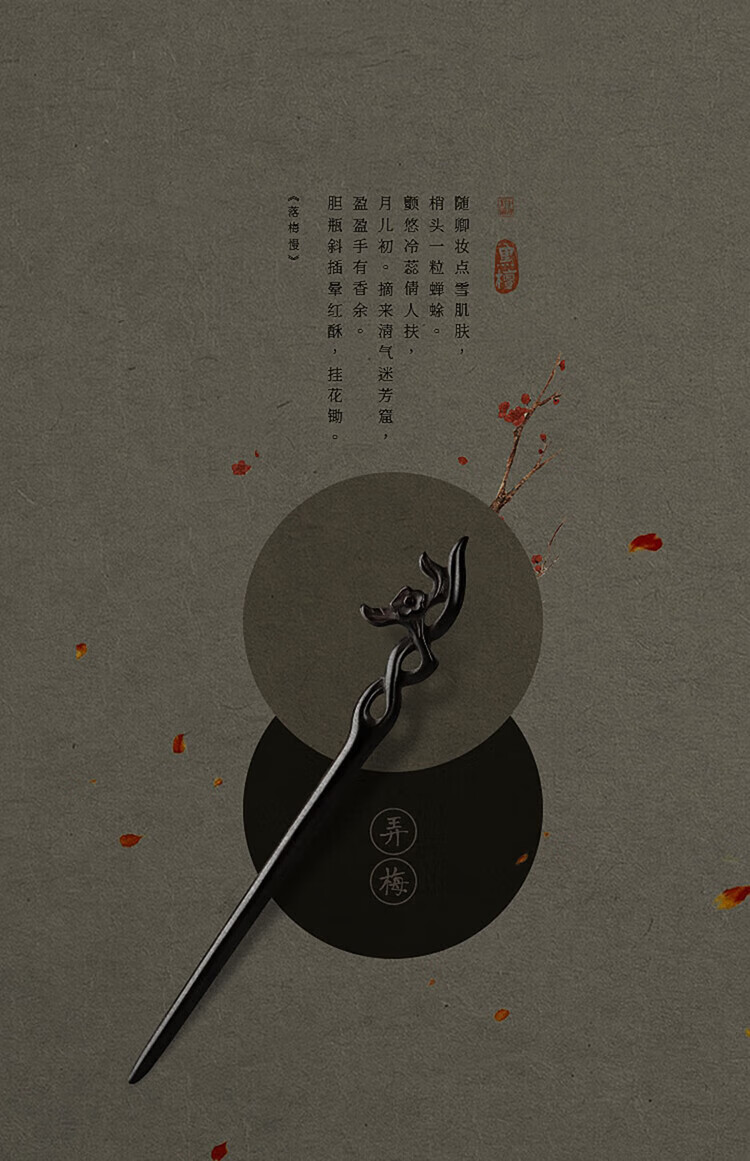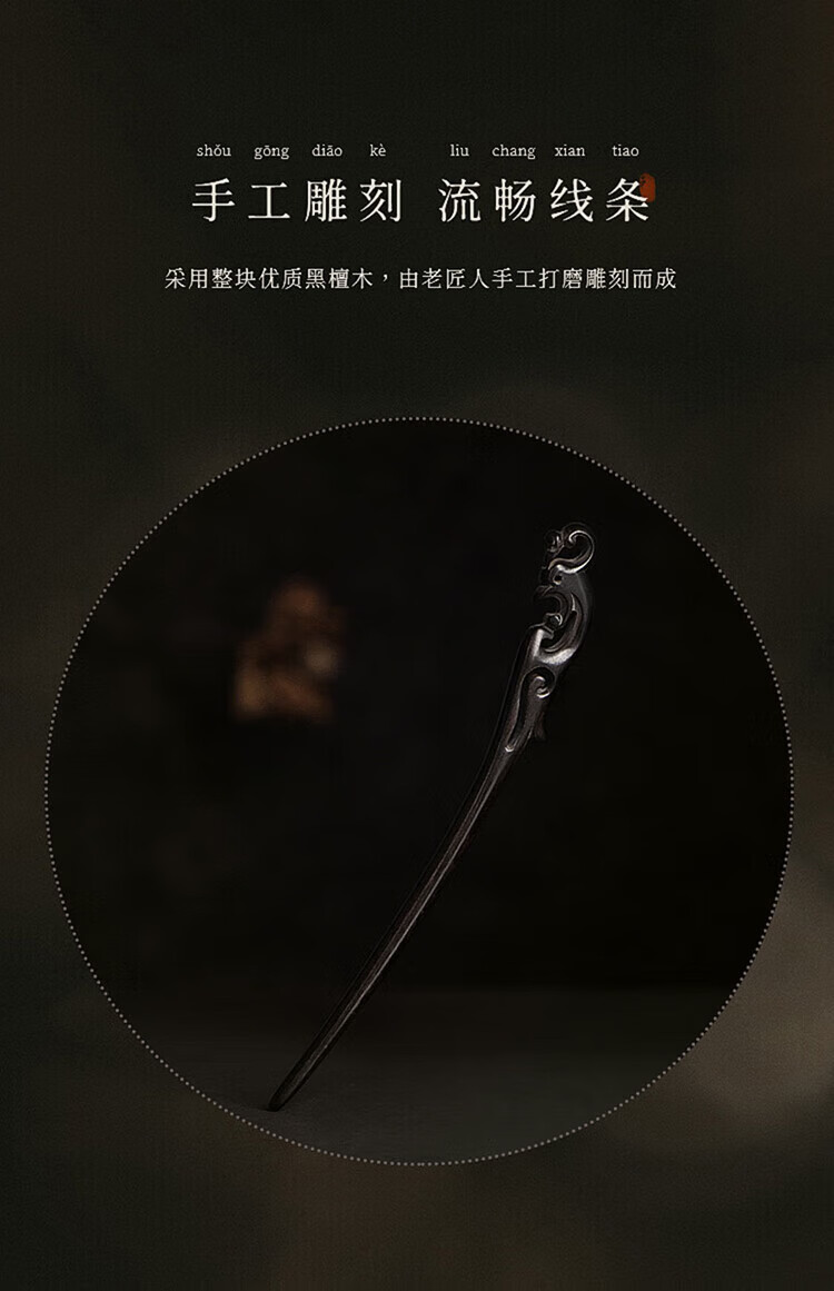 Two Worlds of Joy Black Sandalwood Hairpin Ancient Style Hanfu Hairpin Peach Wood High-Level Feeling Handmade Birthday Gift for Girlfriend Hairpin