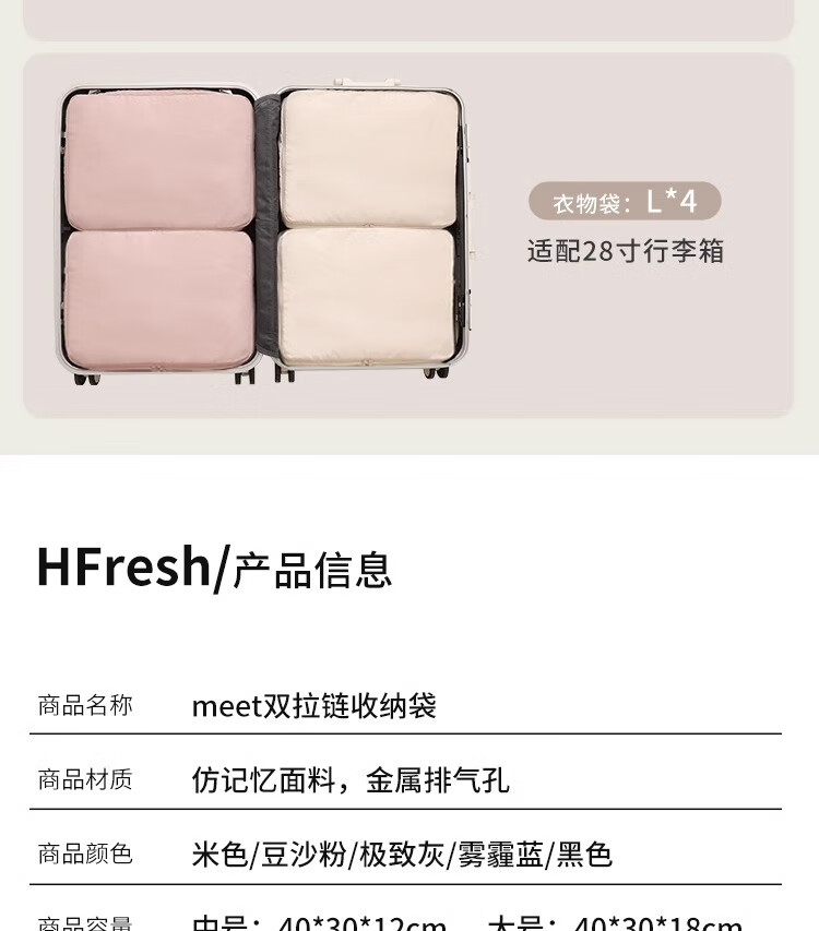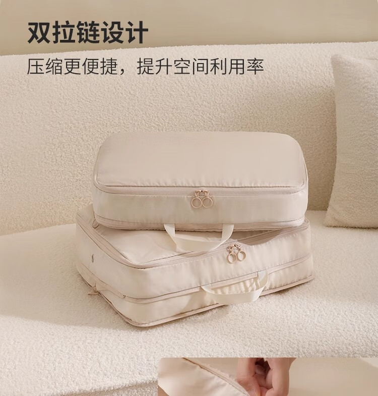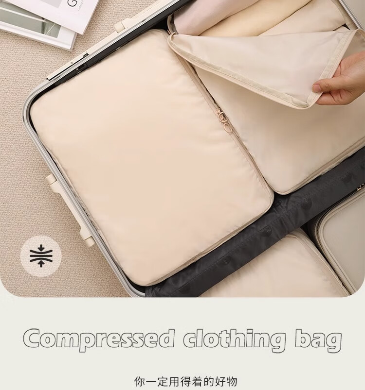 Japanese travel compression bag portable suitcase organizer bag travel clothing clothing repackaging bag underwear storage bag off-white large Pro