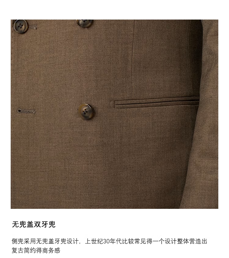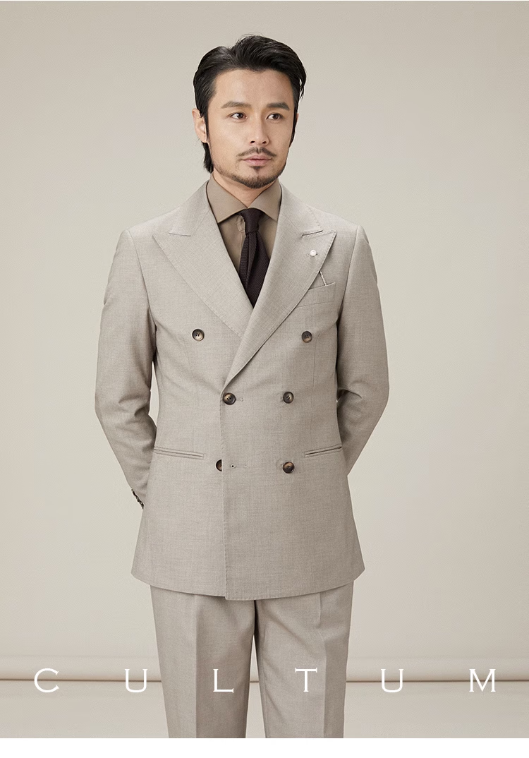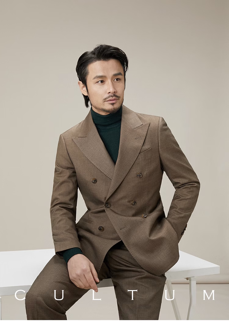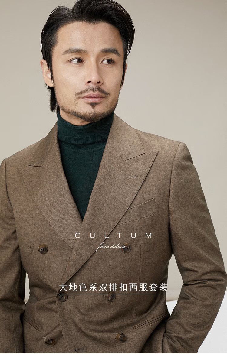 CULTUM Italian retro earth-color double-breasted lapel suit suit men's casual business single suit formal suit linen brown two-piece suit please note your own pants size 175A /50A