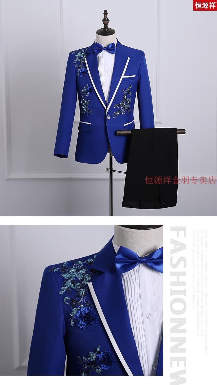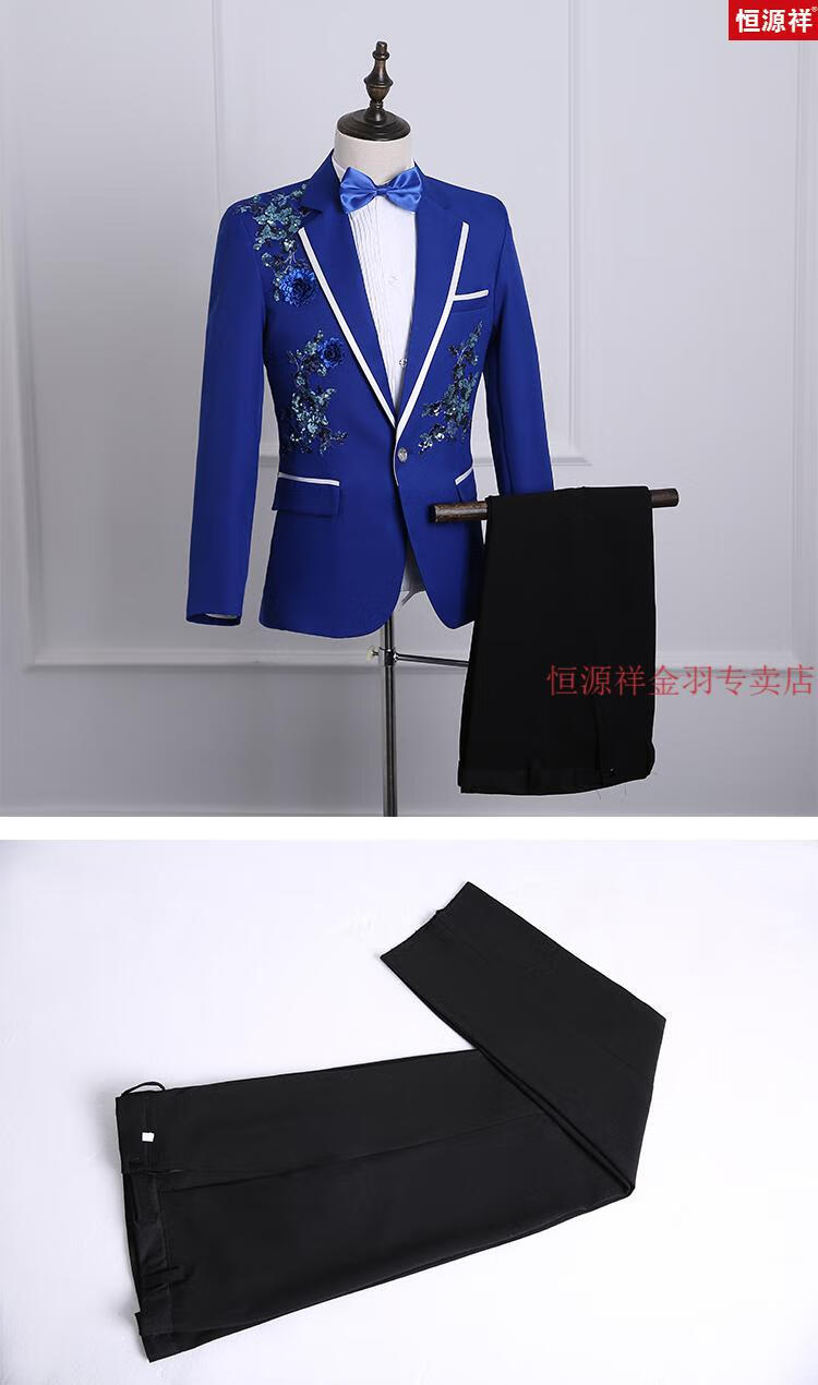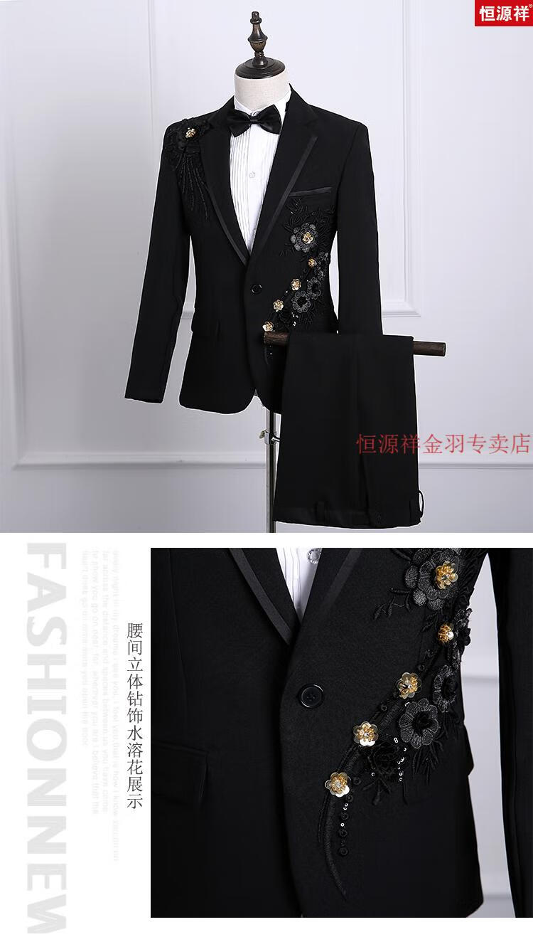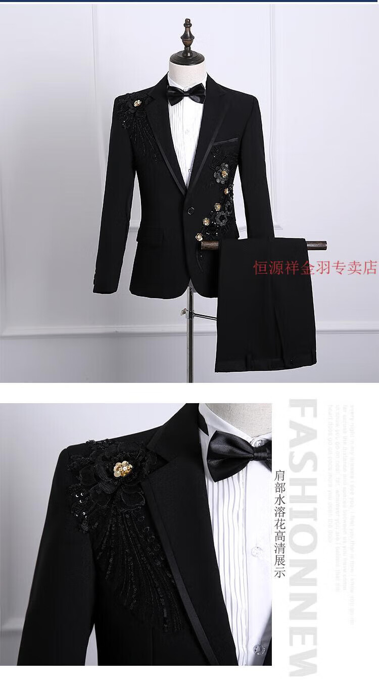 Hengyuanxiang new performance clothing men's adult suit singer host costume stage chorus emcee performance dress black top + pants with tie 180/92A XL weight 160Jin Jin equals about 0.5 kg