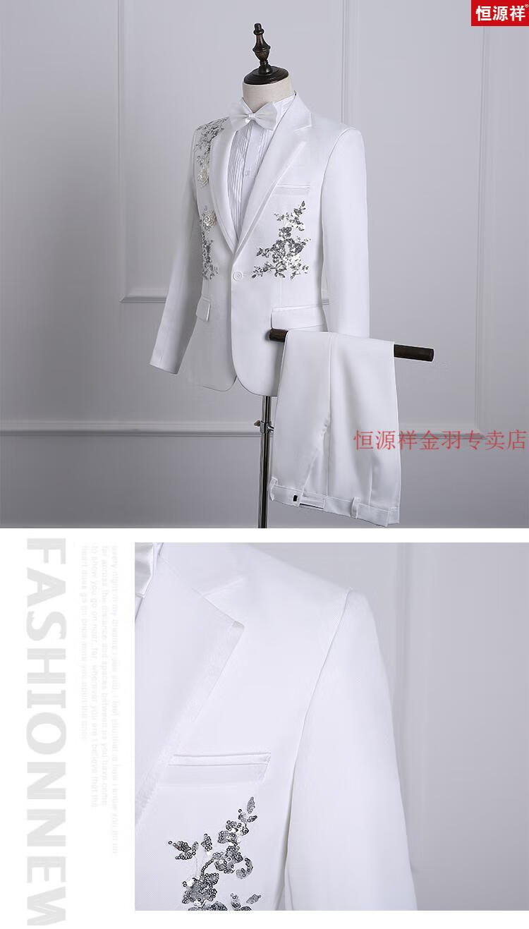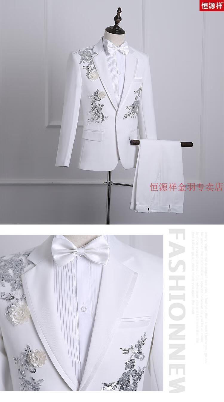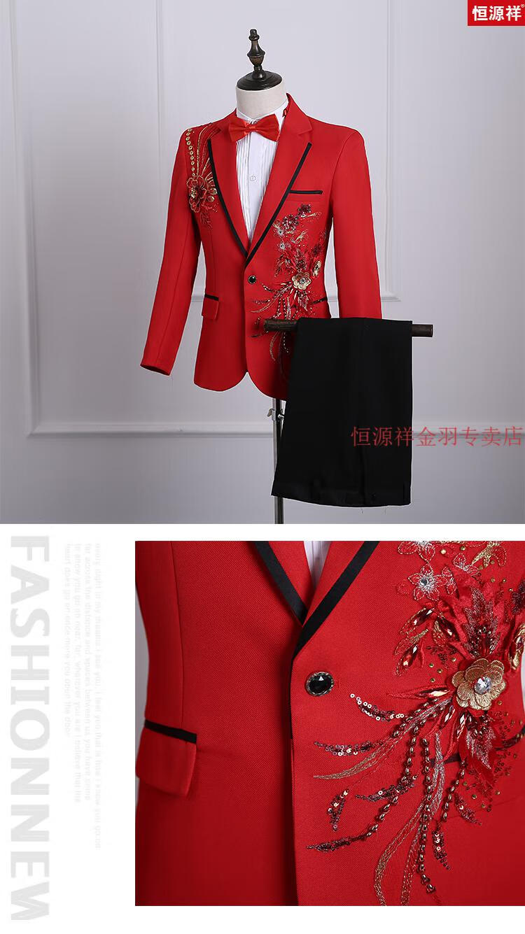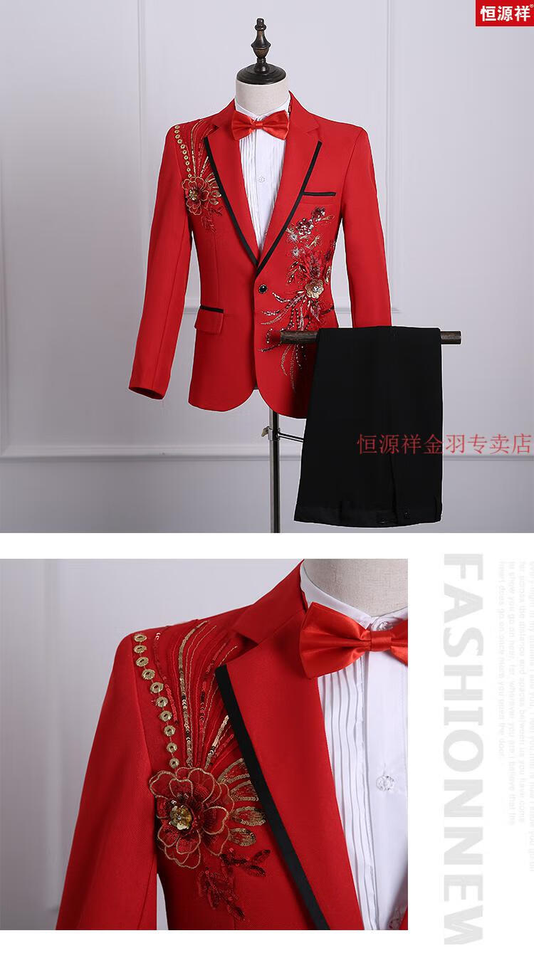 Hengyuanxiang new performance clothing men's adult suit singer host costume stage chorus emcee performance dress black top + pants with tie 180/92A XL weight 160Jin Jin equals about 0.5 kg
