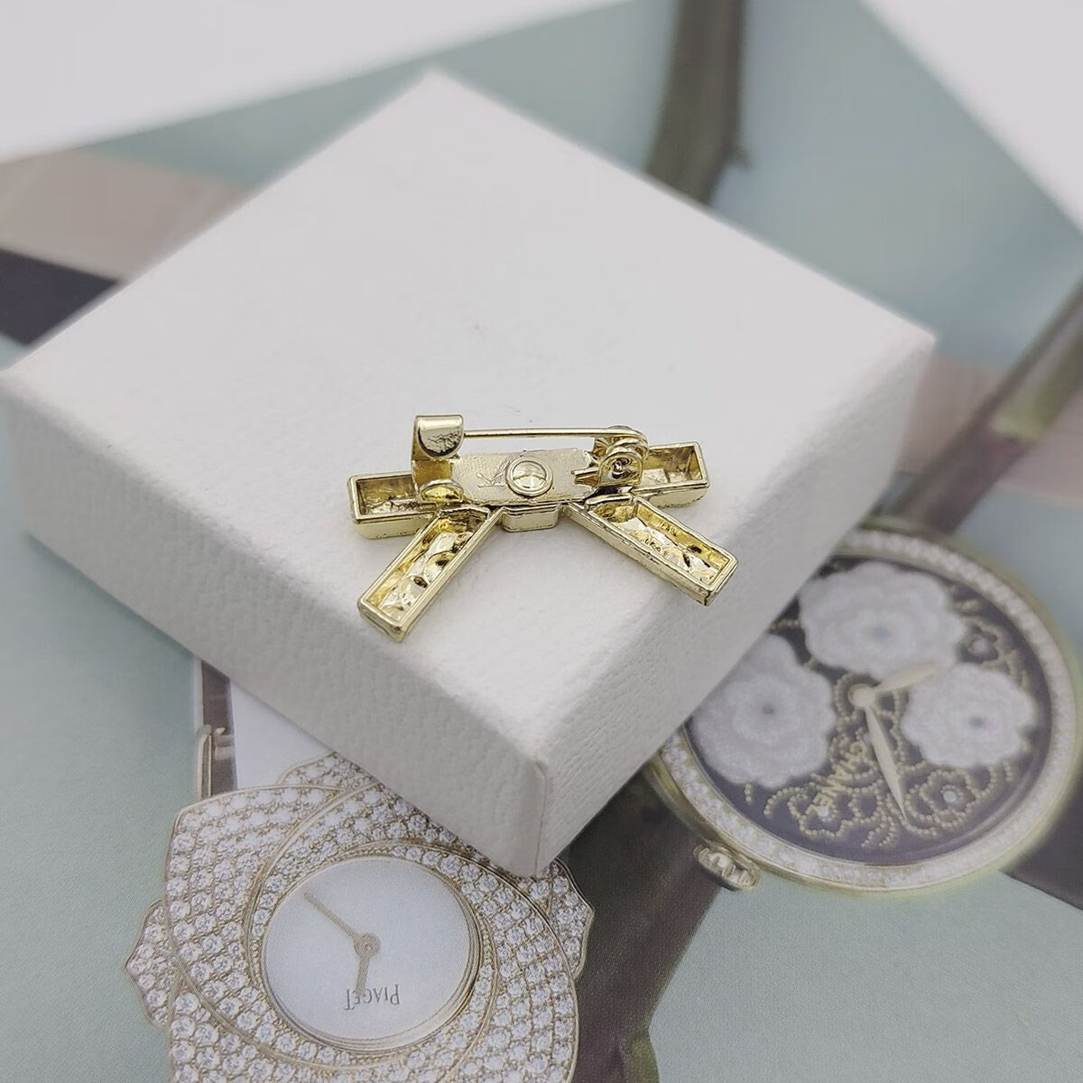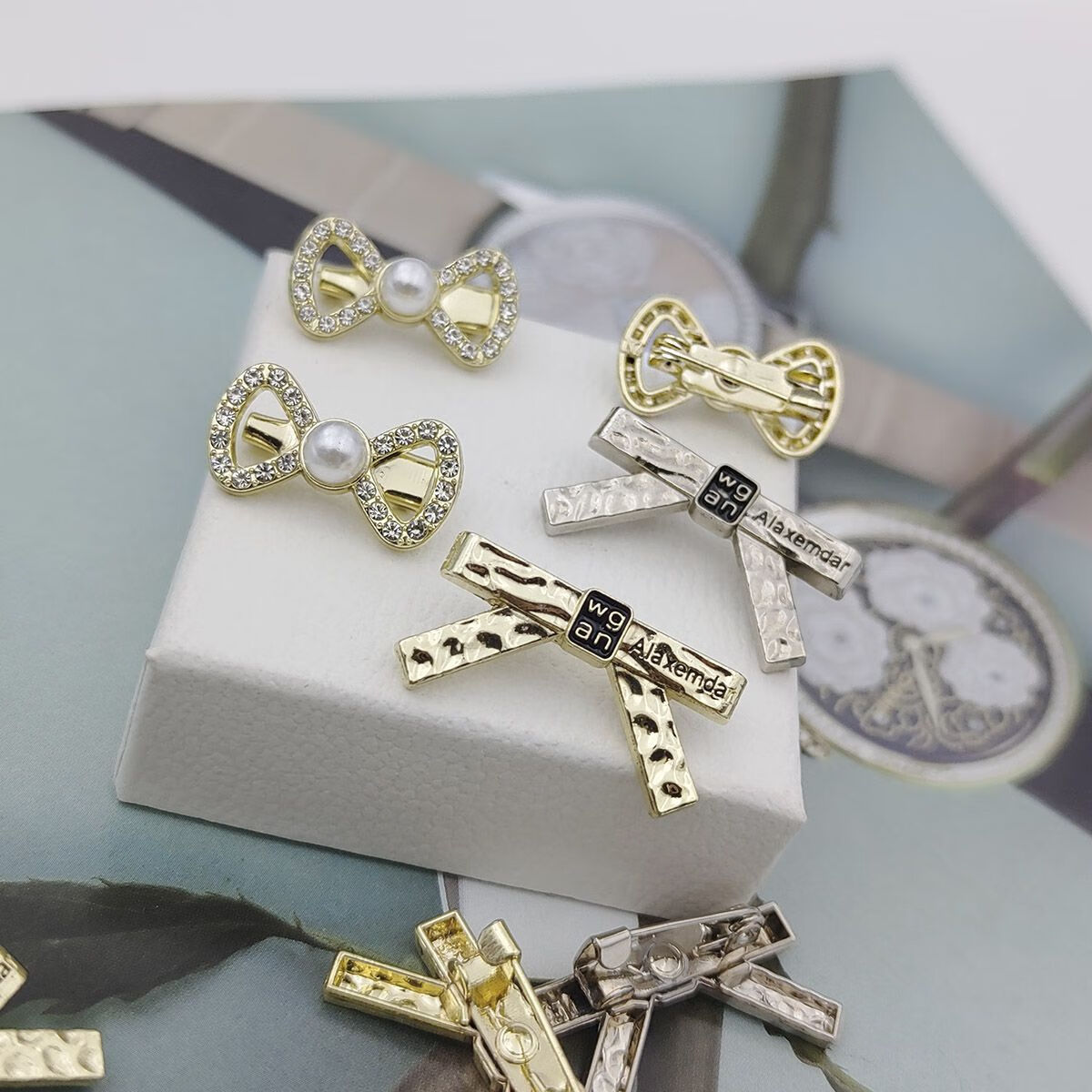 Suiyuxianyan new Hao stone diamond brooch bow tie pin anti-exposure fashion accessories design 5096 (37x57mm)