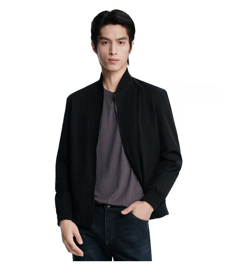Powerful men's jacket men's baseball collar solid color casual spring and autumn short jacket men | BKDE3288 Black L