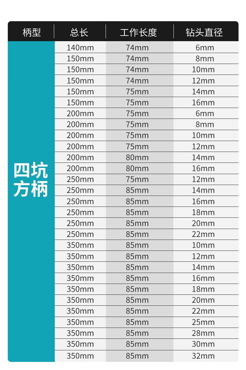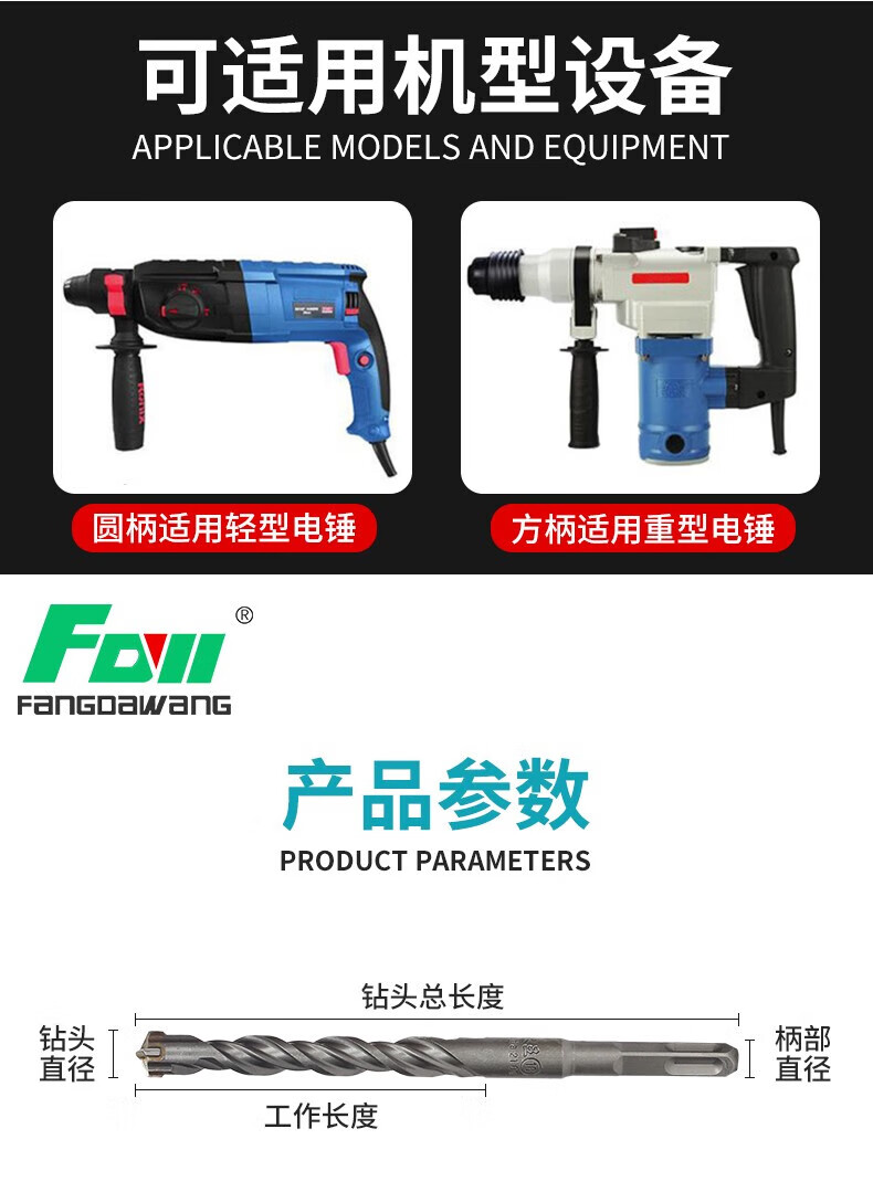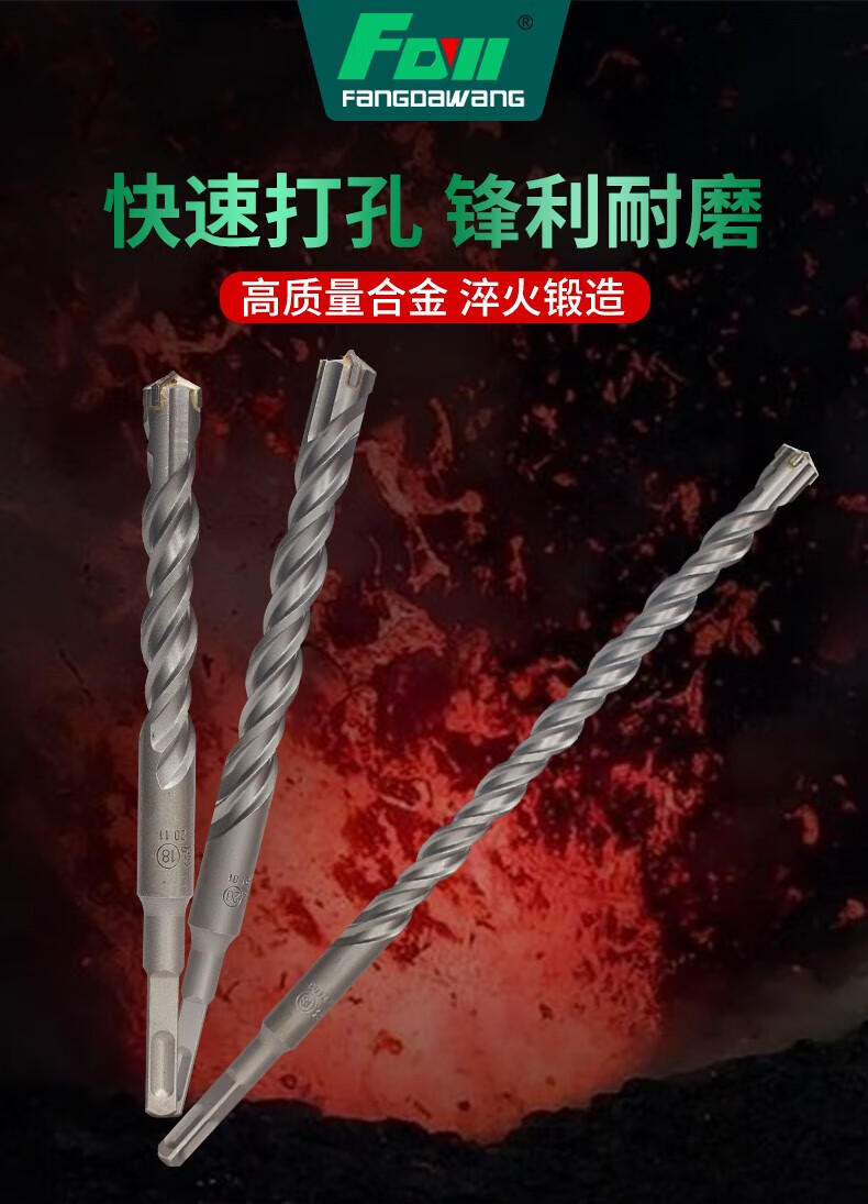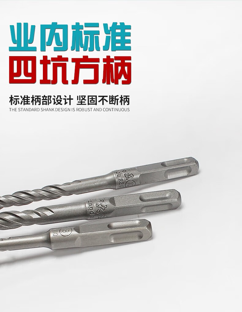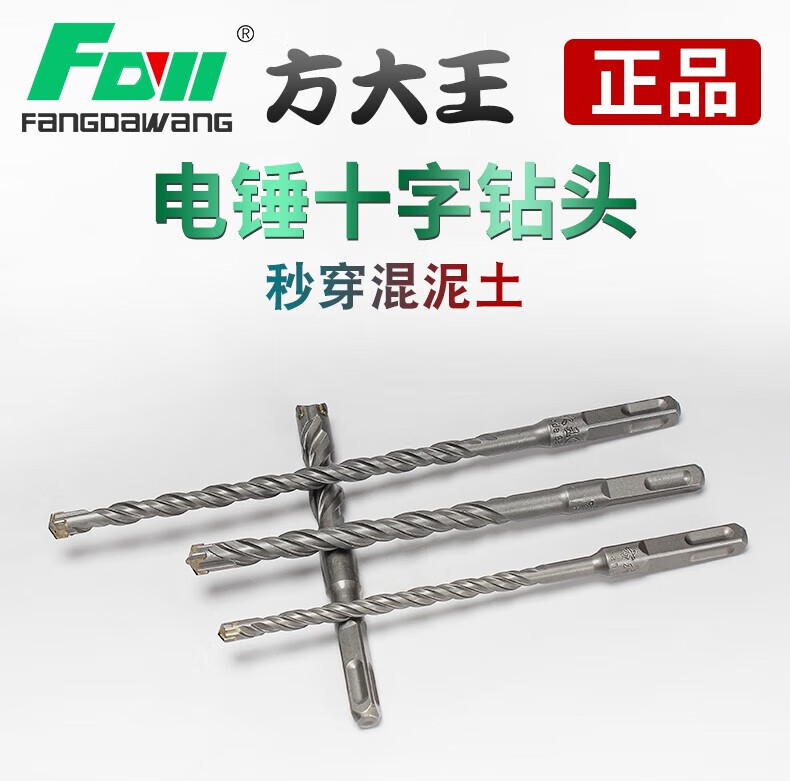 Fang Dawang cross impact drill bit electric hammer concrete wall-penetrating square handle wall-turning head round handle four-pit extended alloy four-edged drill square handle cross 12*150