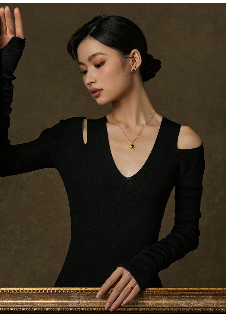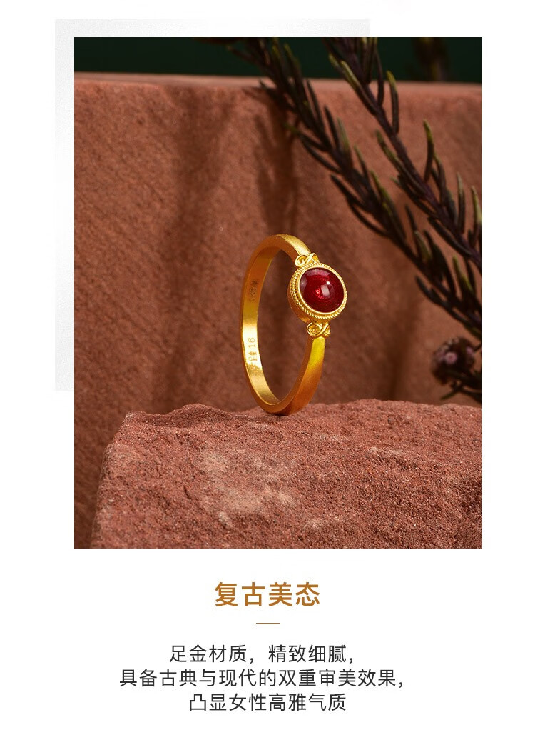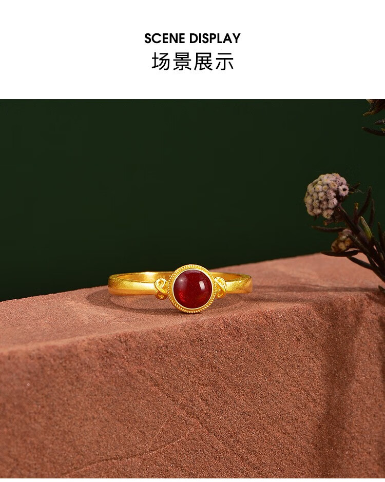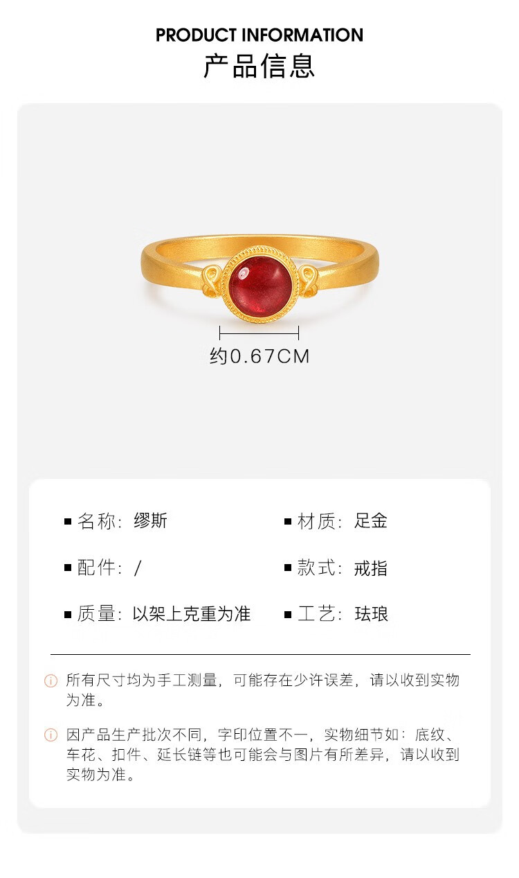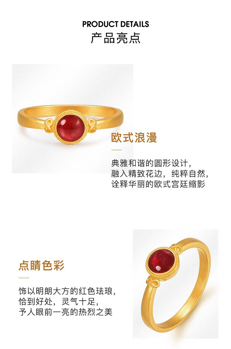Ming brand jewelry pure gold European style red enamel round muse ring AFM0281 labor cost 550 pure gold ring size 12 about 3.64 grams