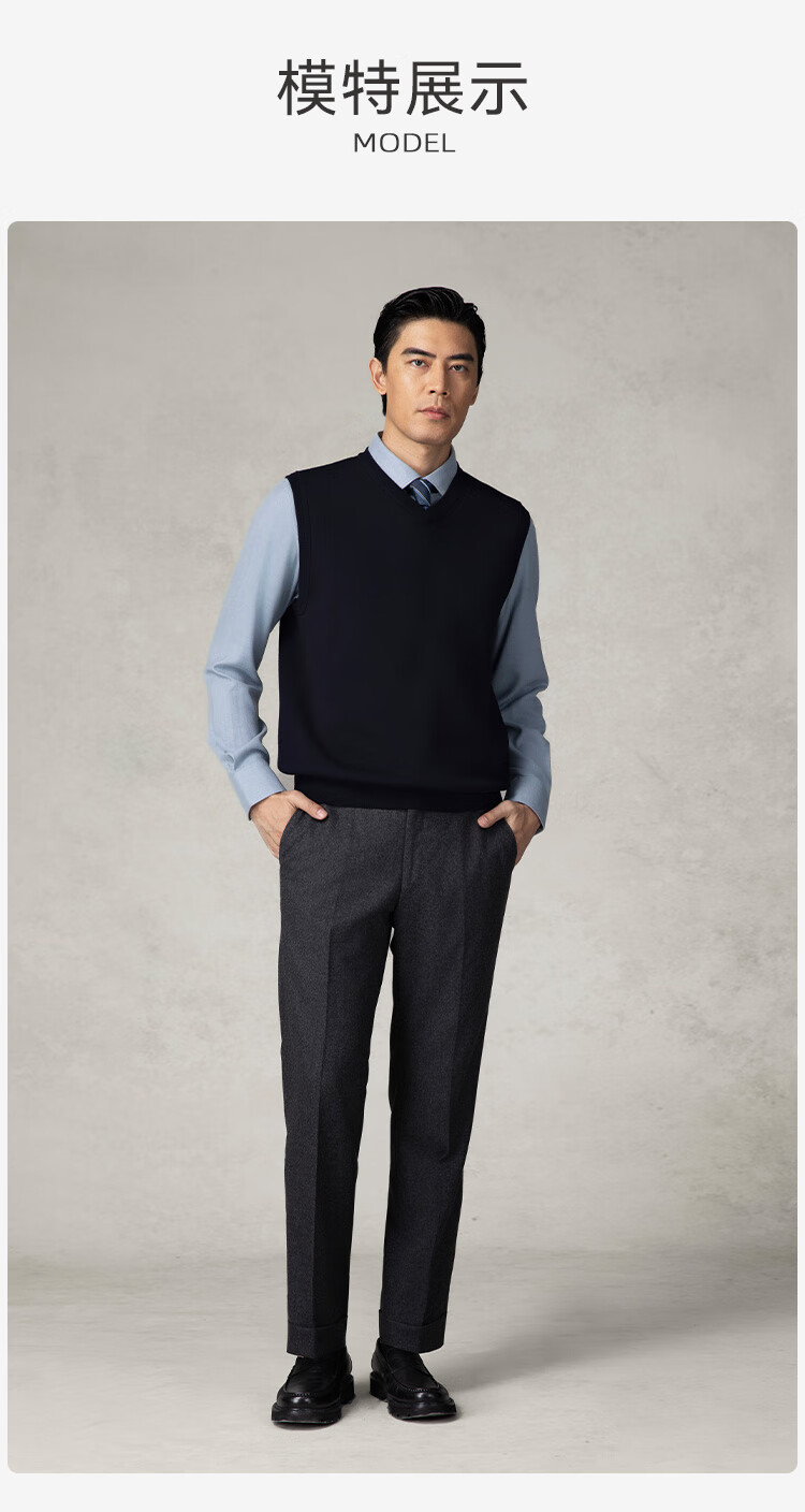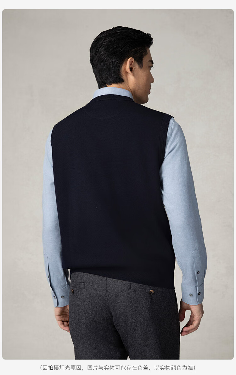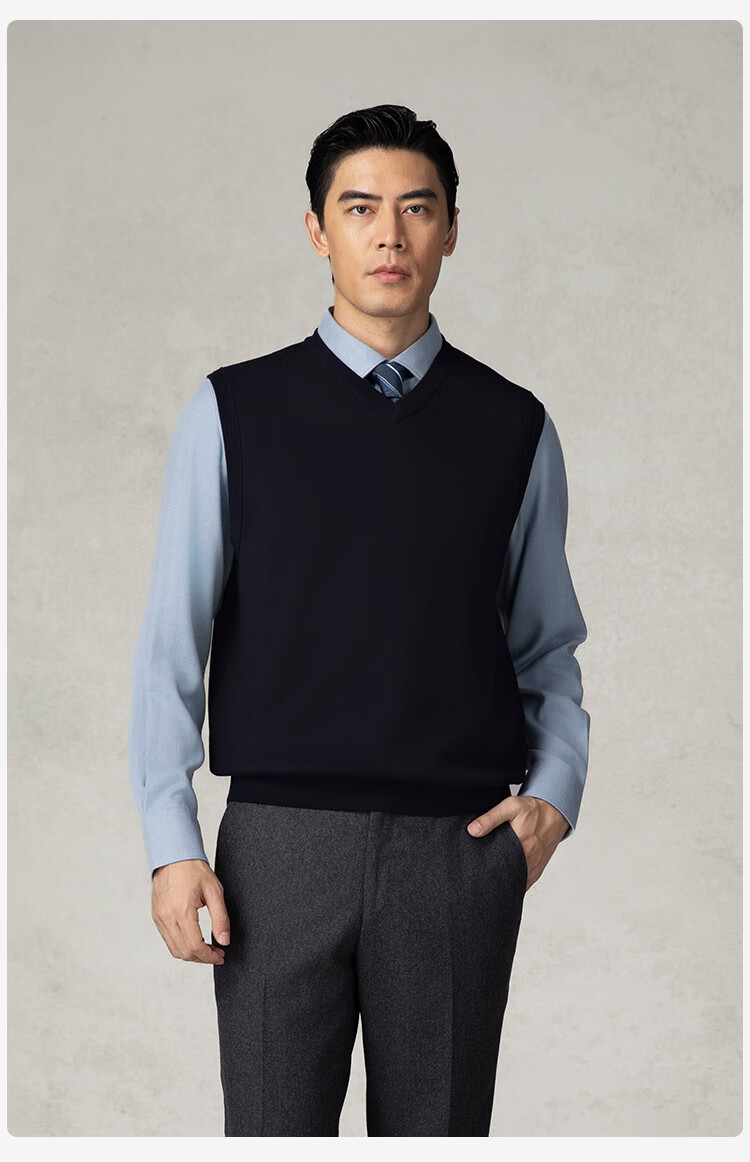 GORNIA men's wool vest pullover wool V-neck business commuting dark blue casual vest for men GBW22338110 dark blue L