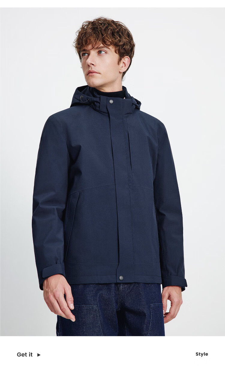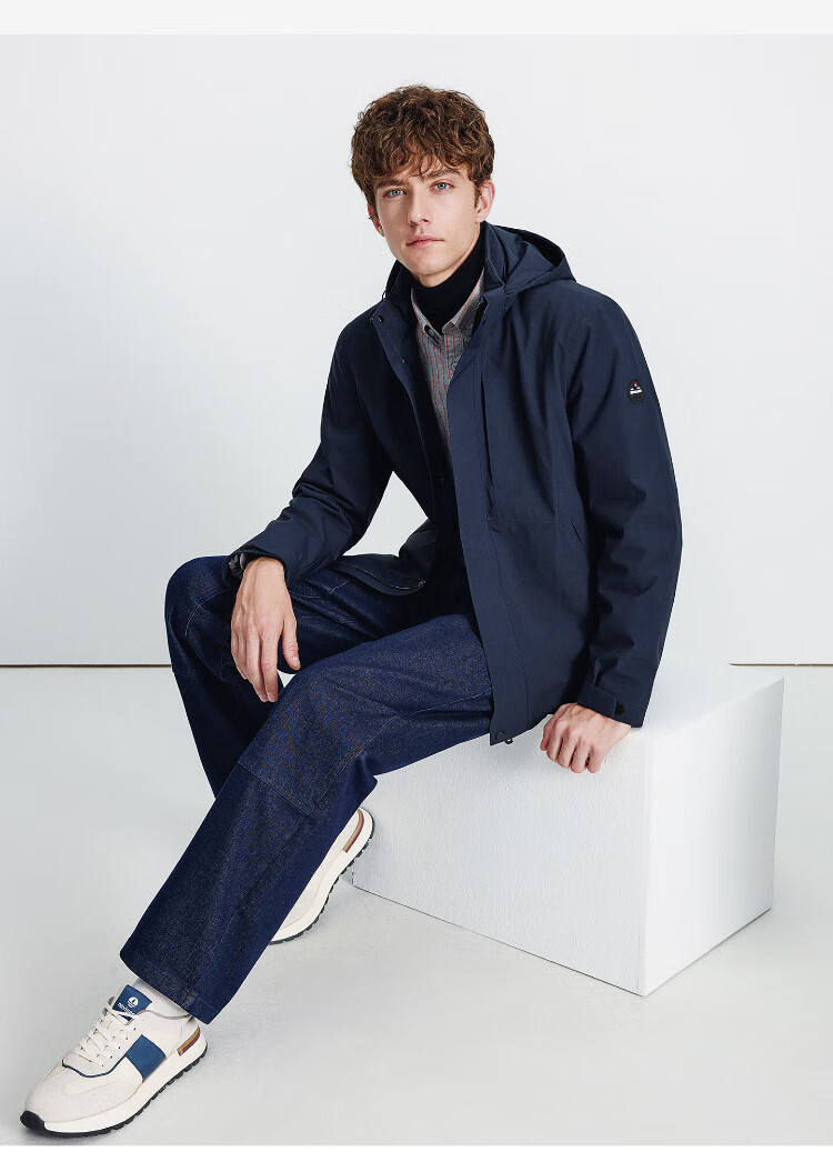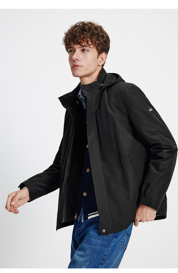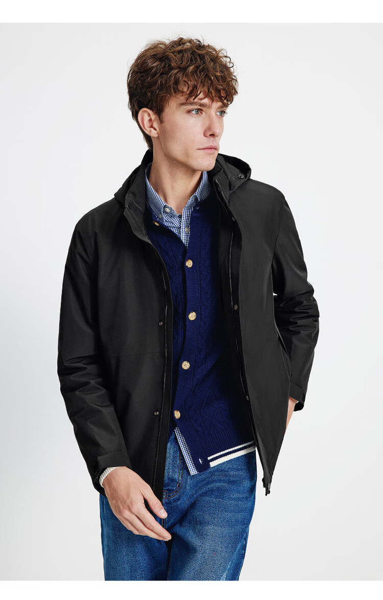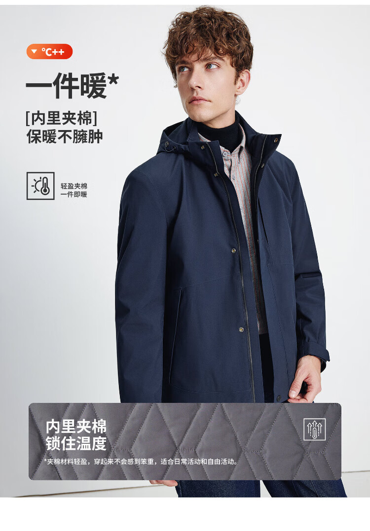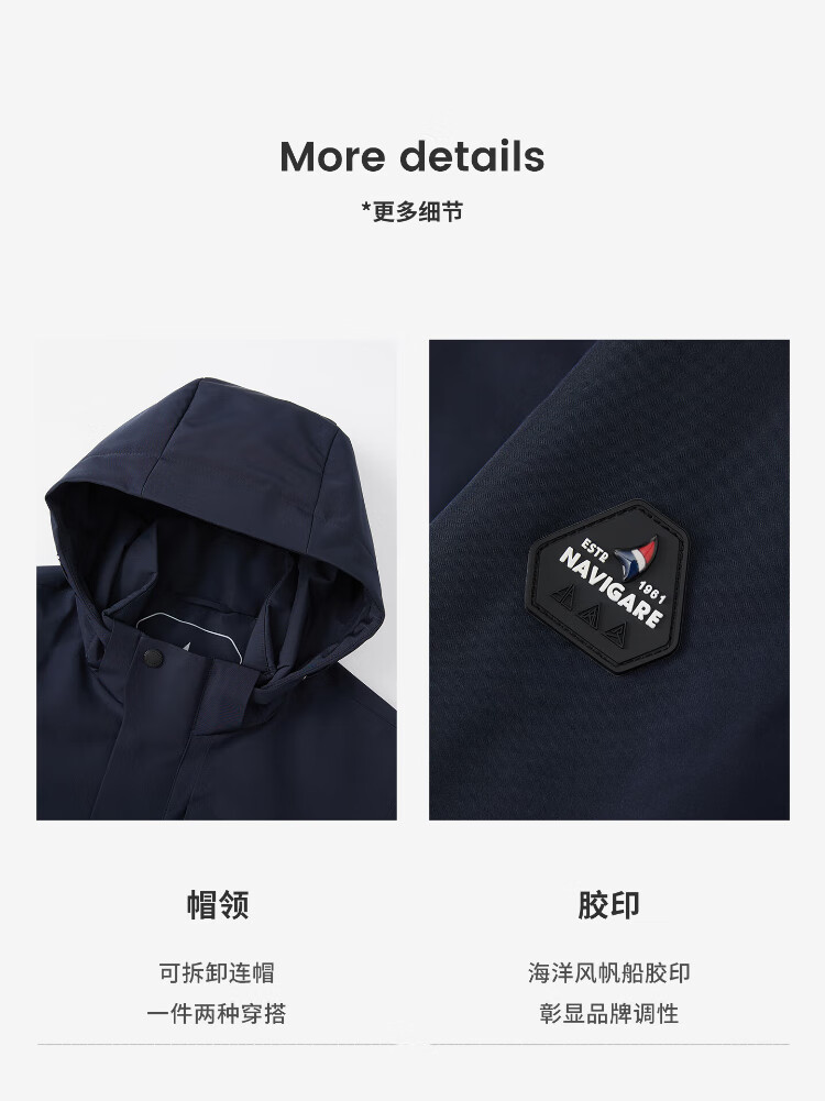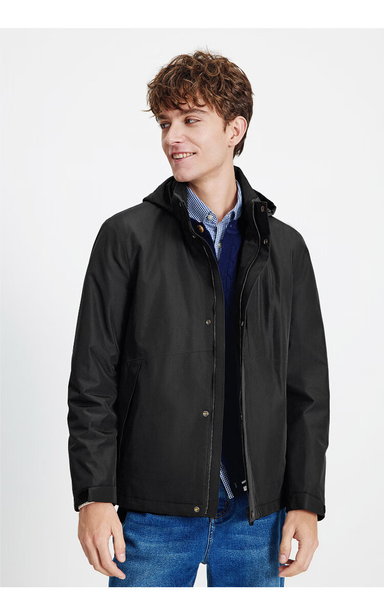 Navigare Italian dinghy men's cotton coat autumn and winter detachable hooded jacket casual quilted commuter jacket black XL size