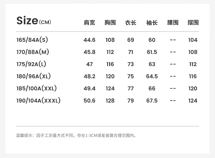China (cm) 160-165/84-86 165-170 / 88-90 167-172 / 92-96 168-173 / 98-102 170-176 / 106-110