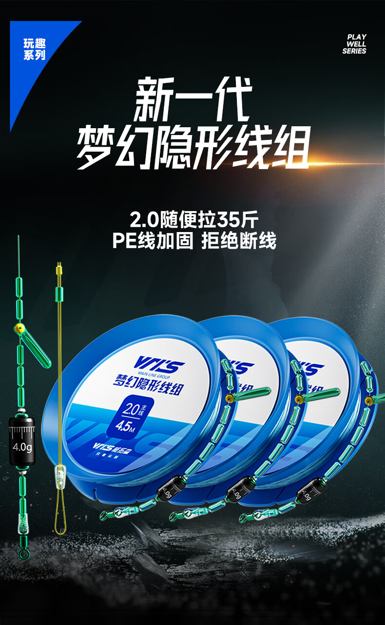 Weituosen high-end competitive invisible line product main line group complete set of fishing line main line tied black pit large object line group 4.5m super pulling force 3 rolls No. 1.0