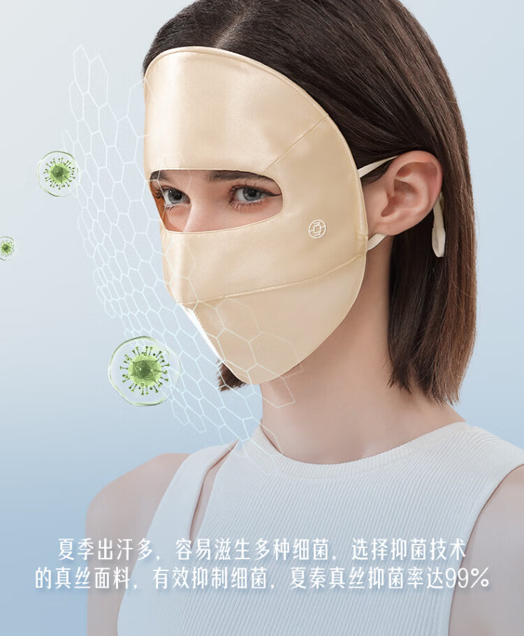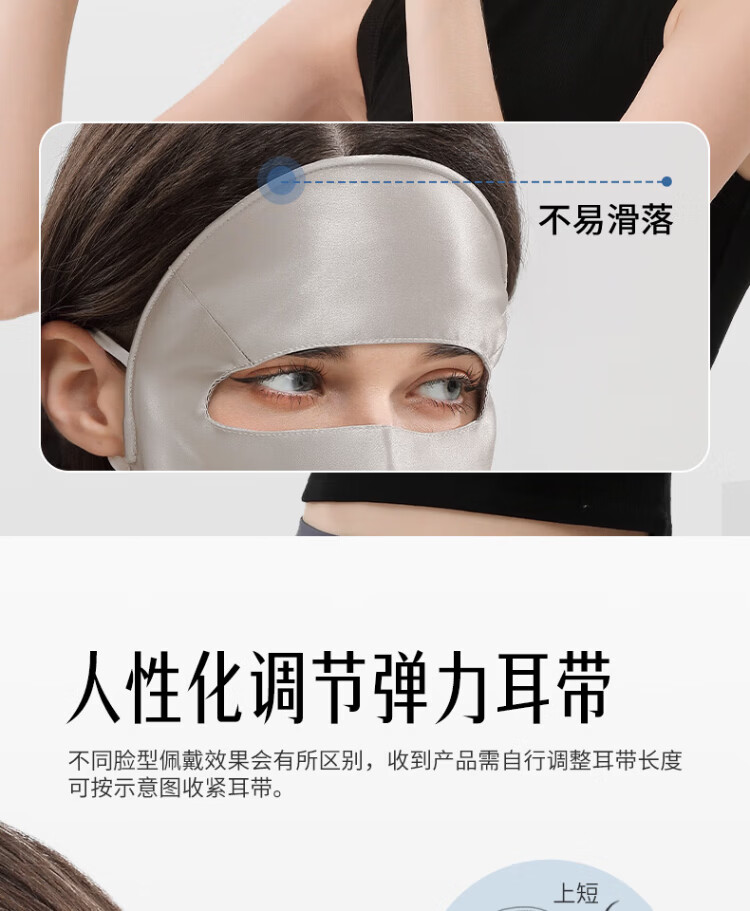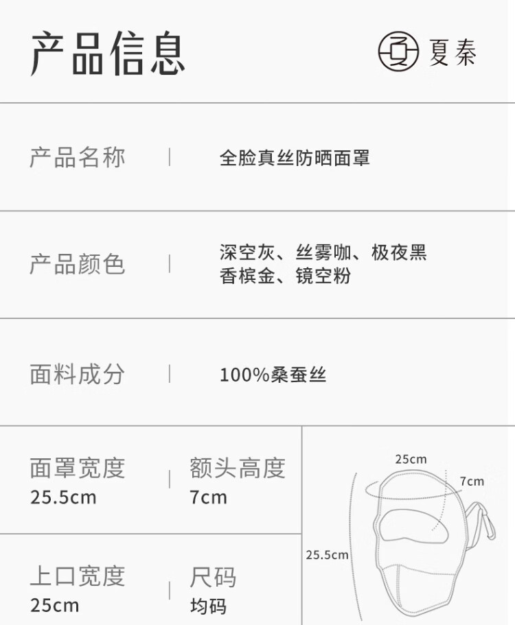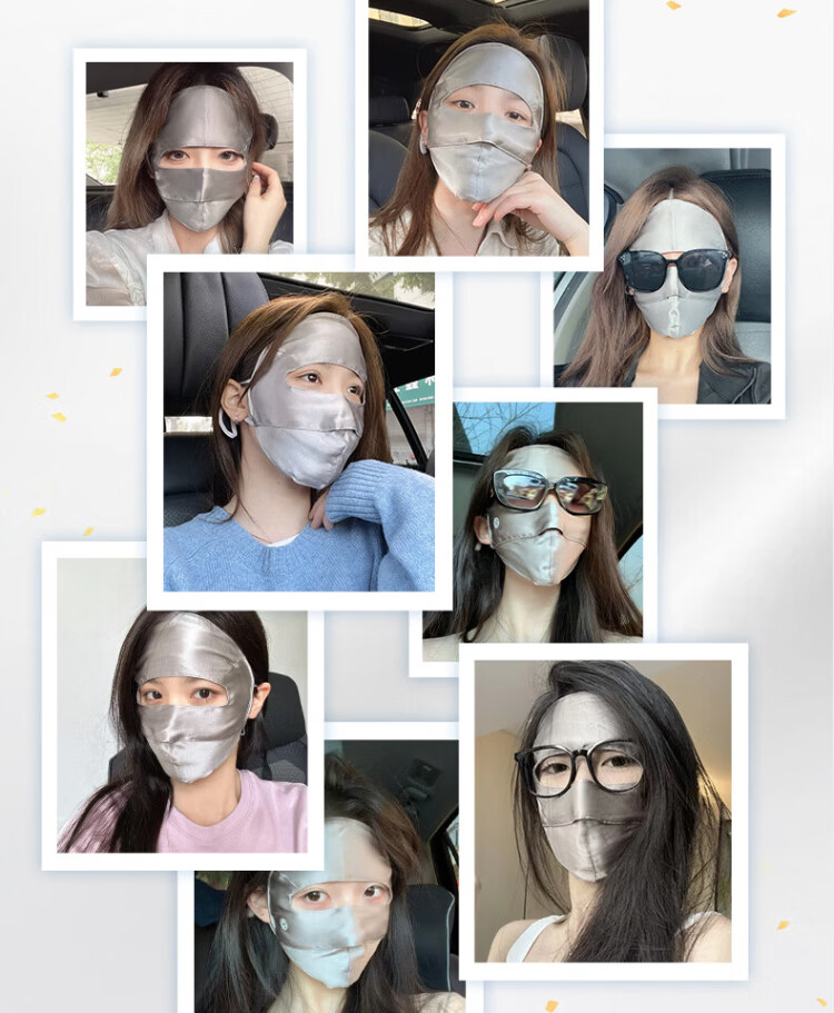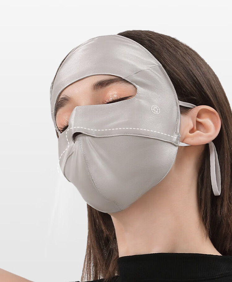 Xia Qin 100% silk sun protection mask full face mask mulberry silk breathable face mask UV protection mask for women spring and summer star same style deep space gray silk 16 mmi sun protection mask