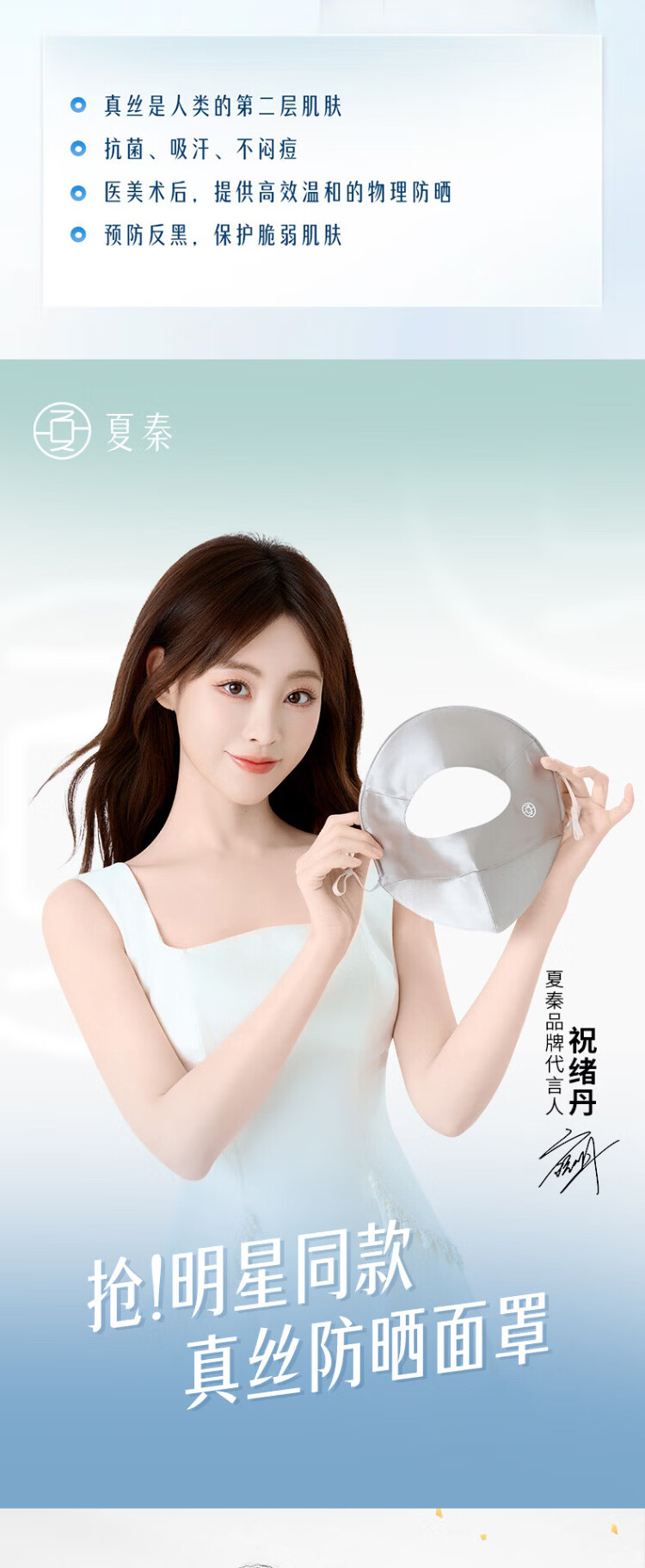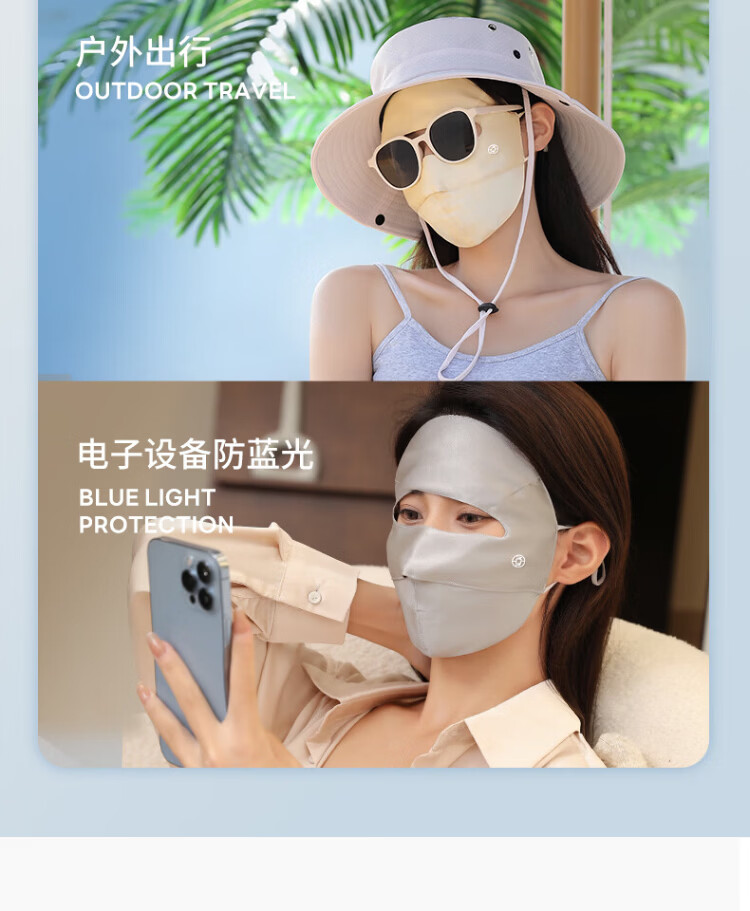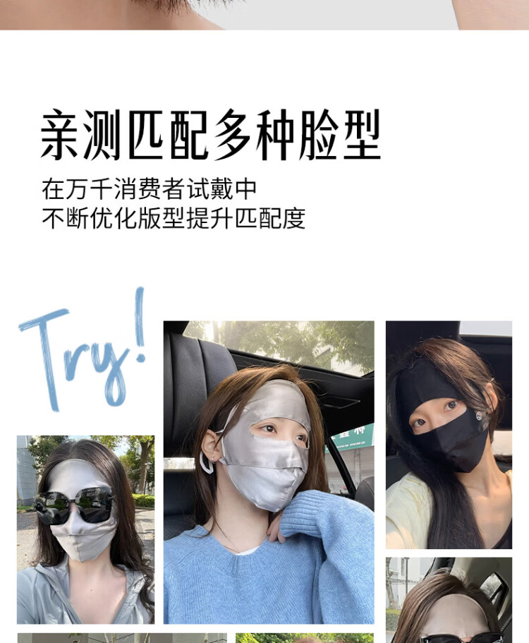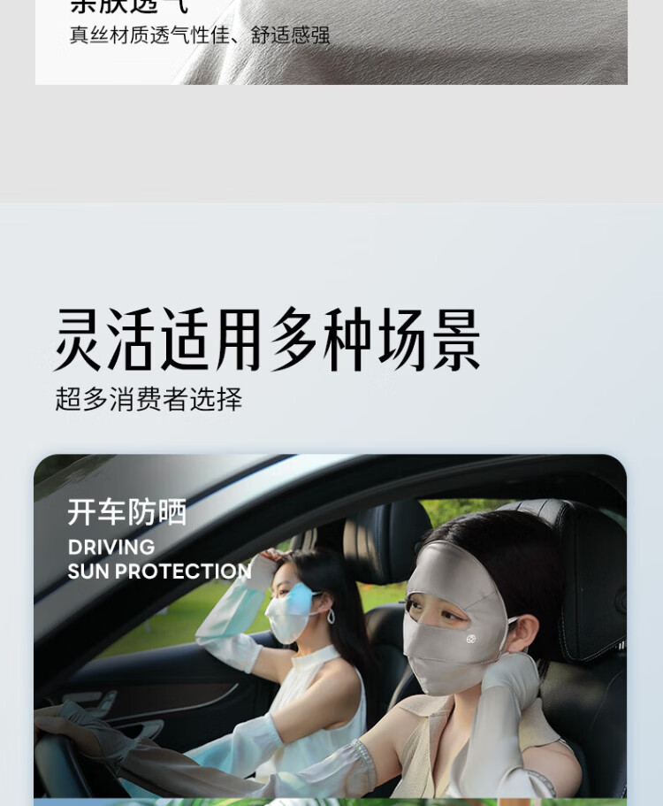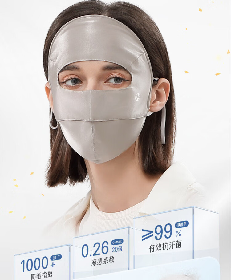 Xia Qin 100% silk sun protection mask full face mask mulberry silk breathable face mask UV protection mask for women spring and summer star same style deep space gray silk 16 mmi sun protection mask