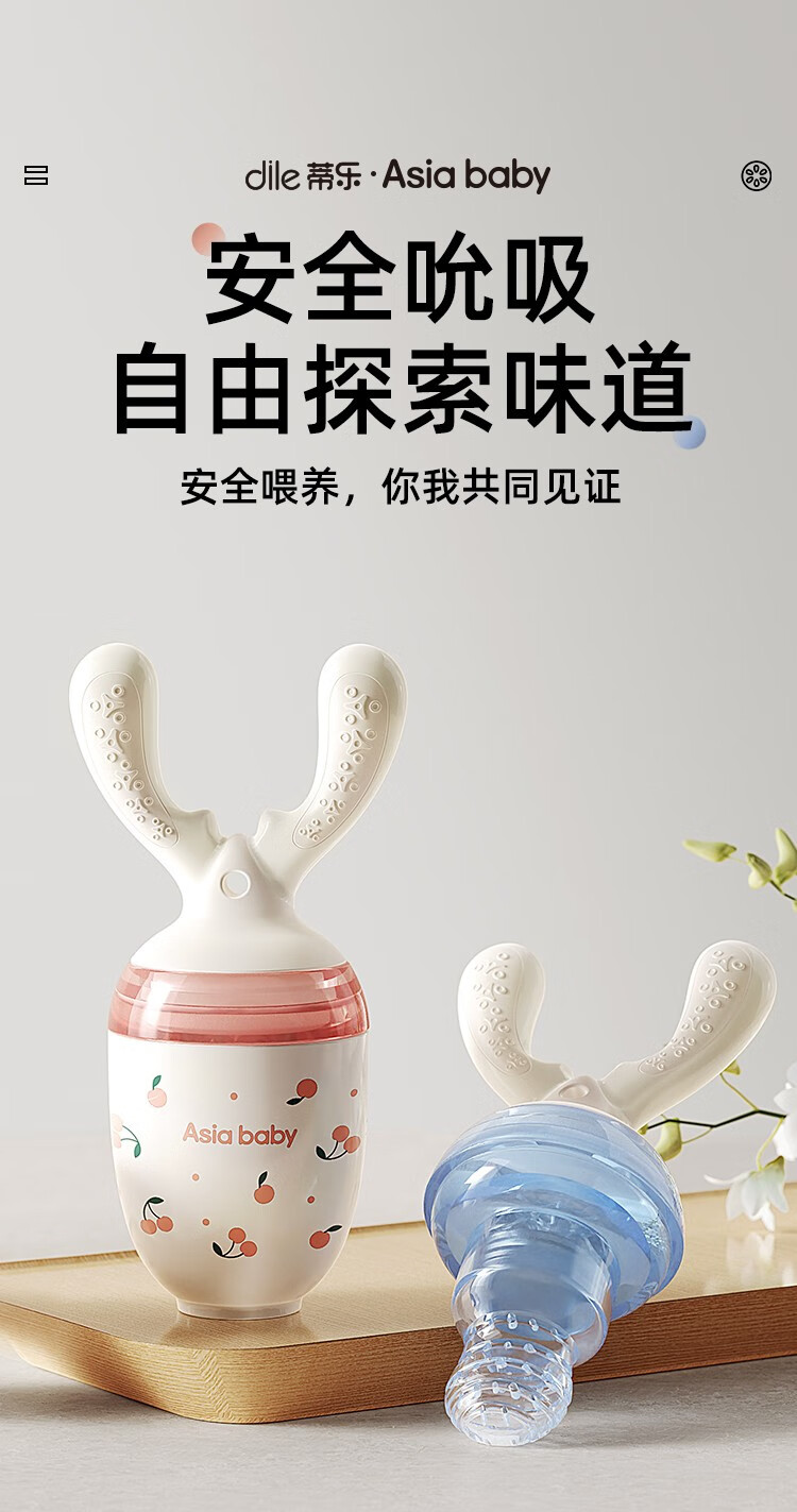 Tile Baby Fruit and Vegetable Chew Bite Bag for infants and young children to eat fruit supplements, an artifact for babies to bite and play, teether and molar artifact, Vina Cherry S size, suitable for 4 months+