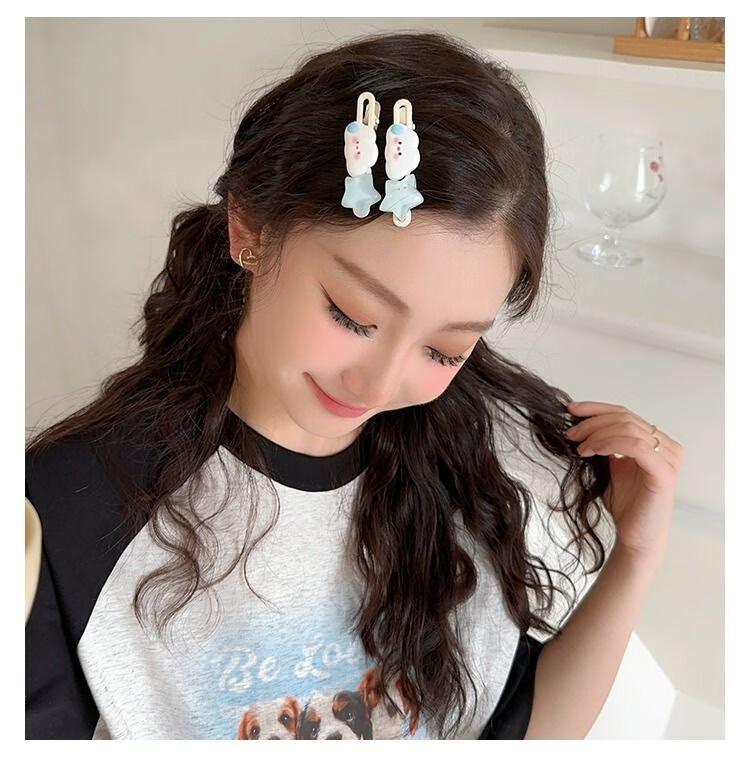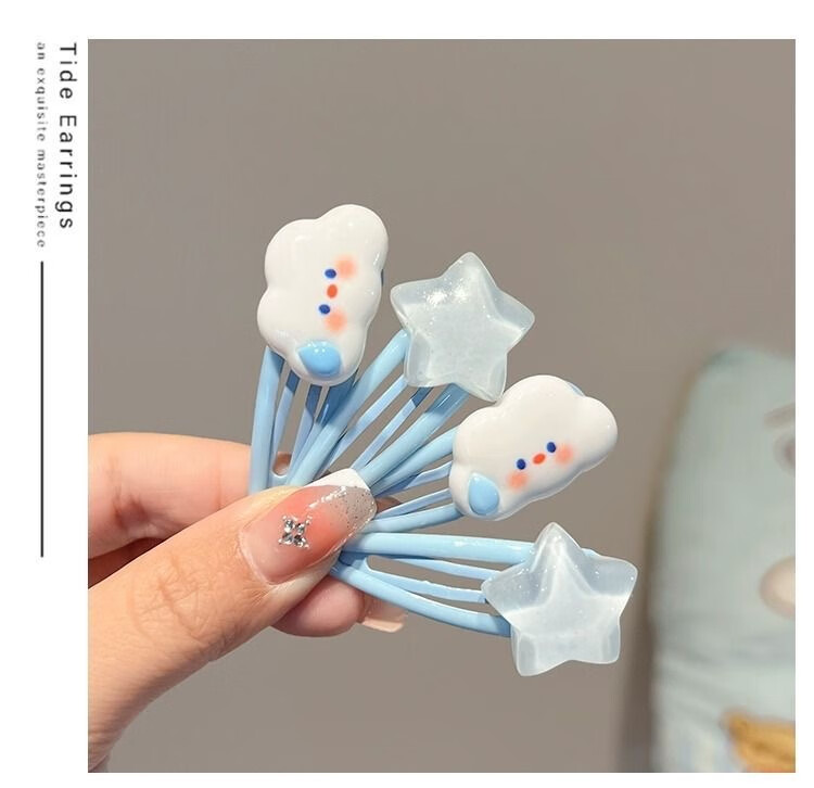Fantiya Cute Cloud Star Cartoon Hairpin Women's Side Bangs Clip Children's Duckbill Clip Small Grabber Hair Circle Hairpin Headwear Cloud Star 9-piece Set Blue