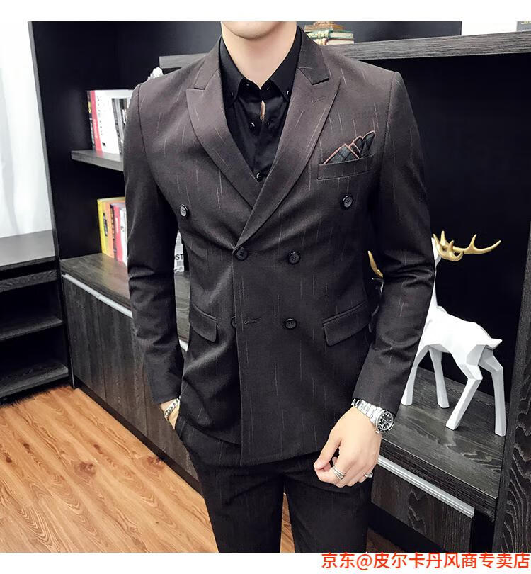 Pierre Cardin double breasted suit men's suit slim casual Korean style British style formal men's wedding plus size suit trend 9962 coffee color suit + trousers tie 3XL