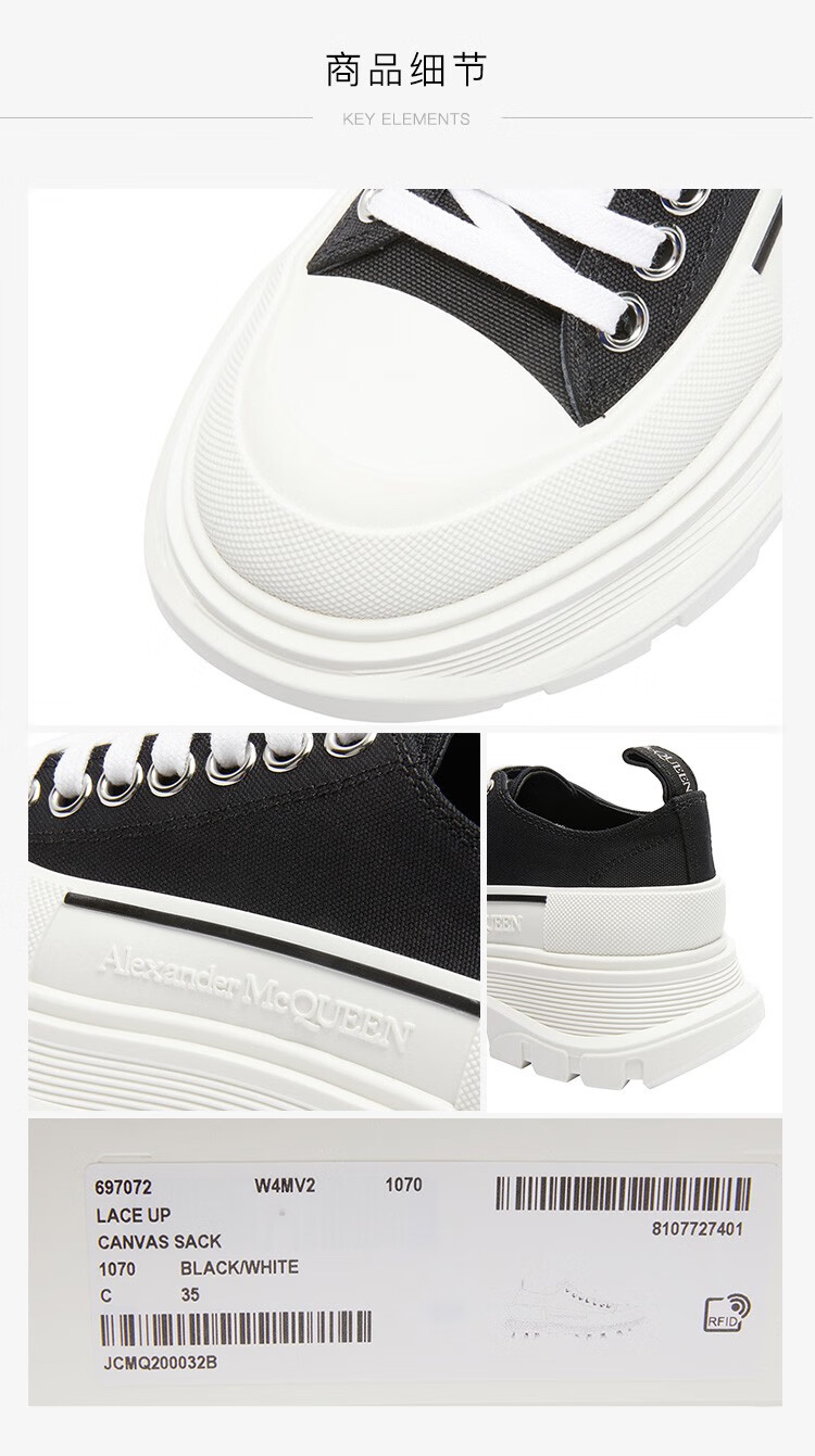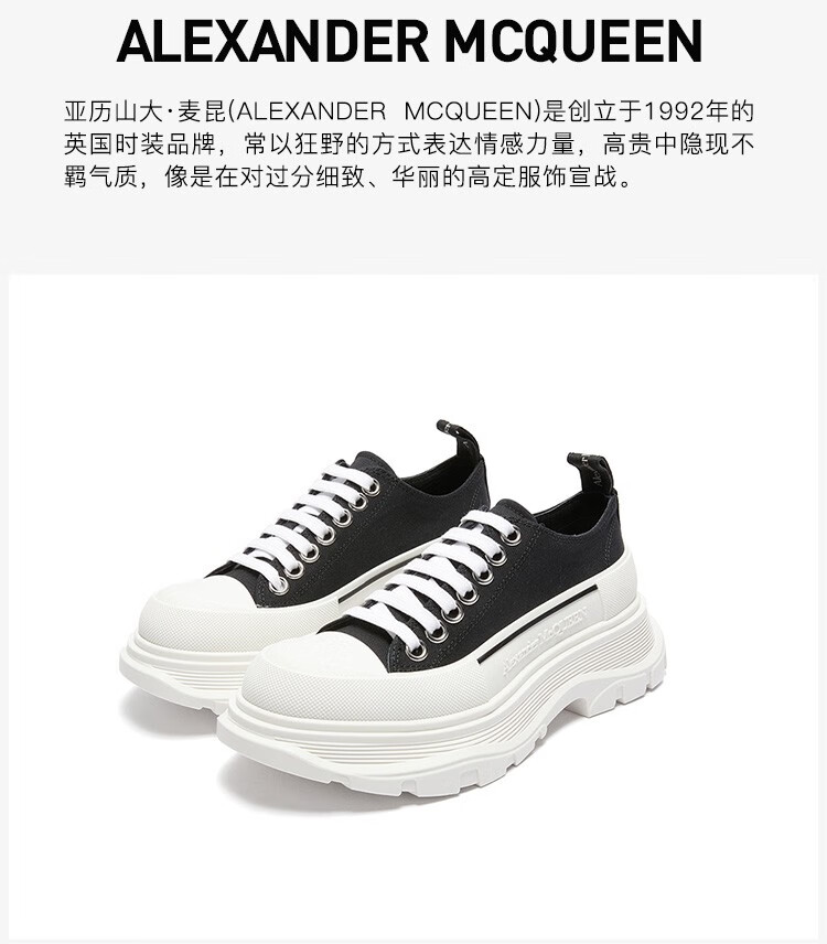 Alexander McQueen Alexander McQueen Women's TreadSlick Series Lace-up Thick-Soled Casual Shoes New Year's Gift White 697072 W4MV2 9000 36